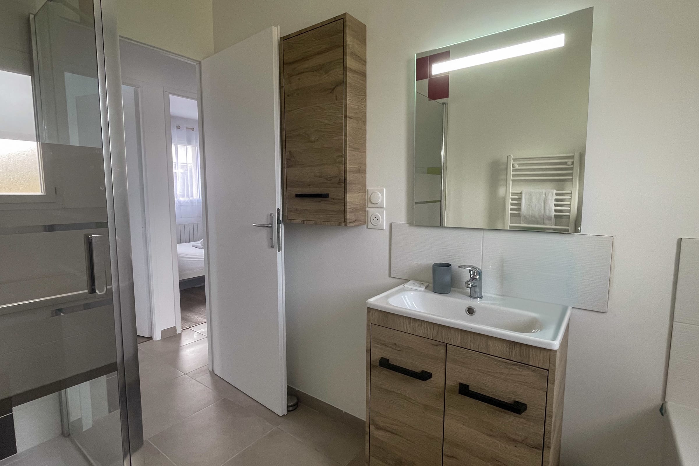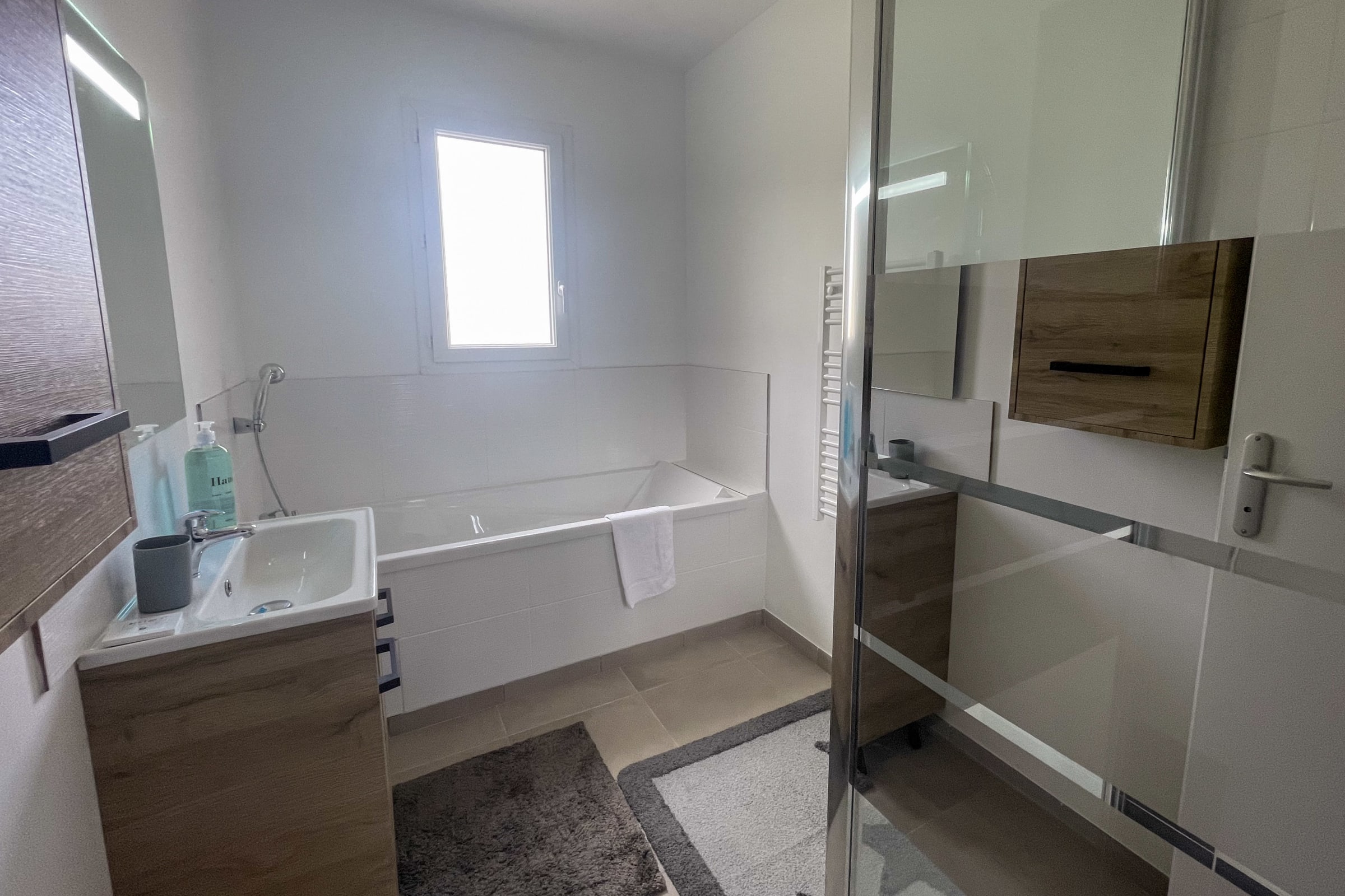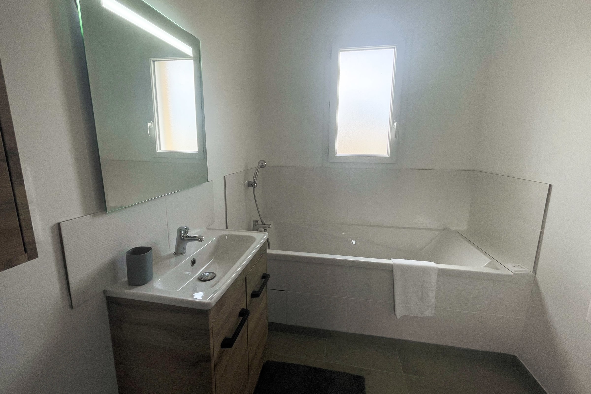 Sie haben 3 Schlafzimmer mit Doppelbetten, eine ebenerdige Dusche und einen großen, sehr hellen Wohnbereich, der Küche, Esszimmer und Wohnzimmer vereint.