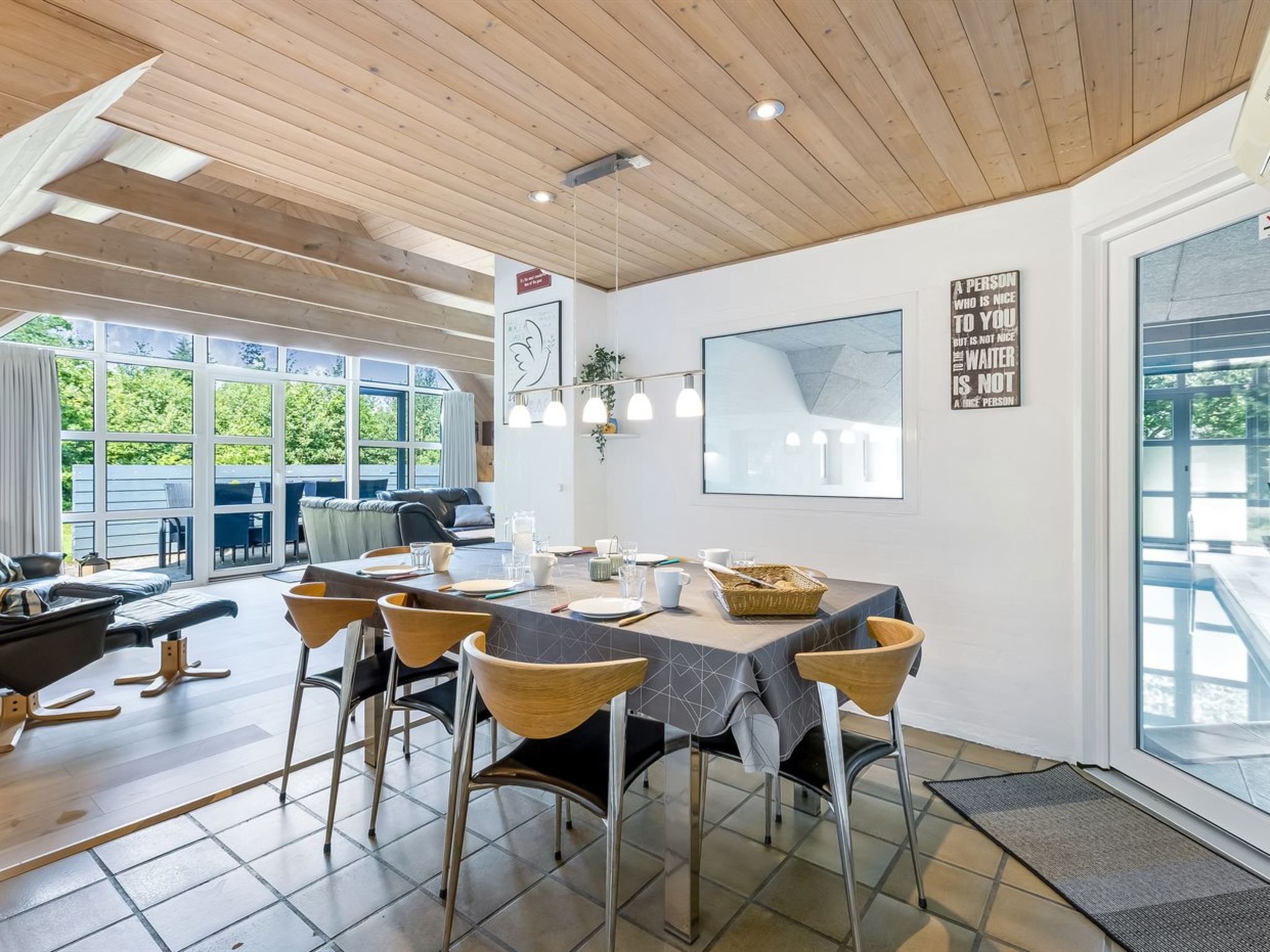 Einfamilienhaus, Baujahr 1993. 2.5 km vom Meer. Zur Alleinbenutzung: naturbelassenes Grundstück 2'351 m2, Hallenbad (3 x 6 m, 18 m2, 140 - 140 cm tief). Terrasse (55 m2). Im Hause: Sauna, Tischfussball, Waschmaschine, Wäschetrockner. Parkplatz beim Haus. Lebensmittelgeschäft 1 km. Der Besitzer akzeptiert keine Jugendgruppen.