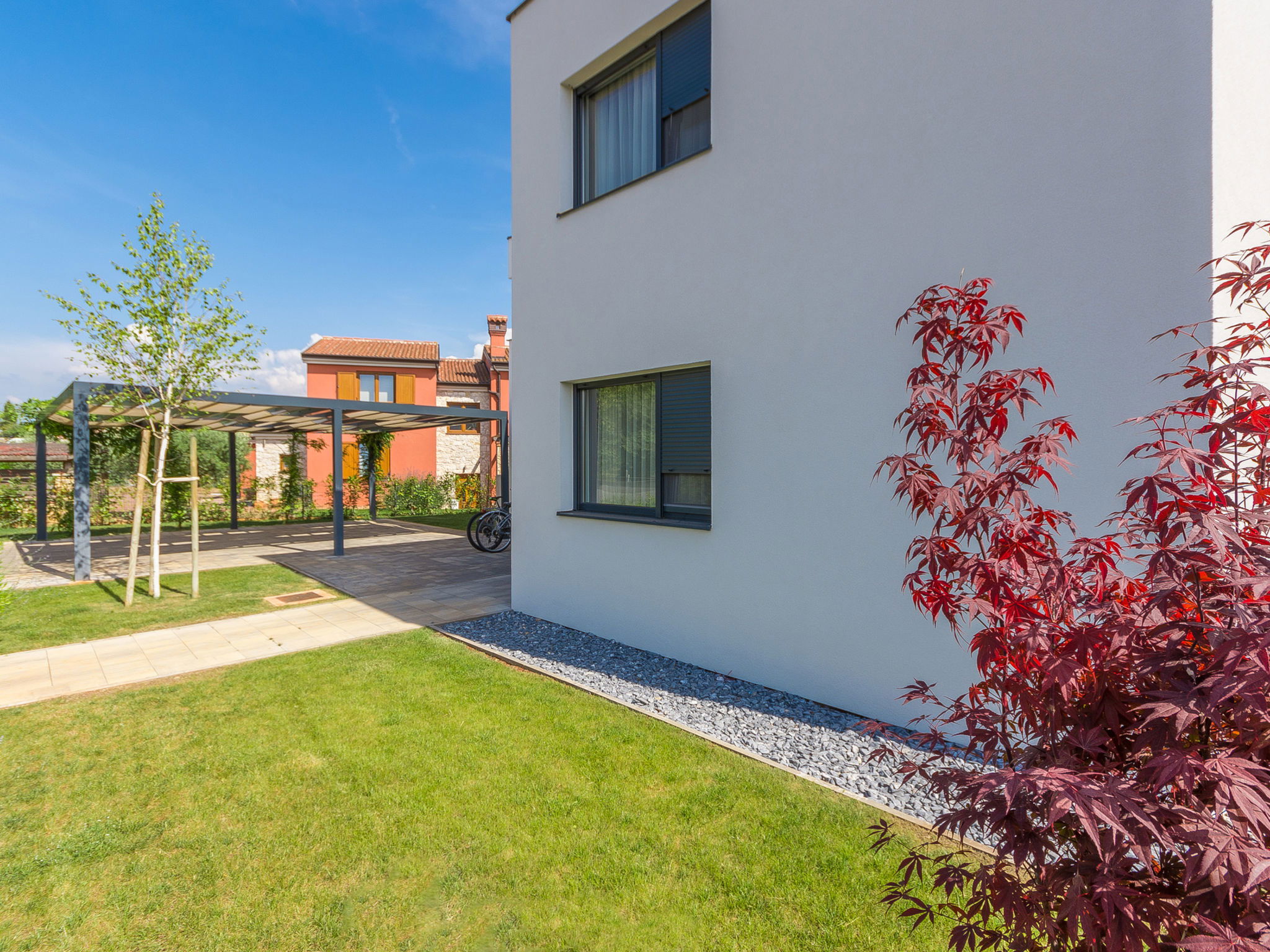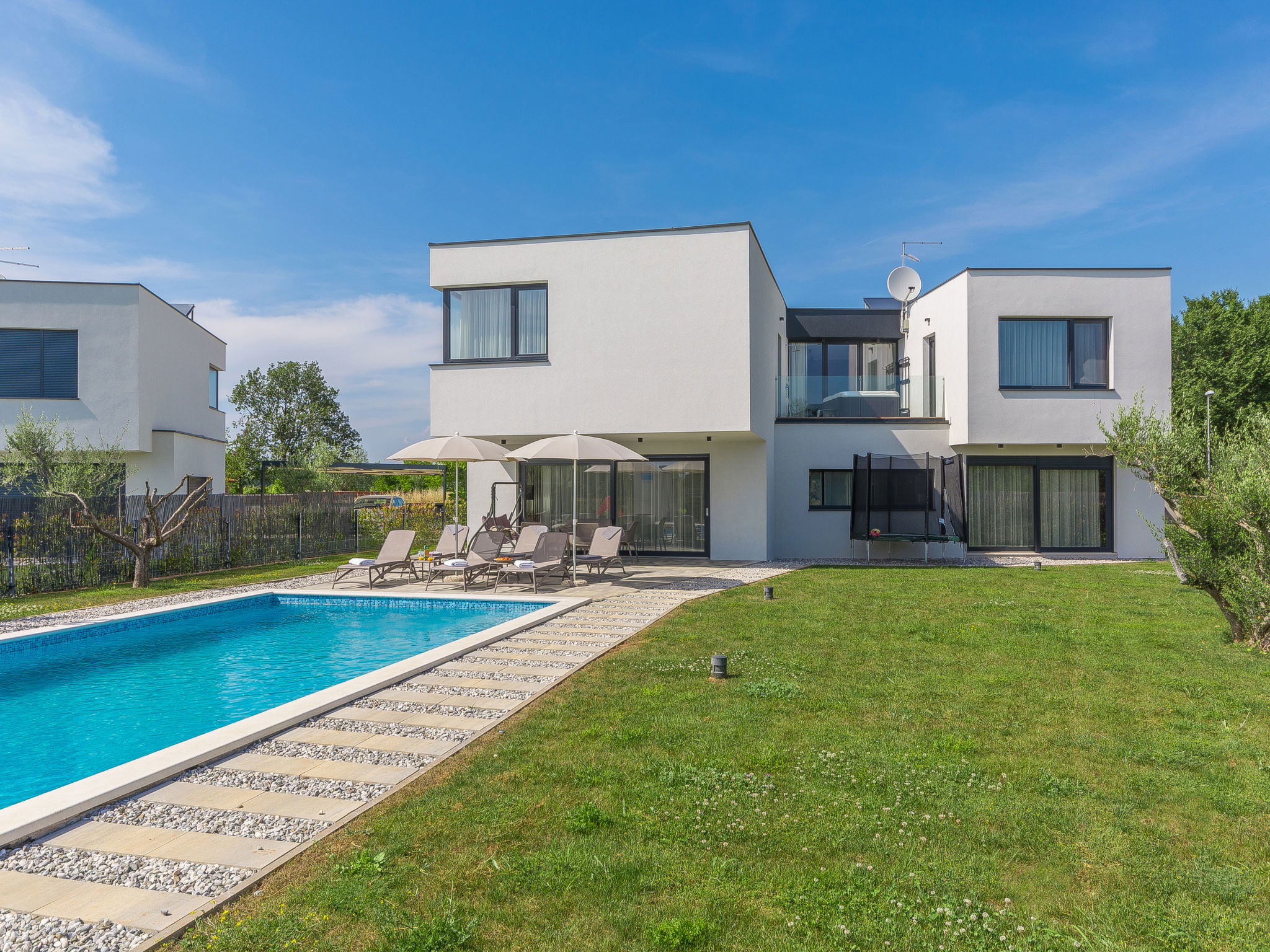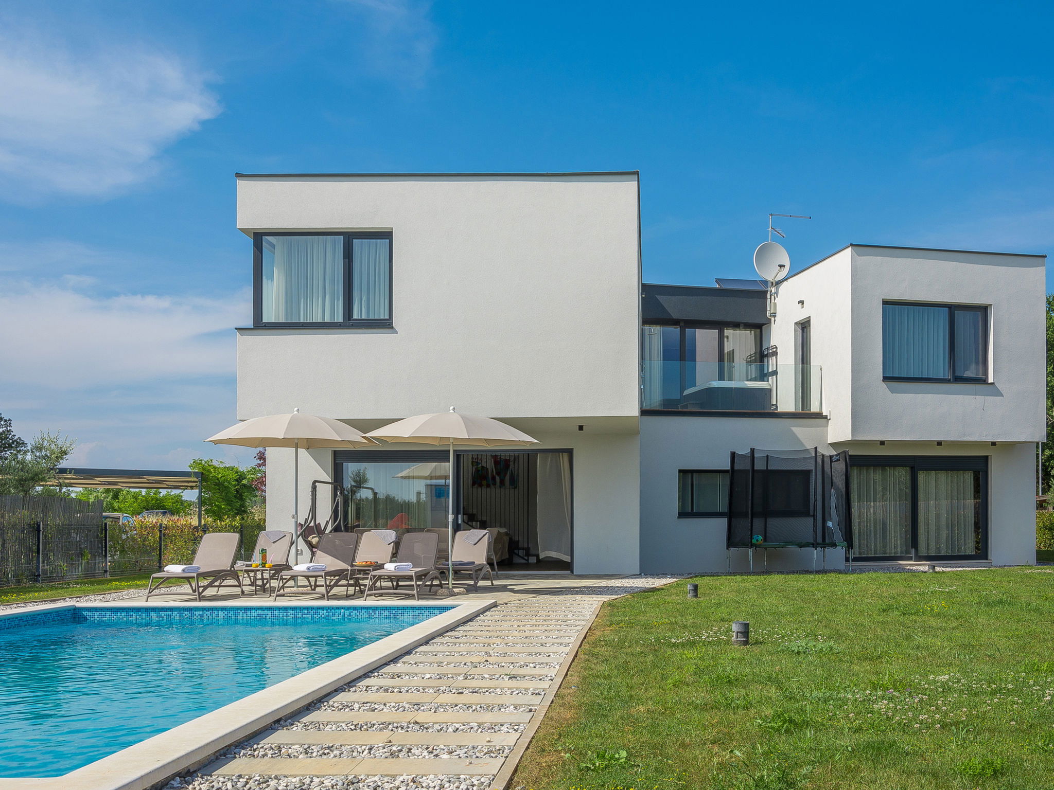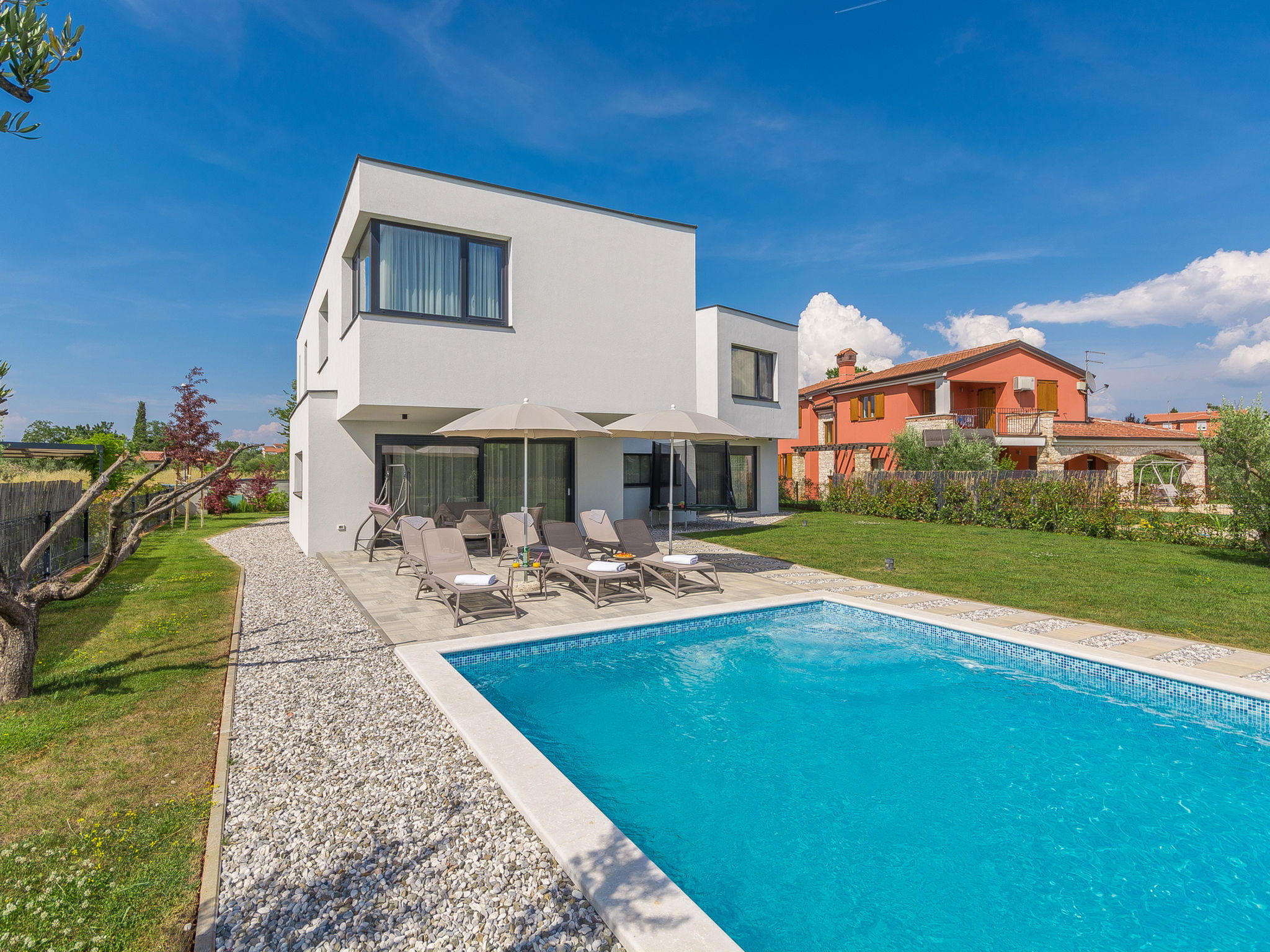 Moderne Villa "Paolo", auf 2 Stockwerken. Im Weiler Stancija Vinjeri, 2 km vom Zentrum von Novigrad, sonnige Lage, 3 km vom Meer, 3 km vom Strand. Zur Alleinbenutzung: Grundstück 1'100 m2 (eingezäunt), Garten mit Rasen, Schwimmbad eckig, beheizt (9 x 5 m, 140 cm tief, saisonale Verfügbarkeit: 01.Jan. - 31.Dez.) mit Innentreppe. Aussendusche, Sprudelbad, Laube (20 m2), Terrasse, Gartenmöbel. Im Hause: Internetzugang, Sauna, Tischfussball, Trampolin, Waschmaschine, Wäschetrockner. Parkplatz (für 3 Autos) beim Haus auf dem Grundstück. Einkaufsgeschäft 1.5 km, Supermarkt 1.5 km, Restaurant 500 m, Bushaltestelle 2 km, Kieselstrand 3 km, Felsstrand 3 km. Tennis 2 km, Wanderwege ab Haus 500 m, Radweg 550 m. Nahe gelegene Sehenswürdigkeiten: Aquapark 5 km. Bitte beachten: Flugplatz 20 km vom Haus. Schwimmbad beheizt (extra). Es ist notwendig 7 Tage im Voraus bekannt zu geben, ob die Schwimmbadheizung eingeschaltet werden soll. Verfügbar: Garten mit biologischem Obst und Gemüse der Saison (im Preis inbegriffen).