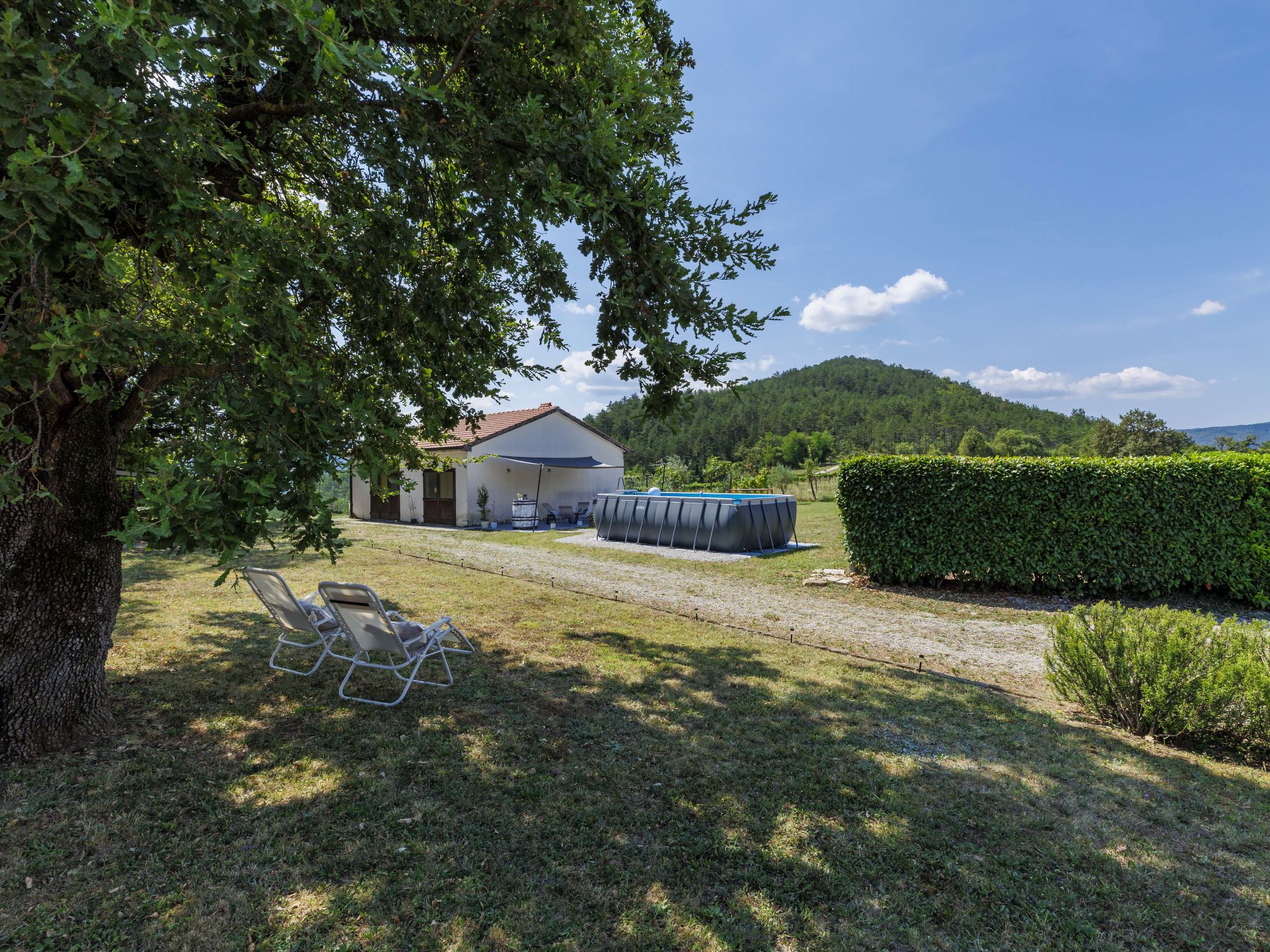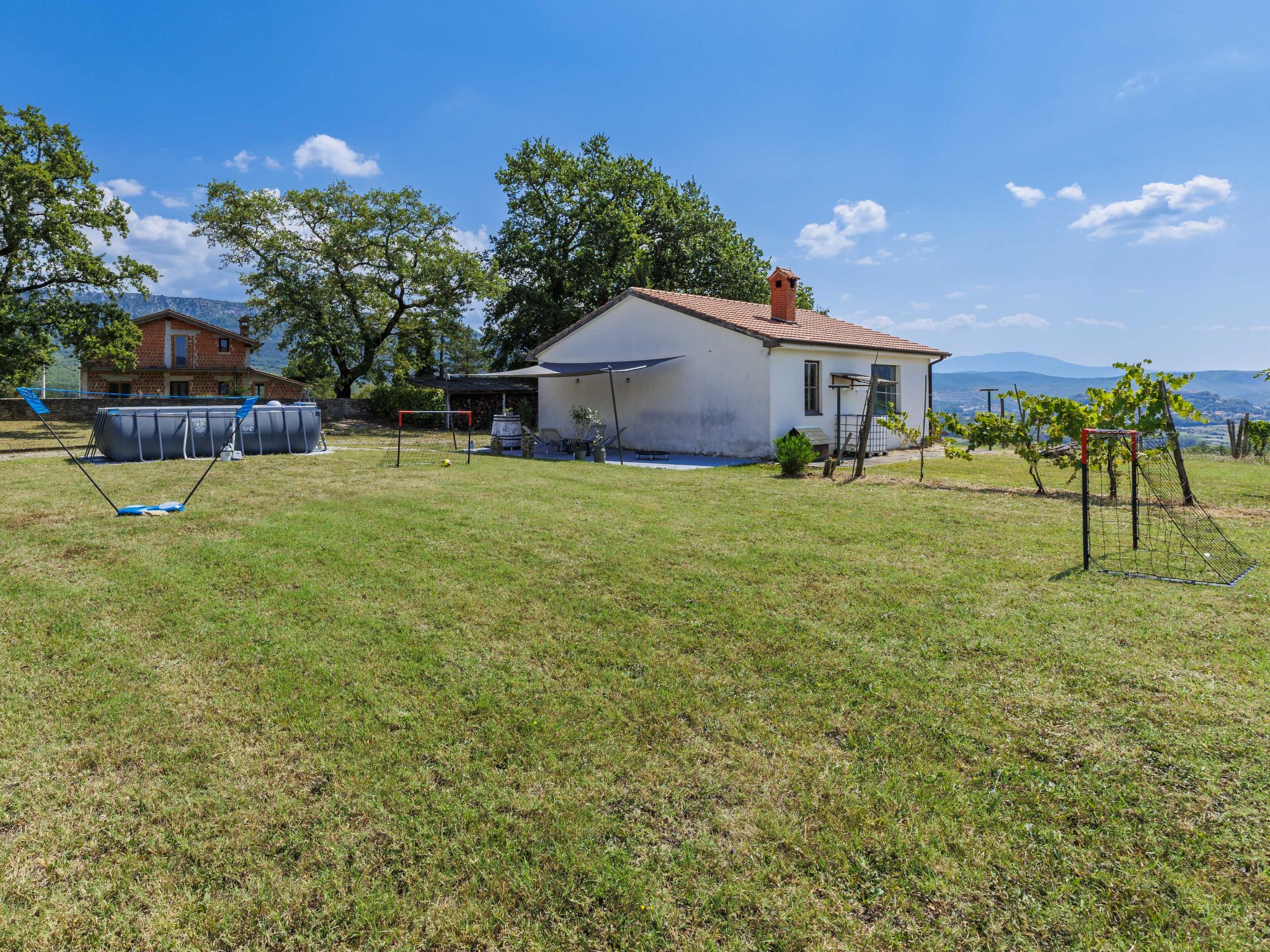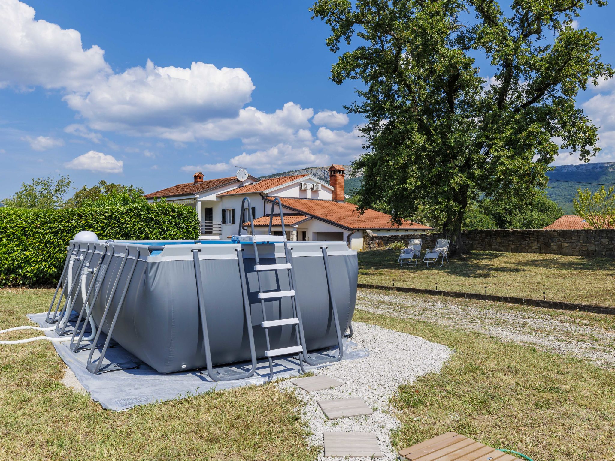 Altes Haus "Di papa", auf 2 Stockwerken, renoviert im Jahre 2024. Im Weiler Črnci, 3 km vom Zentrum von Buzet, 19 km vom Zentrum von Motovun, ruhige, sonnige Lage, 42 km vom Meer, 3 km vom Fluss, im Grünen. Zur Alleinbenutzung: Grundstück 1'000 m2, Garten mit Rasen und Bäumen, Aufstellpool (3 x 6 m, 140 cm tief, saisonale Verfügbarkeit: 01.Mai. - 30.Sep.). Terrasse (20 m2), Gartenmöbel, Grill, Poolpflege durch den Besitzer/Gärtner. Im Hause: Internetzugang, Waschmaschine. Parkplatz (für 4 Autos) beim Haus auf dem Grundstück. Supermarkt 2 km, Restaurant 2 km, Bushaltestelle 3 km, Bahnstation 6 km, Kieselstrand 42 km, Tauchzentrum 42 km, Thermalbad "Istarske Toplice" 12 km. Wanderwege ab Haus 50 m, Radweg 100 m, Angelmöglichkeit 5 km. Der Besitzer akzeptiert keine Jugendgruppen. Ein Teil des Hauses ist geschlossen und nicht bewohnt.