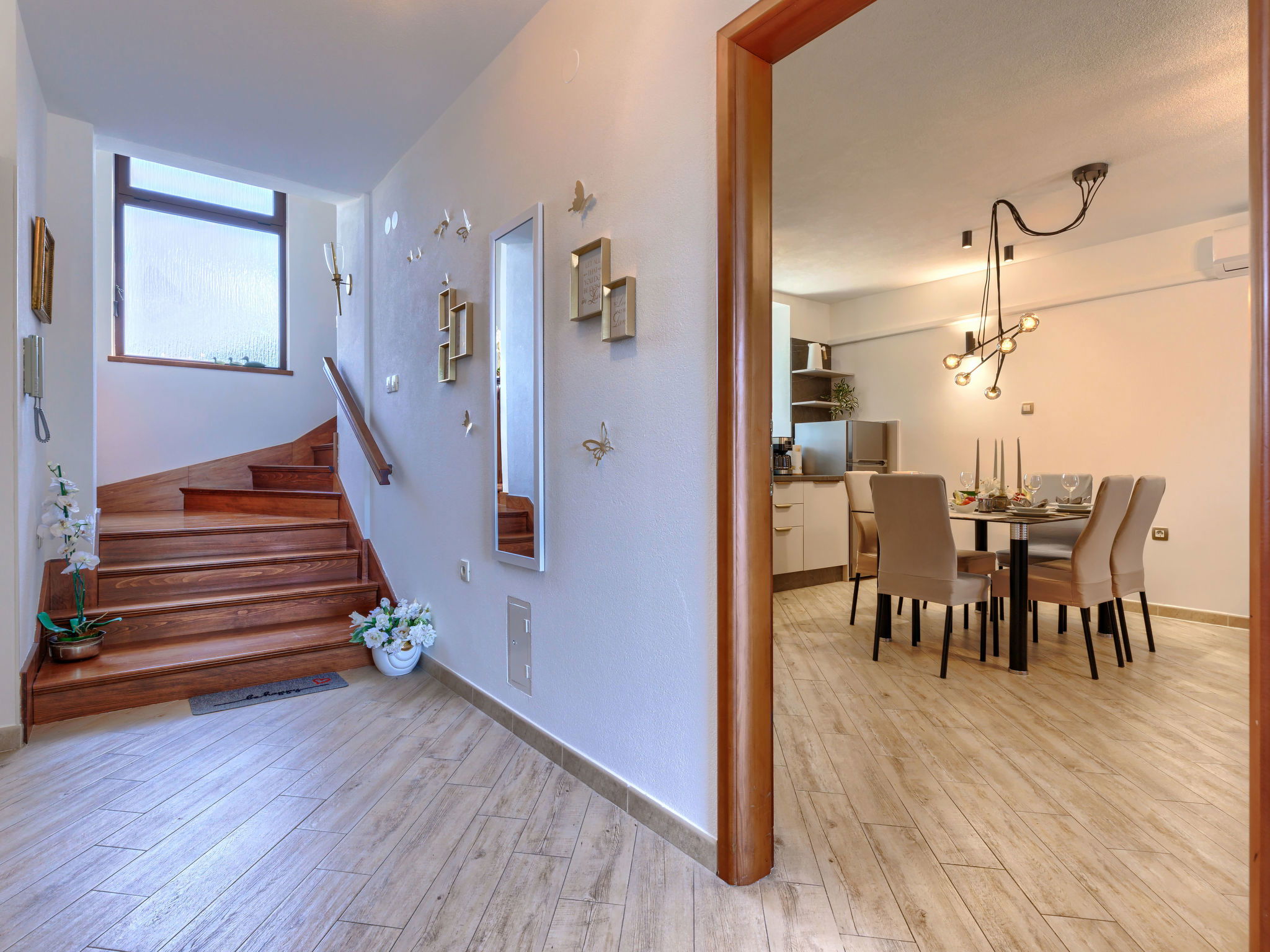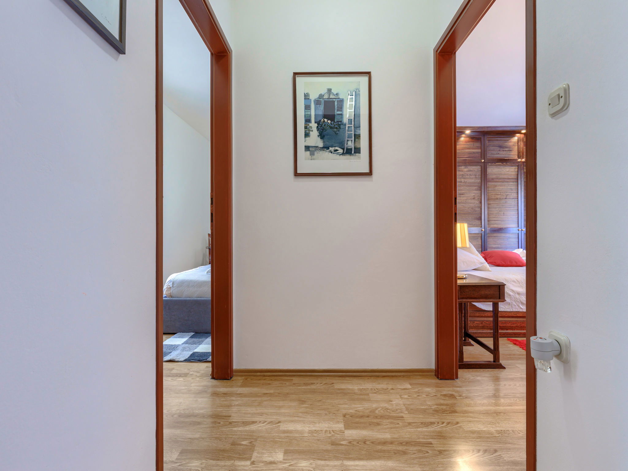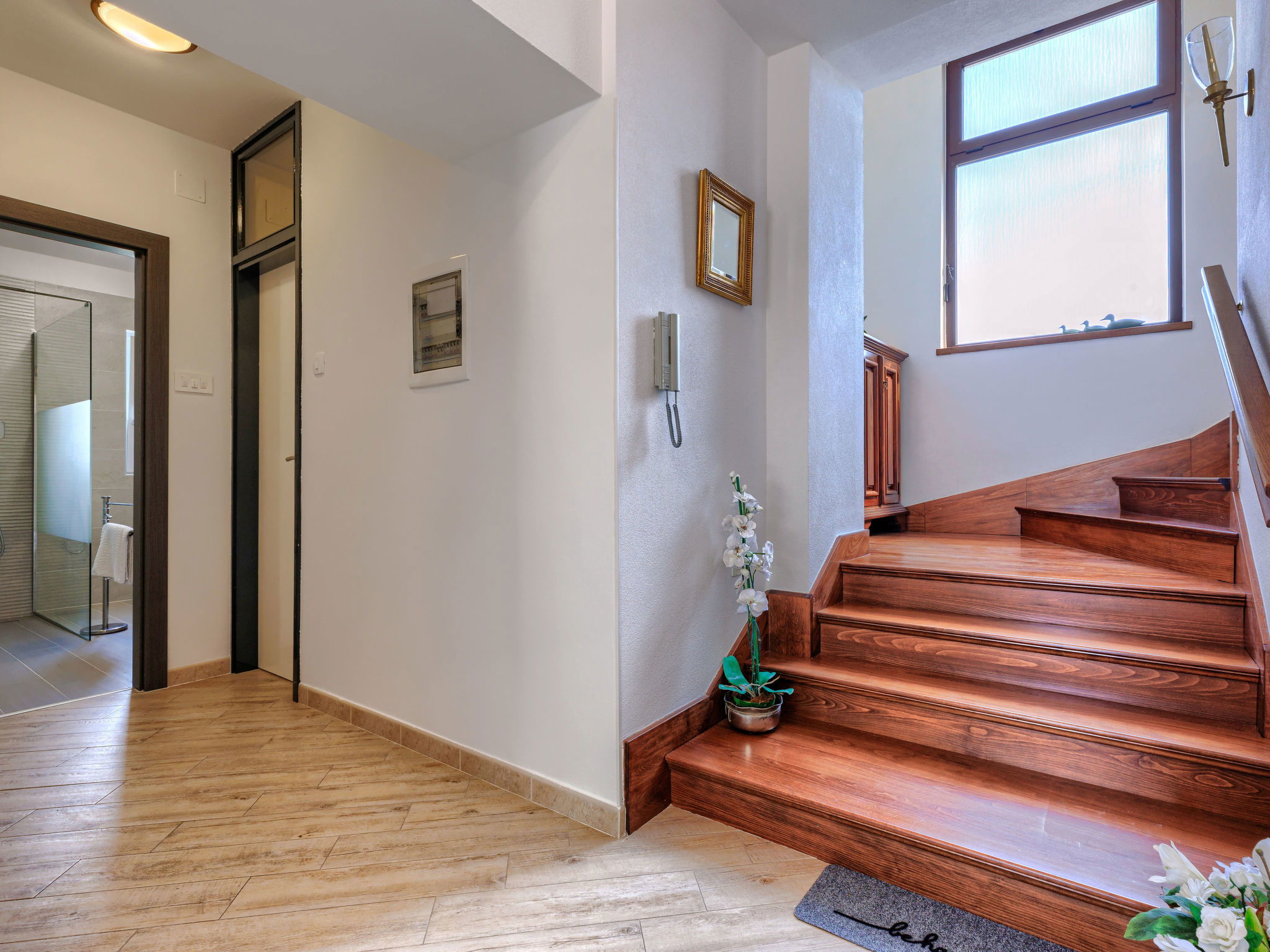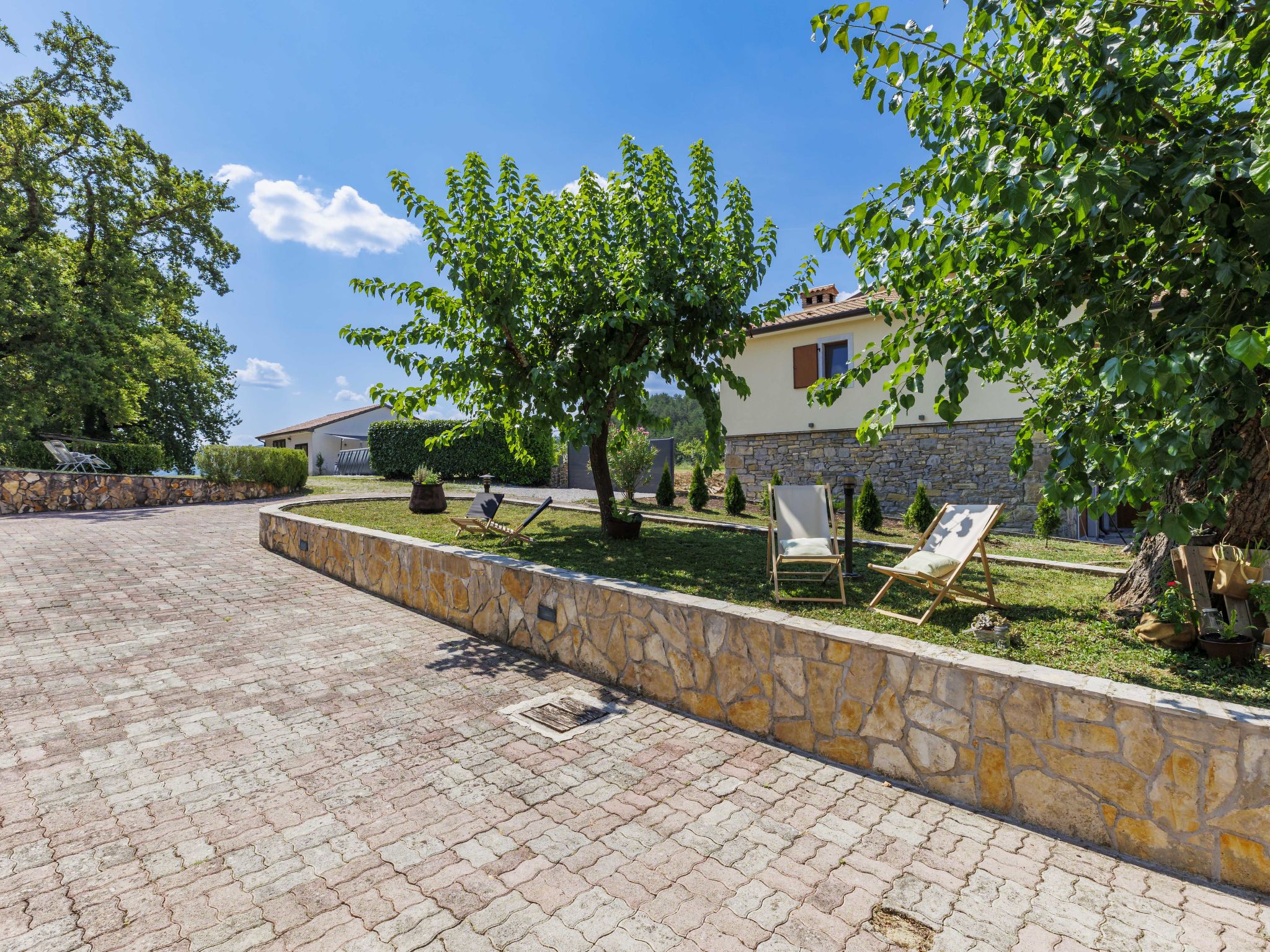 Altes Haus "Di papa", auf 2 Stockwerken, renoviert im Jahre 2024. Im Weiler Črnci, 3 km vom Zentrum von Buzet, 19 km vom Zentrum von Motovun, ruhige, sonnige Lage, 42 km vom Meer, 3 km vom Fluss, im Grünen. Zur Alleinbenutzung: Grundstück 1'000 m2, Garten mit Rasen und Bäumen, Aufstellpool (3 x 6 m, 140 cm tief, saisonale Verfügbarkeit: 01.Mai. - 30.Sep.). Terrasse (20 m2), Gartenmöbel, Grill, Poolpflege durch den Besitzer/Gärtner. Im Hause: Internetzugang, Waschmaschine. Parkplatz (für 4 Autos) beim Haus auf dem Grundstück. Supermarkt 2 km, Restaurant 2 km, Bushaltestelle 3 km, Bahnstation 6 km, Kieselstrand 42 km, Tauchzentrum 42 km, Thermalbad "Istarske Toplice" 12 km. Wanderwege ab Haus 50 m, Radweg 100 m, Angelmöglichkeit 5 km. Der Besitzer akzeptiert keine Jugendgruppen. Ein Teil des Hauses ist geschlossen und nicht bewohnt.