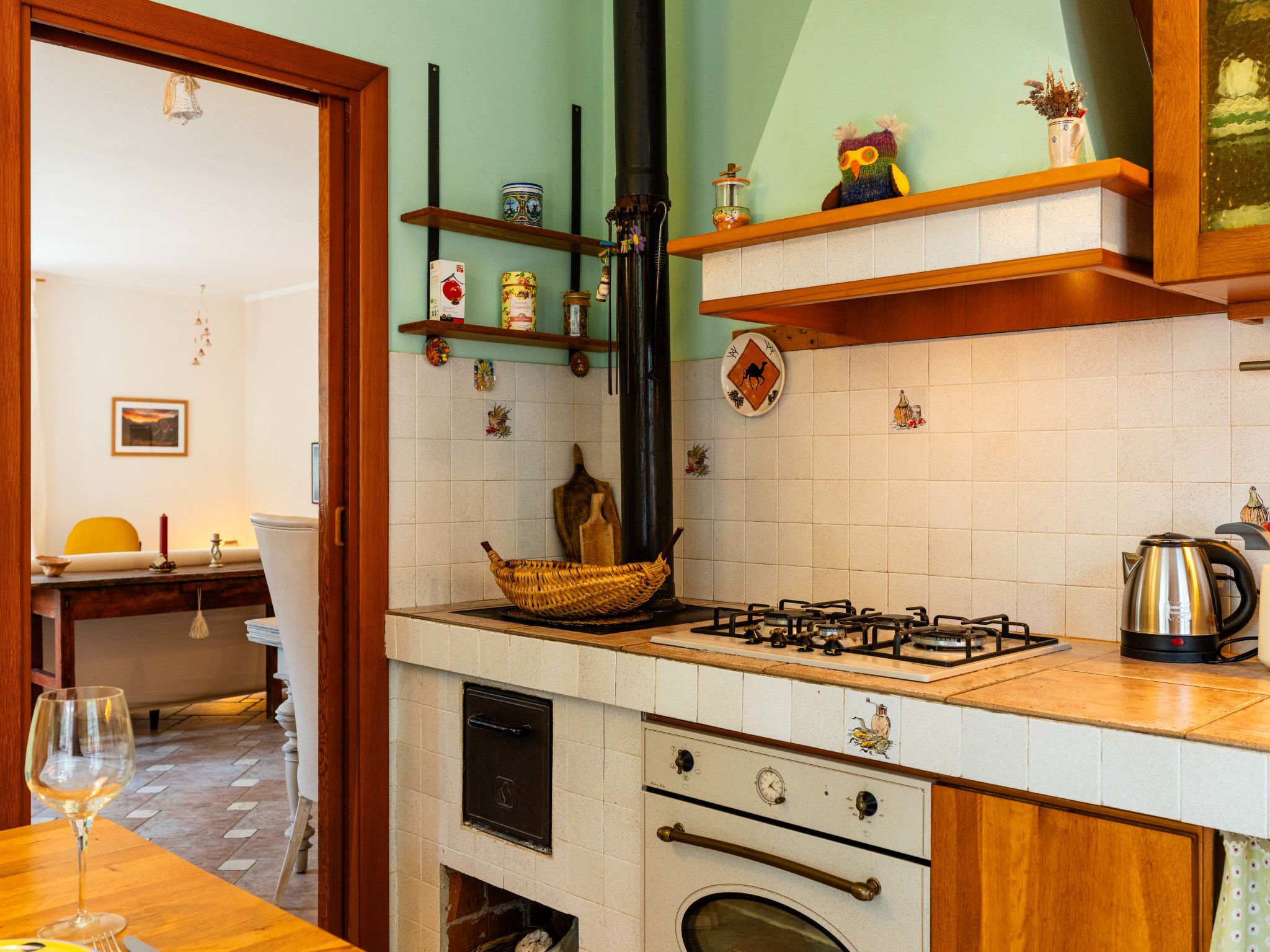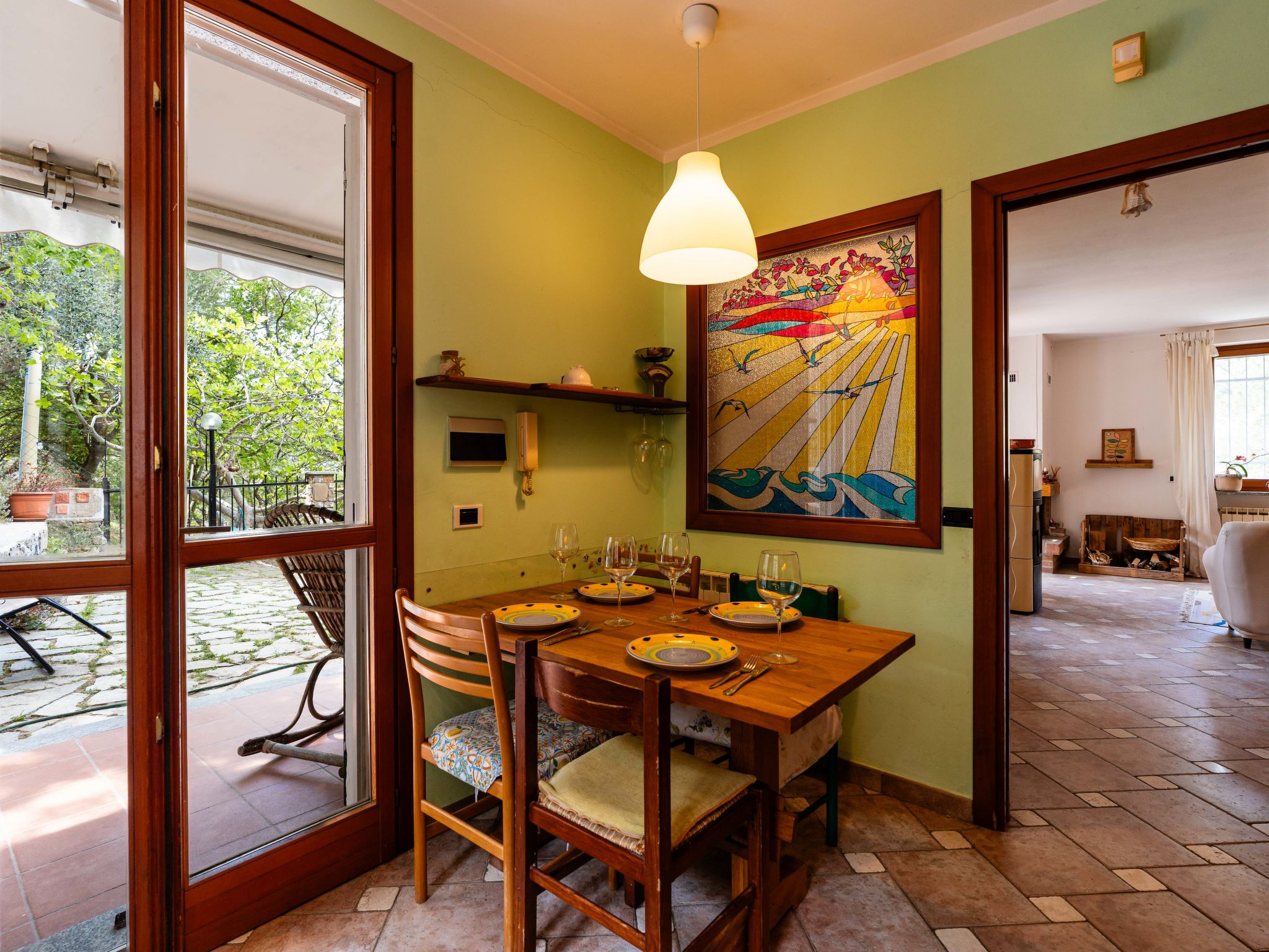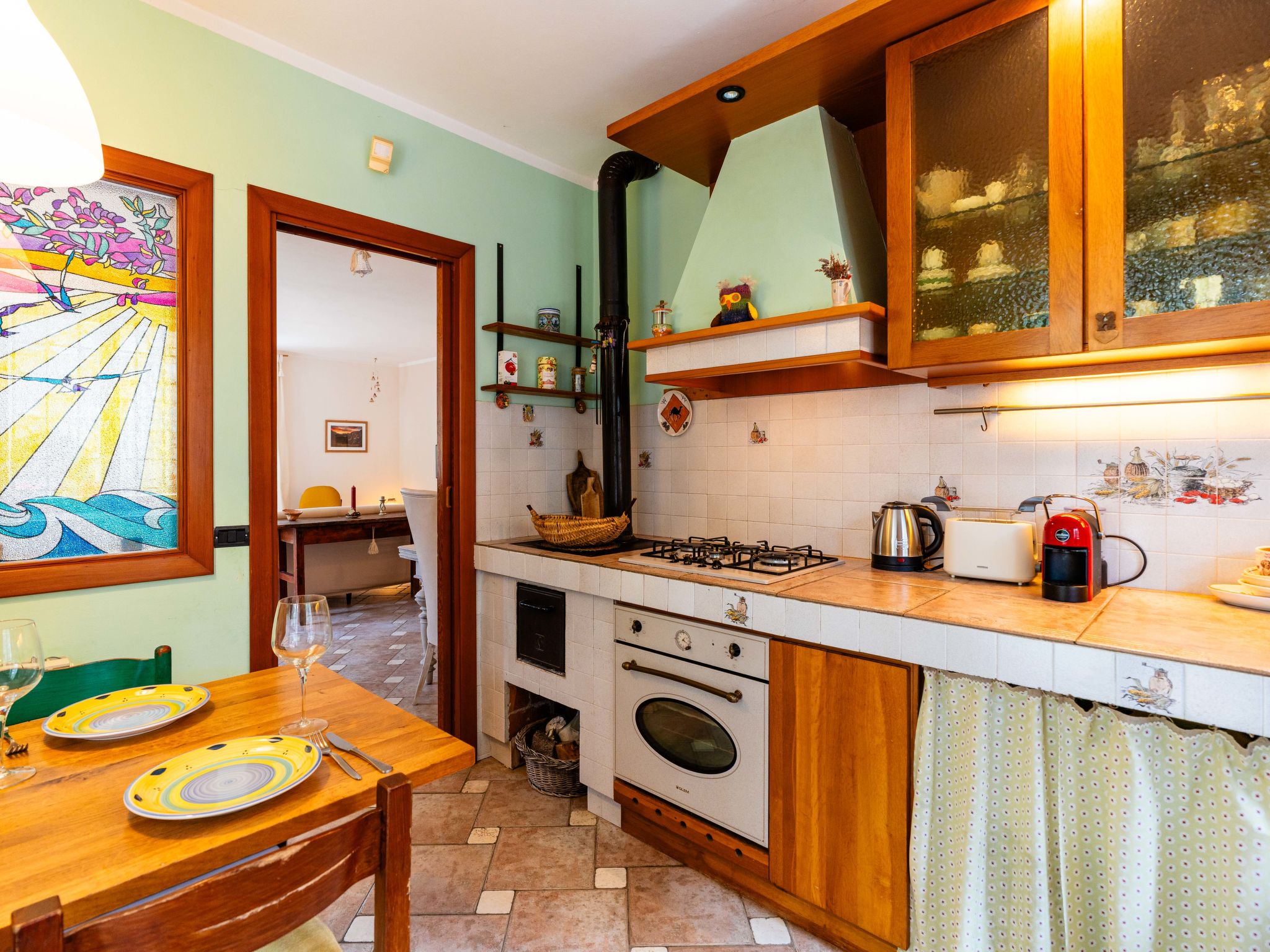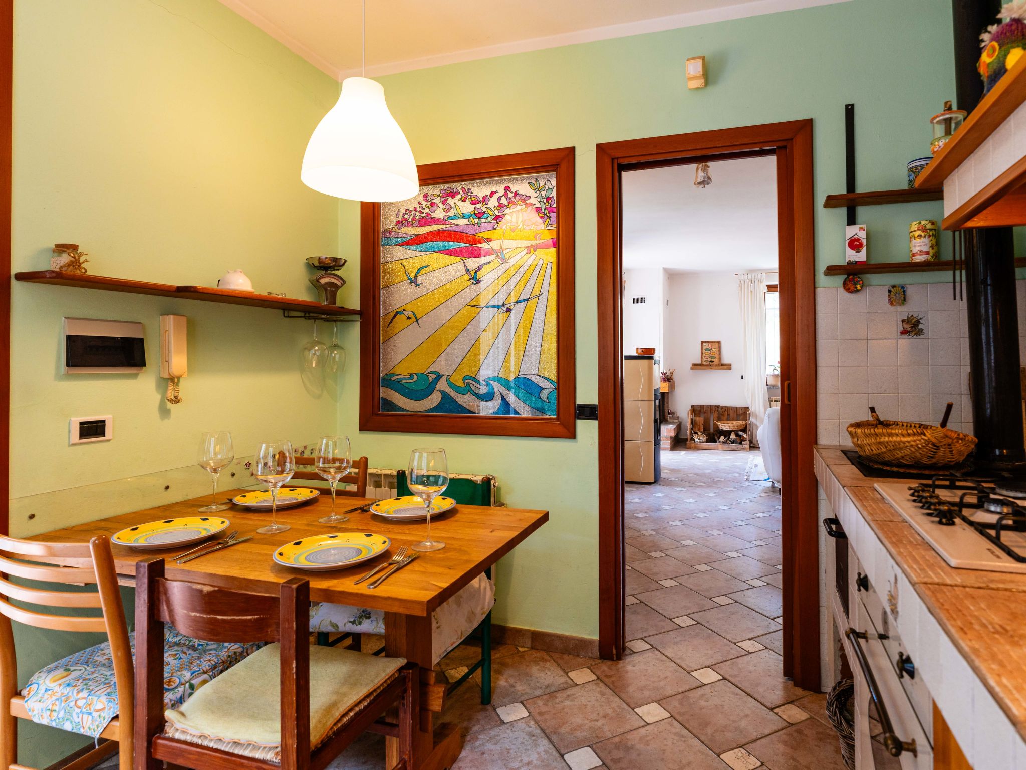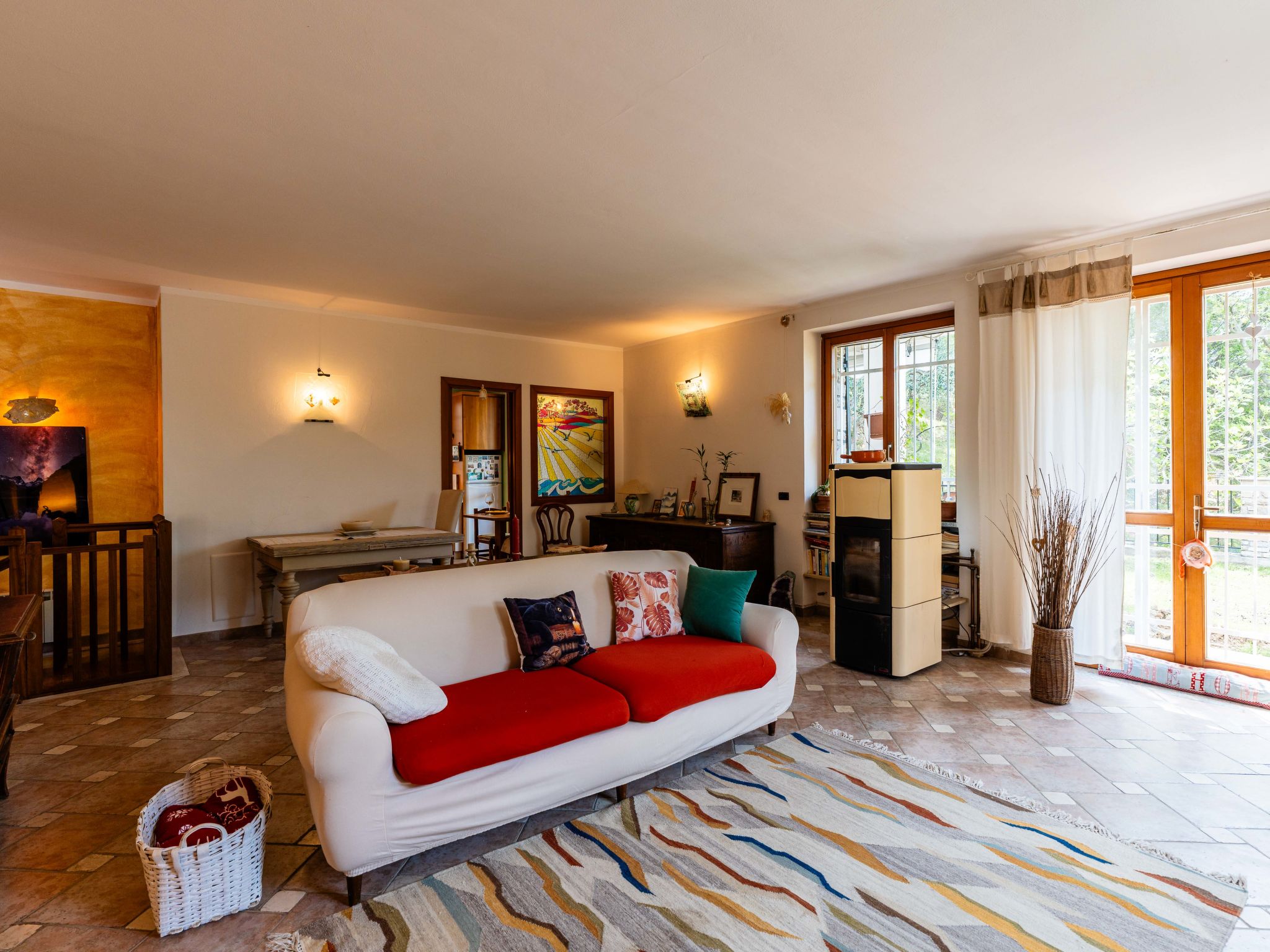 "Quaranta", 3-Zimmer-Haus 100 m2 im 1. Stock. Geschmackvoll und gemütlich eingerichtet: Wohn-/Esszimmer mit 1 Klappbett (90 cm, Länge 200 cm). 1 Zimmer mit 2 Betten (90 cm, Länge 200 cm). 1 Doppelzimmer. Wohnküche (Backofen, 5 Flammen, Toaster, Wasserkocher, Mikrowelle, elektrische Kaffeemaschine). Ausgang zum Garten. Dusche/Bidet/WC. G-Heizung, Klimaanlage, Warmluftheizung. Heizung nur verfügbar von 01.11. bis 15.04. Terrasse, Gartensitzplatz. Terrassenmöbel, Gartengrill. Schöne Sicht auf die Landschaft. Zur Verfügung: Waschmaschine, Kinderhochstuhl, Babybett bis 2 Jahre (extra), Haartrockner. Internet (WLAN, gratis). Parkplatz Nr. 2 beim Haus. Bitte beachten: 1 Haustier/Hund erlaubt. Rauchmelder, Feuerlöscher. IT000000C0EJWA0RSS