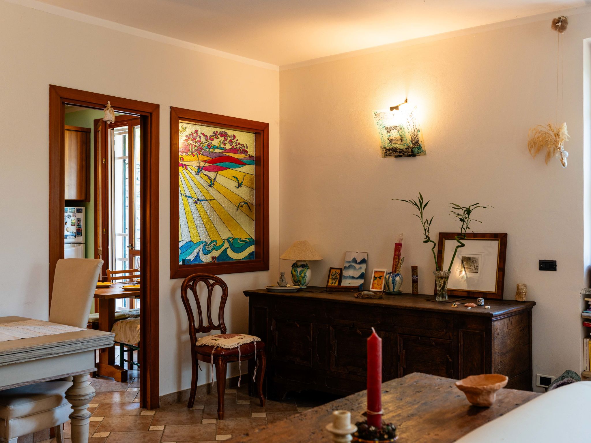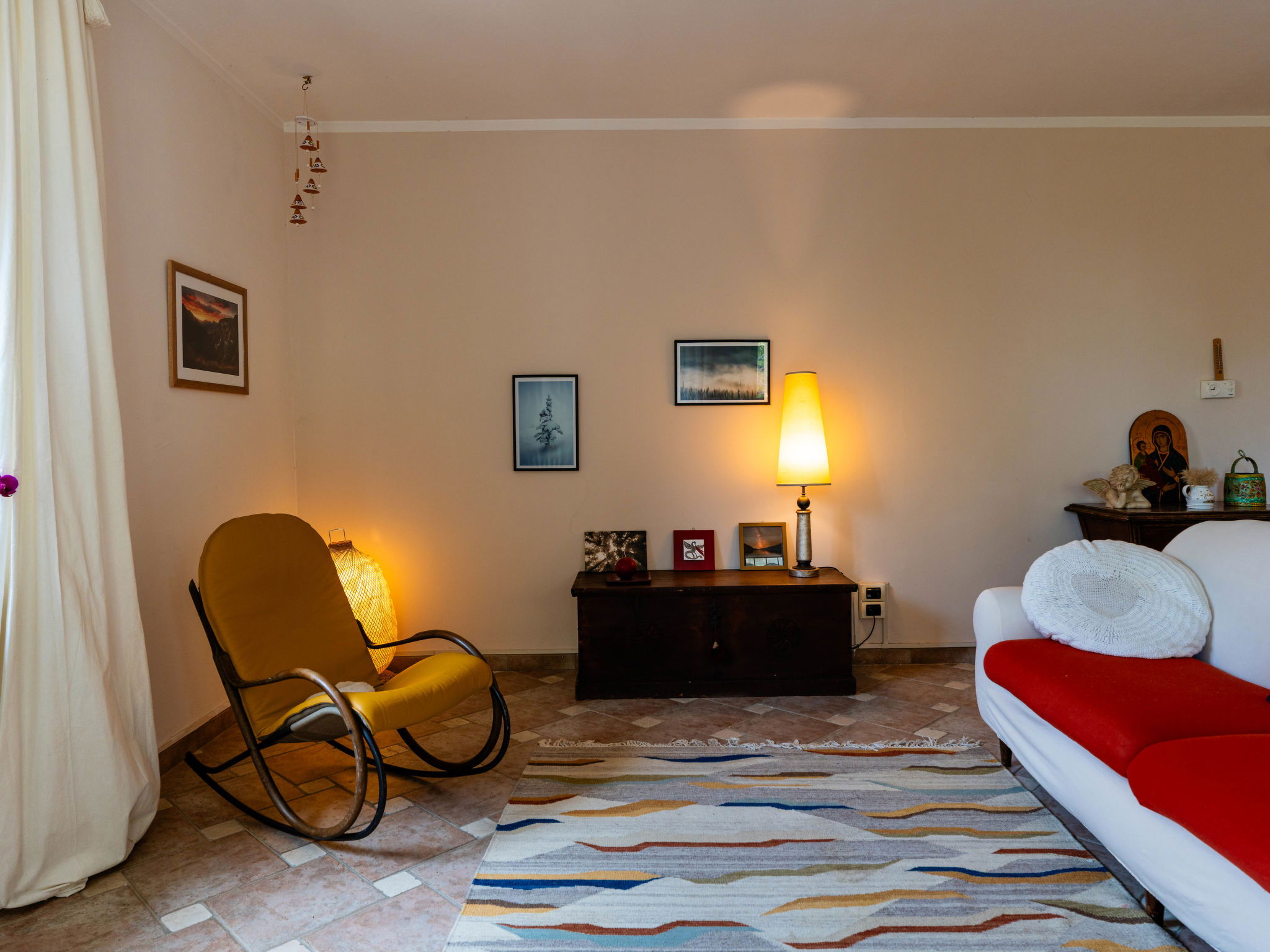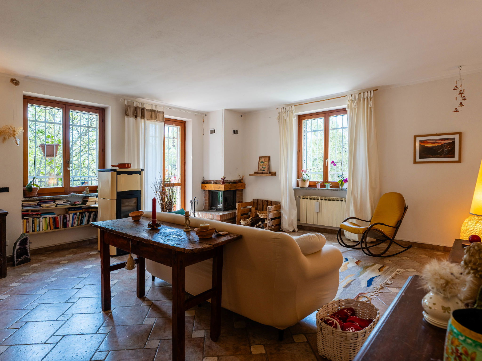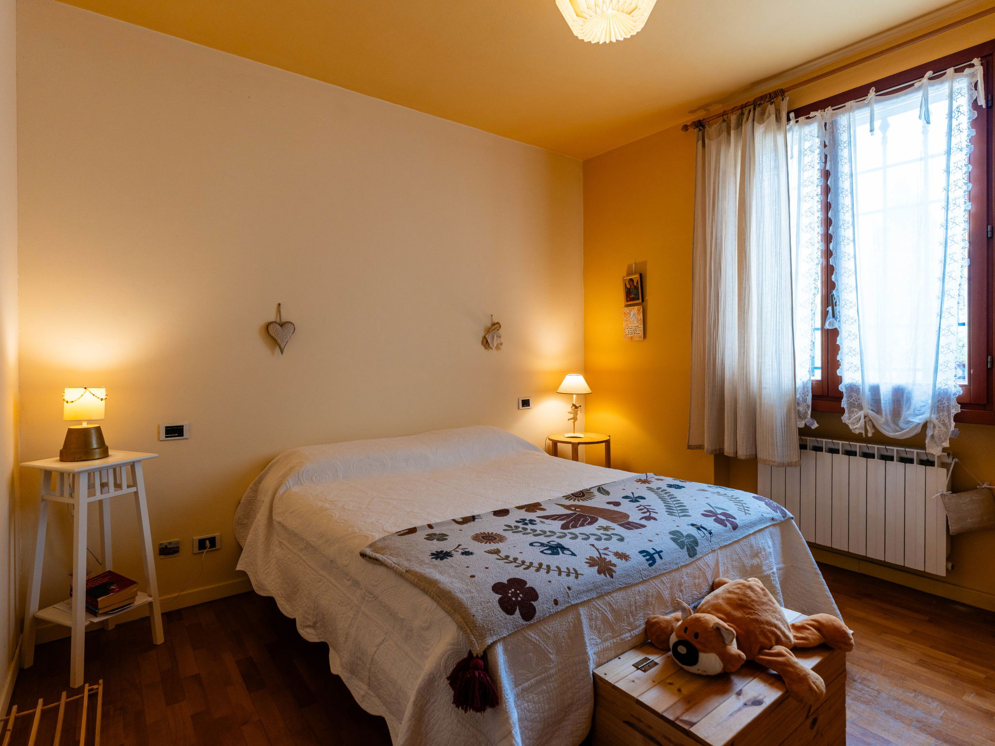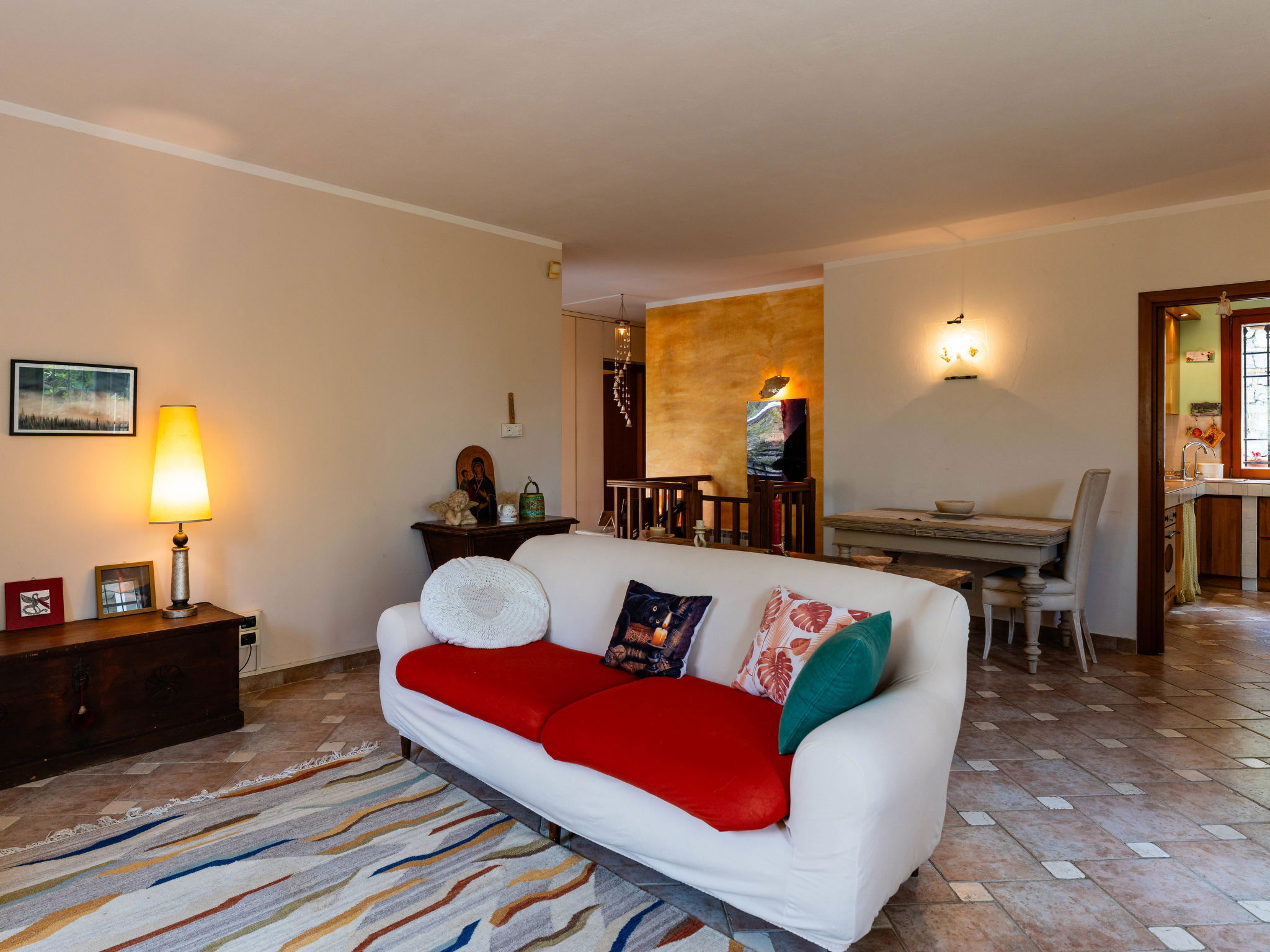 "Quaranta", 3-Zimmer-Haus 100 m2 im 1. Stock. Geschmackvoll und gemütlich eingerichtet: Wohn-/Esszimmer mit 1 Klappbett (90 cm, Länge 200 cm). 1 Zimmer mit 2 Betten (90 cm, Länge 200 cm). 1 Doppelzimmer. Wohnküche (Backofen, 5 Flammen, Toaster, Wasserkocher, Mikrowelle, elektrische Kaffeemaschine). Ausgang zum Garten. Dusche/Bidet/WC. G-Heizung, Klimaanlage, Warmluftheizung. Heizung nur verfügbar von 01.11. bis 15.04. Terrasse, Gartensitzplatz. Terrassenmöbel, Gartengrill. Schöne Sicht auf die Landschaft. Zur Verfügung: Waschmaschine, Kinderhochstuhl, Babybett bis 2 Jahre (extra), Haartrockner. Internet (WLAN, gratis). Parkplatz Nr. 2 beim Haus. Bitte beachten: 1 Haustier/Hund erlaubt. Rauchmelder, Feuerlöscher. IT000000C0EJWA0RSS
