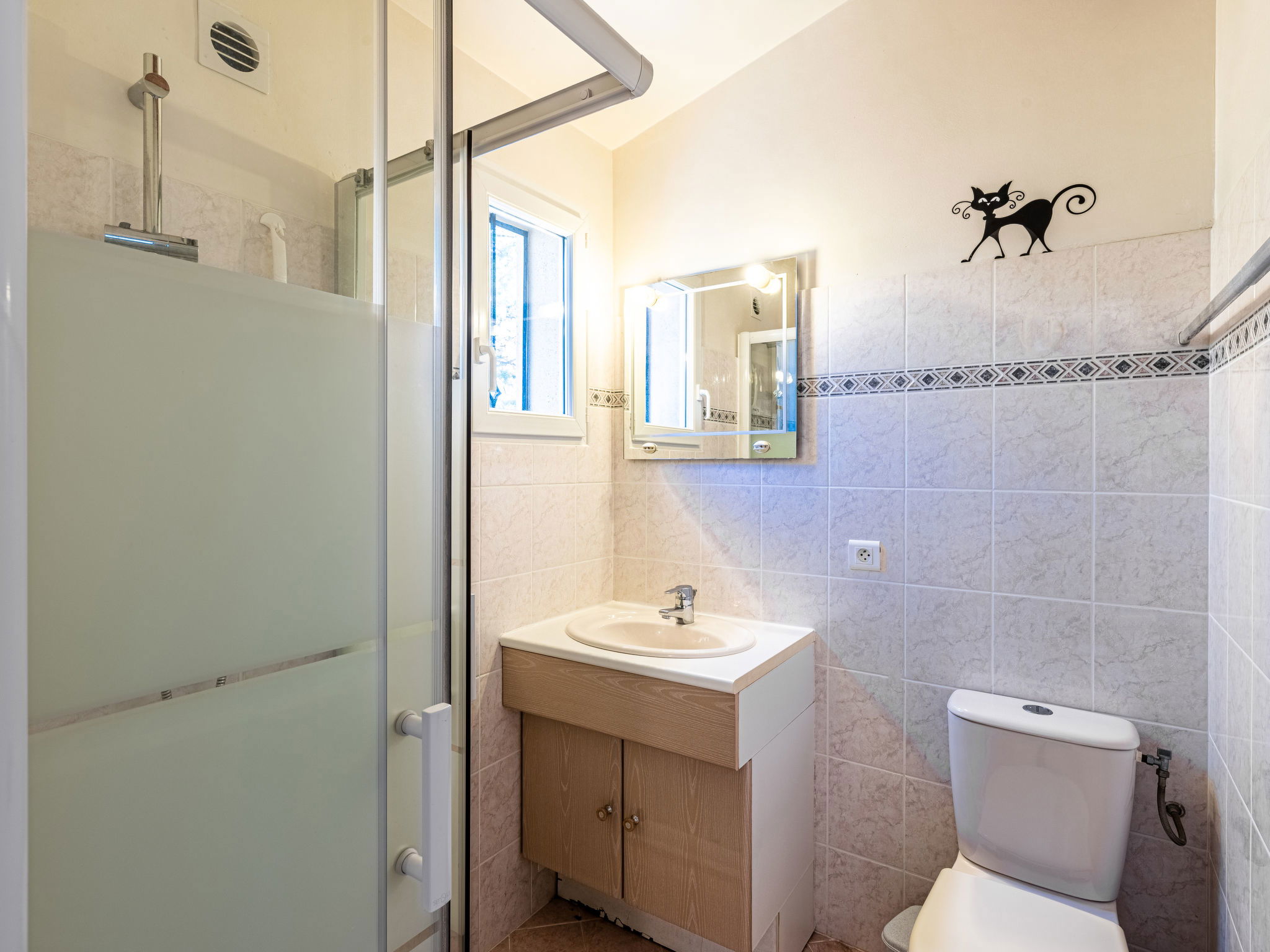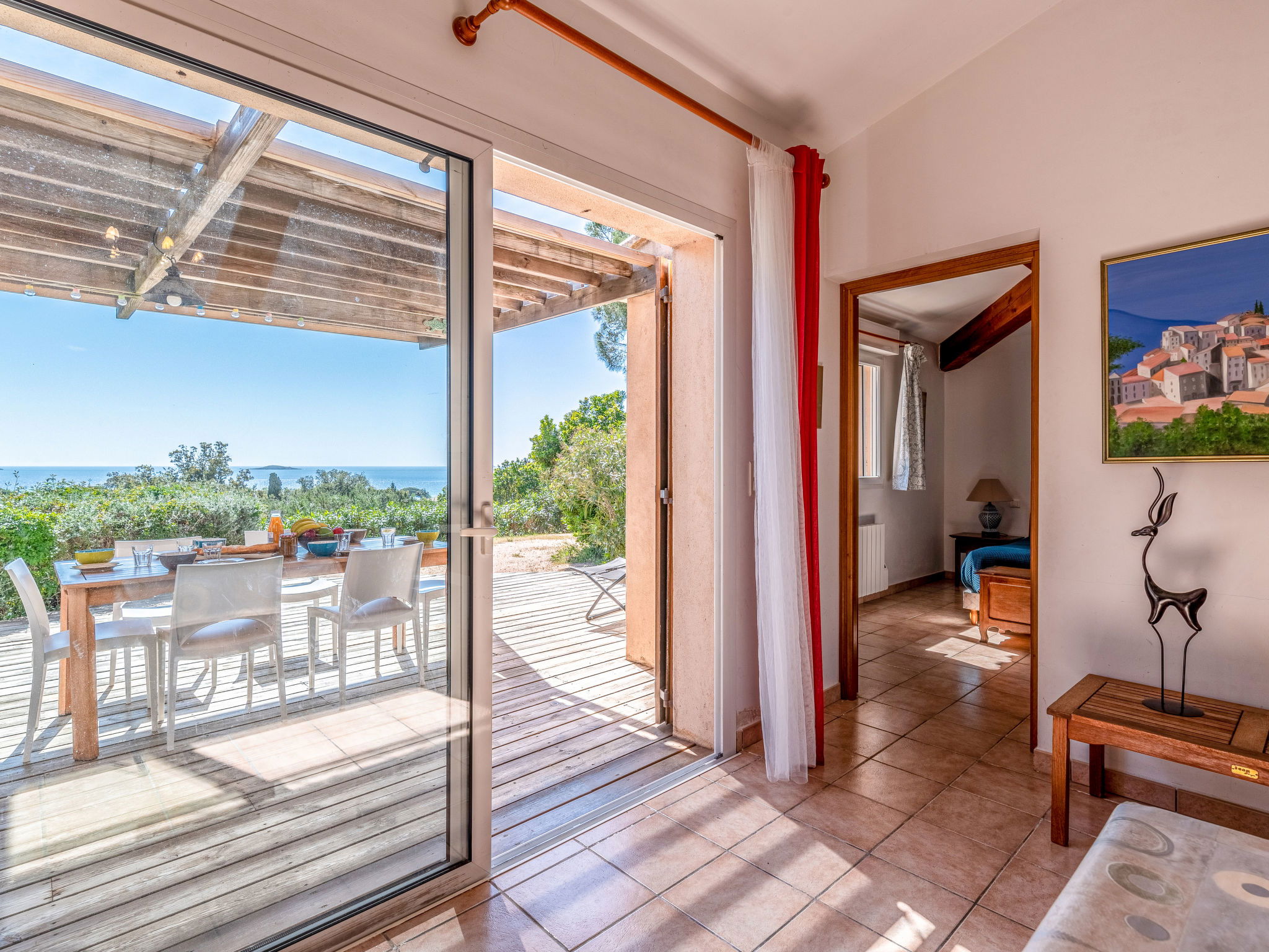 "La Girelle", 4-Zimmer-Haus 90 m2, Südostlage. Wohn-/Esszimmer mit Schiebetür, Panoramafenster mit TV (Flachbildschirm). Ausgang zur Terrasse. 2 Zimmer, jedes Zimmer mit 1 franz. Bett (140 cm, Länge 190 cm), Bad/WC und Klimaanlage. 1 Kinderzimmer mit 1 Bett (90 cm, Länge 190 cm), 1 x 2 Etagenbetten (90 cm, Länge 190 cm), Dusche/WC und Klimaanlage. Küche (Geschirrspüler, 4 Induktionskochplatten, Wasserkocher, elektrische Kaffeemaschine, Kombinationsmikrowelle). Sep. WC. E-Heizung, Klimaanlage. Terrasse 50 m2, Südostlage. Terrassenmöbel. Sehr schöne Sicht auf das Meer. Zur Verfügung: Waschmaschine. Internet (Wireless LAN, gratis). Bitte beachten: Nichtraucher-Unterkunft. Rauchmelder. Inserat einer Privatperson nach Artikel 155, IV, CGI.