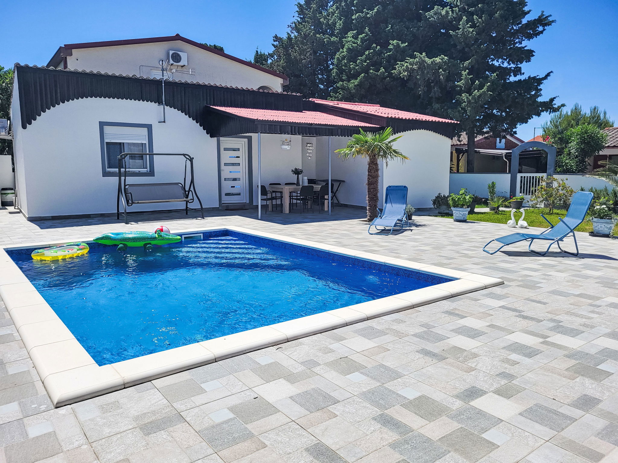Einfamilienhaus "Matea". 250 m vom Zentrum von Sabunike, 5 km vom Zentrum von Privlaka, 180 m vom Meer, 180 m vom Strand. Zur Alleinbenutzung: Grundstück 50 m2, Schwimmbad eckig (5 x 4 m, 150 cm tief, saisonale Verfügbarkeit: 01.Mai. - 01.Okt.) mit Innentreppe. Im Hause: Internetzugang, Waschmaschine. Parkplatz beim Haus auf dem Grundstück. Einkaufsgeschäft 250 m, Restaurant 20 m, Bushaltestelle 850 m, betonierter Strand 180 m. Kinderspielplatz 100 m. Bitte beachten: Der Besitzer wohnt auf dem gleichen Grundstück. Flugplatz 33 km vom Haus.