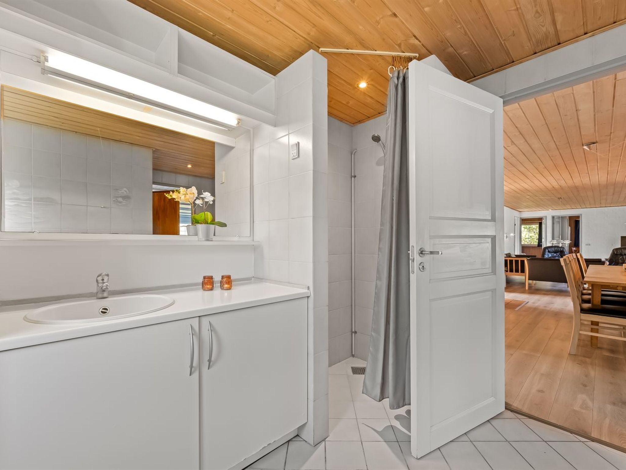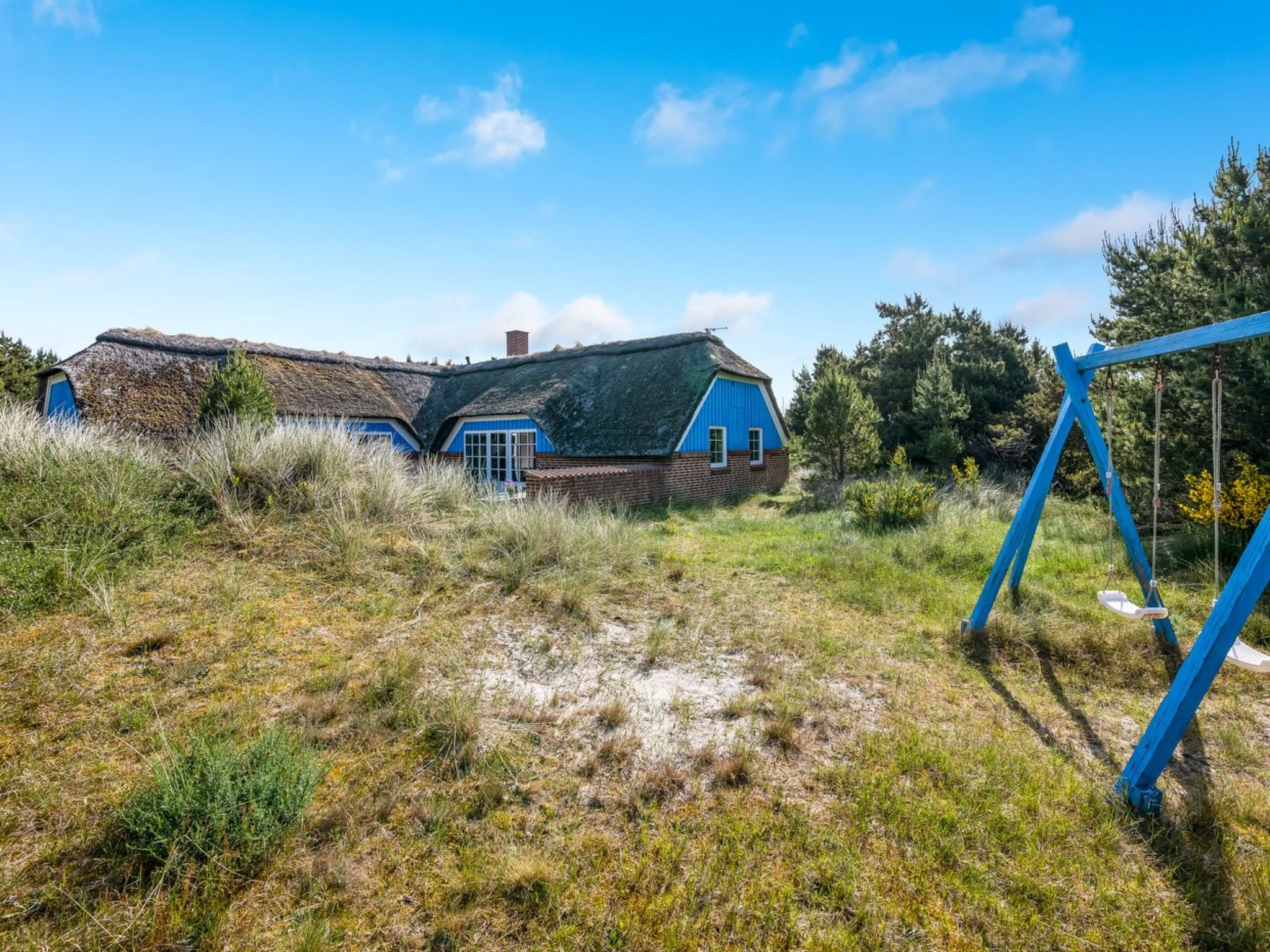 Einfamilienhaus, Baujahr 1989. 850 m vom Meer. Zur Alleinbenutzung: naturbelassenes Grundstück 2'500 m2, Hallenbad (4 x 6 m, 24 m2, 130 - 130 cm tief). Kinderspielplatz (Schaukel). Im Hause: Sauna, Waschmaschine, Wäschetrockner. Parkplatz beim Haus. Lebensmittelgeschäft 5 km. Der Besitzer akzeptiert keine Jugendgruppen.