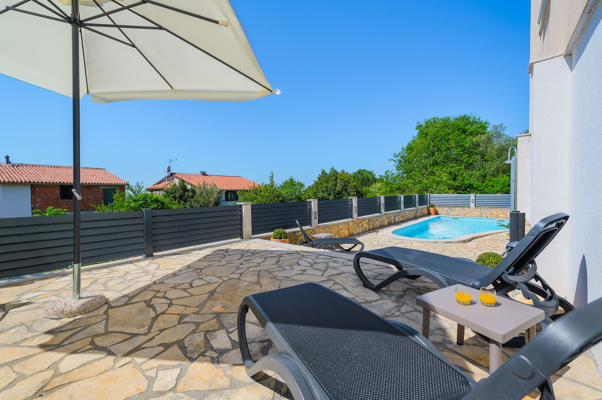 Mit ihren geräumigen Innenräumen, der stilvollen Einrichtung und den sonnenverwöhnten Terrassen ist die Villa Zaza ideal für Familien, Paare oder Freunde, die einen ruhigen Urlaub verbringen möchten. Wachen Sie mit einem Panoramablick auf die Landschaft auf, verbringen Sie Ihre Nachmittage am privaten Pool und genießen Sie Abendessen im Freien, während die Sonne über der Adria in der Ferne untergeht.