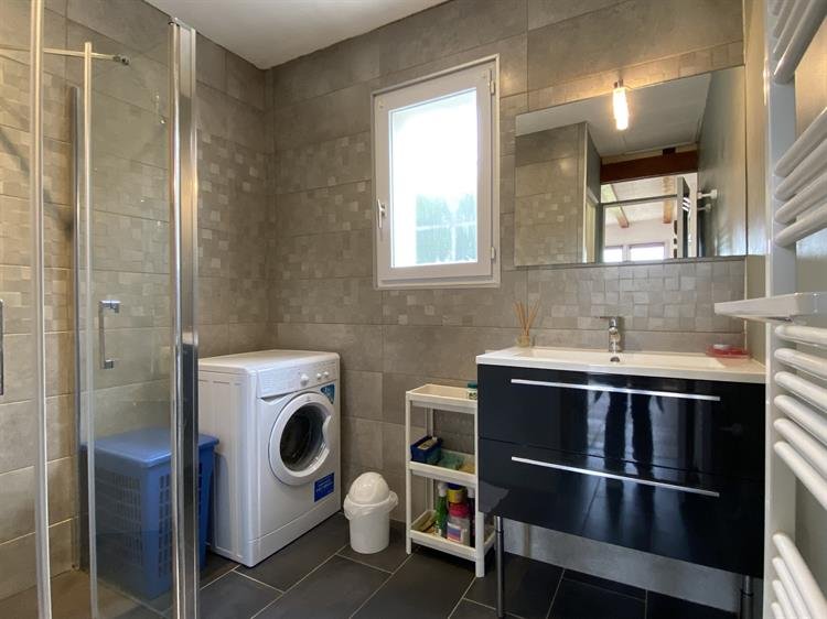 Angenehmes, ruhiges Haus, bestehend aus einem Wohnzimmer mit Wohn-/Esszimmerbereich und ausgestattetem und möbliertem Küchenbereich, einem ersten Schlafzimmer für zwei Personen (140), einem zweiten Schlafzimmer für zwei Personen (140), einem Badezimmer mit Waschmaschine und separatem Badezimmer TOILETTE. Draußen umzäunter Garten mit Terrasse und Gartenmöbeln. Parkplatz vor dem Grundstück.