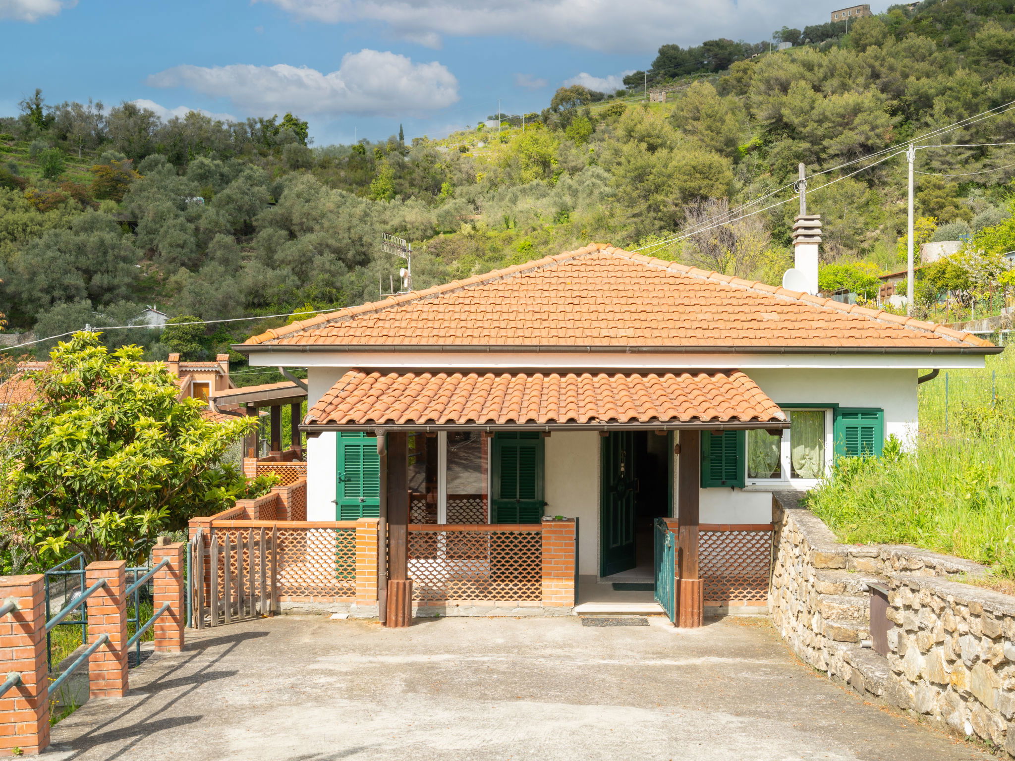 Freistehendes, komfortables Einfamilienhaus "Ludovica", umgeben von Bäumen und Wiesen. Im Ortsteil Orià, 2 km vom Zentrum von Soldano, 10 km vom Zentrum von Bordighera, 10 km vom Zentrum von Ventimiglia, am Hang, in einem Wohnquartier, 8 km vom Meer. Zur Alleinbenutzung: Garten 200 m2 (eingezäunt) mit Rasen und Bäumen. 2 km lange steile, schmale Zufahrt bis zum Haus. Parkplatz (für 2 Autos) auf dem Grundstück. Einkaufsgeschäft 2 km, Supermarkt 5 km, Restaurant 2 km, Bar 2 km, Bushaltestelle 10.9 km, Bahnstation "Ventimiglia" 9 km, Sandstrand "Vallecrosia" 8 km, Hallenbad 8.3 km.