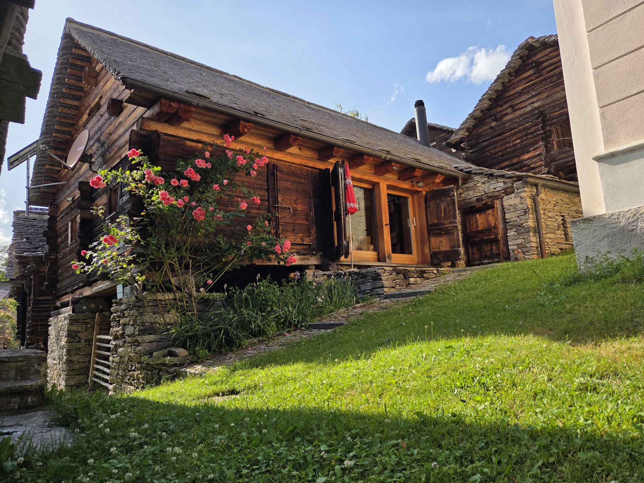 Val Malvaglia / Dagro 19 km von Malvaglia: Die Stromversorgung erfolgt über ein Solarpanel. Herd, Kühlschrank und Kessel werden mit Gas betrieben. Elektrogeräte über 250W können nicht betrieben werden. Wichtiger Hinweis zu beachten: Bergstrasse 13 km von Malvaglia in Echtzeit 30 Minuten. Die Nutzung der Zufahrtsstrasse ins Val Malvaglia ist seit Neustem Gebührenpflichtig. CHF 7.00/Tag CHF 15.00/Woche CHF 30.00/Monat. Die Gebühr kann in CHF oder Kreditkarte bezahlt werden. Gebührenautomat befindet sich in Caslou. Kinderfreundliches, schönes, rustikales Einfamilienhaus "Rustico Cà dru Lurenz", 1'400 m.ü.M., auf 2 Stockwerken, umgeben von Bäumen und Wiesen. Im Weiler Dagro mit 40 Häusern, im Bezirk Valle di Blenio, ruhige, sonnige Lage, im Grünen, Richtung Süden. Zur Alleinbenutzung: Sitzplatz, Gartenmöbel, Grill. Im Hause: Einstellraum für Fahrräder. 7 km lange schmale Zufahrt (4 km Naturweg, Bergstrasse). 100 m Fussweg bis zum Haus. Öffentliche Parkplätze 100 m auf der Strasse. Supermarkt 20 km, Restaurant 500 m, Bushaltestelle "Malvaglia Chiesa bus 131-140" 19 km, Bahnstation "Biasca FFS - SBB" 25 km. Wanderwege ab Haus 1 m, Luftseilbahn 500 m. Nahe gelegene Sehenswürdigkeiten: Castelli di Bellinzona, UNESCO, Mercato di Bellinzona, sabato, Castello di Serravalle, Archivio Doneta, Negrentino, Museo della Valle di Blenio, Splash & SPA, Monte Tamaro. Bekannte Seen in der Umgebung sind gut erreichbar: Lago di Lugano, Lago Maggiore, Lago di Luzzone. Wandergebiete: Montegreco, Capana Quarnei, Capana Prou, Val Malvaglia, Valle di Blenio. Bitte beachten: Fahrzeug empfohlen. Babyausstattung auf Anfrage (extra). Tiere in der Umgebung.
