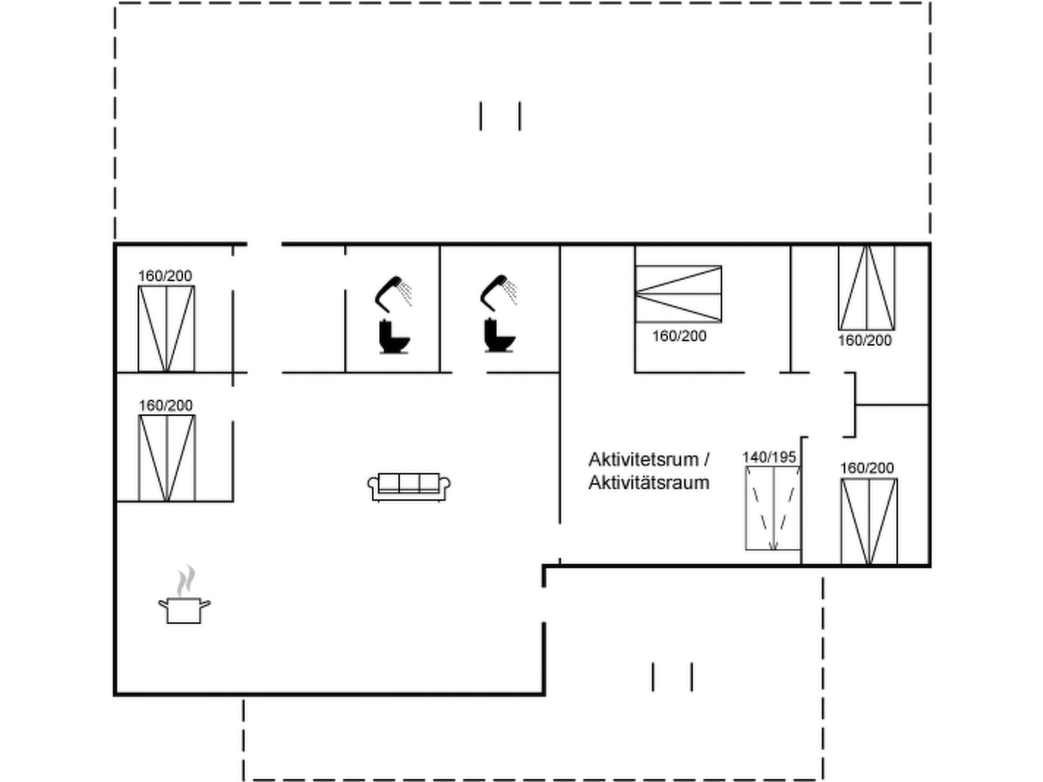 Einfamilienhaus, Baujahr 2025. 30 km vom Meer. Zur Alleinbenutzung: naturbelassenes Grundstück 875 m2. Aussendusche, Grill, Kinderspielplatz (Schaukel). Im Hause: Tischfussball, Trampolin, Waschmaschine, Wäschetrockner. Parkplatz beim Haus. E-Ladestation. Lebensmittelgeschäft 800 m. Der Besitzer akzeptiert keine Jugendgruppen.