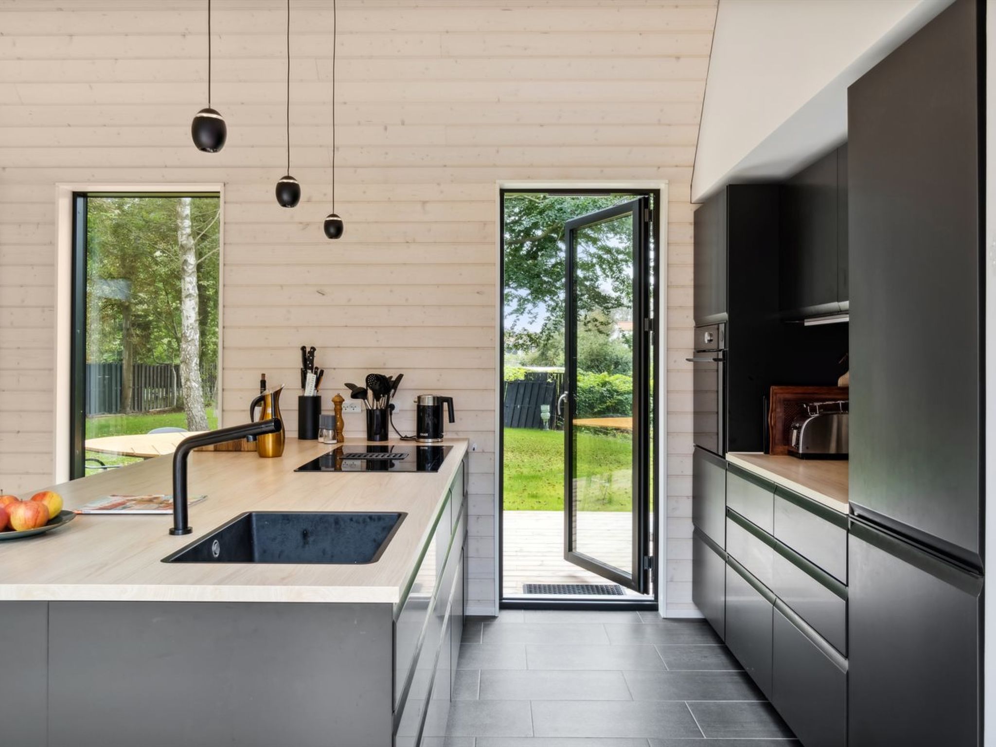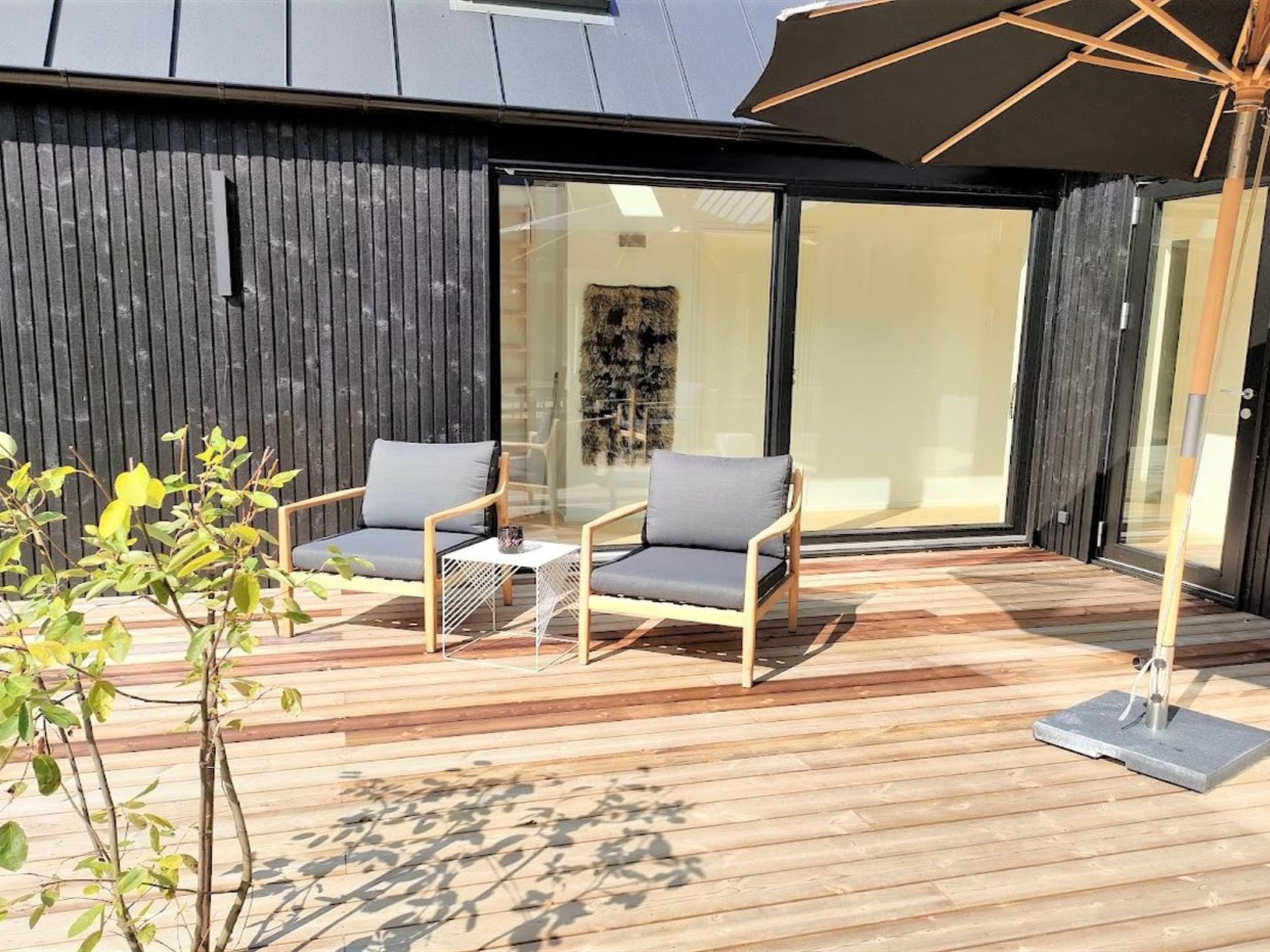 Einfamilienhaus, Baujahr 2023. 275 m vom Meer. Zur Mitbenutzung: Garten. Zur Alleinbenutzung: Grundstück 1'572 m2, gepflegter Garten (eingezäunt). Aussendusche, Terrasse (120 m2), Grill. Im Hause: Sauna, Tischfussball, Waschmaschine, Wäschetrockner. Parkplatz beim Haus. Carport. Lebensmittelgeschäft 400 m. Golfplatz 11 km. Der Besitzer akzeptiert keine Jugendgruppen.