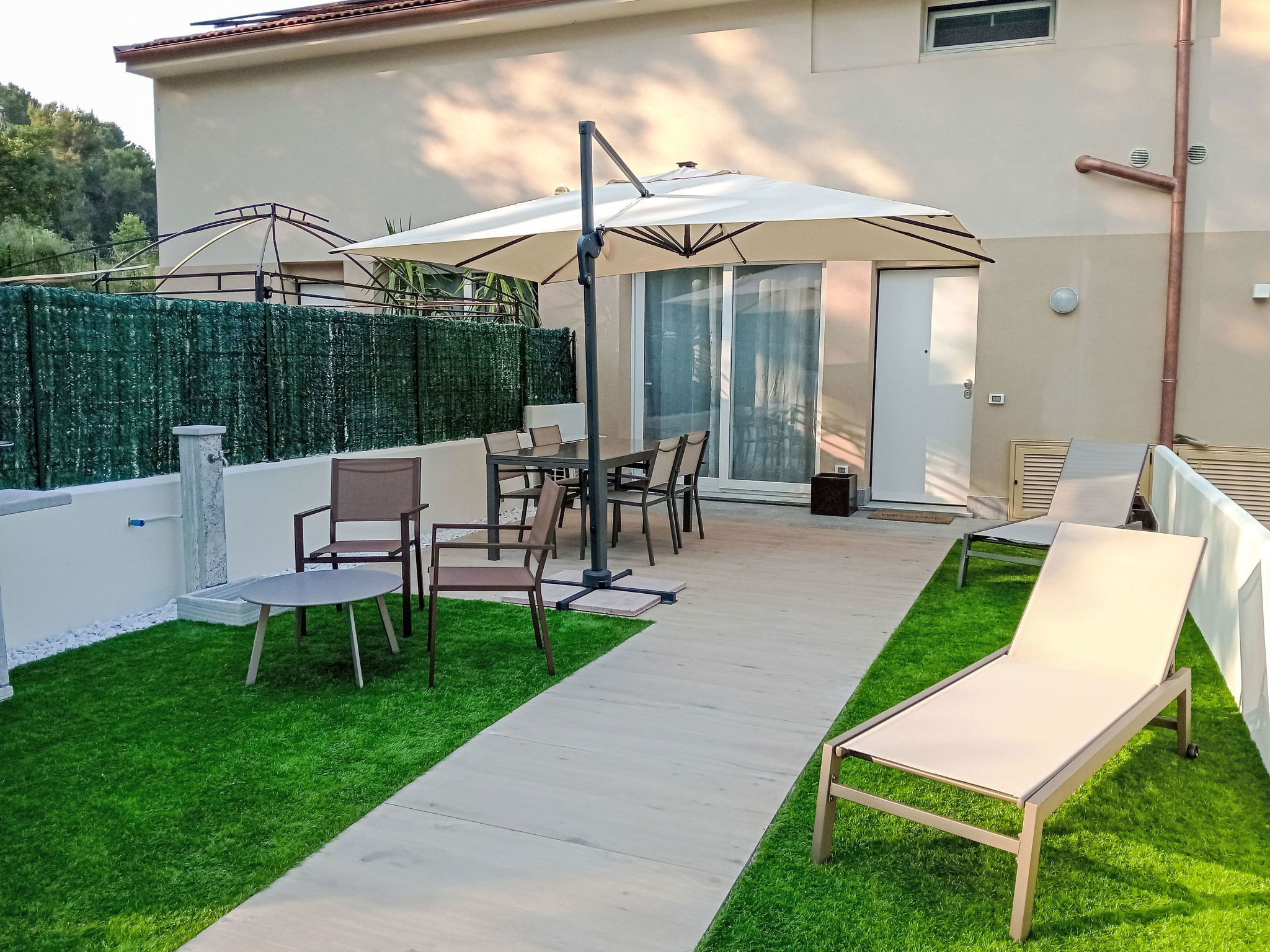 "Suite Garden 31", 2-Zimmer-Reihenhaus 70 m2, im Erdgeschoss. Modern und geschmackvoll eingerichtet: Wohn-/Esszimmer mit 1 Doppeldiwanbett (160 cm, Länge 200 cm), TV. Ausgang zum Garten. Wohnküche (Backofen, Geschirrspüler, 4 Glaskeramikplatten, Toaster, Wasserkocher, Mikrowelle, elektrische Kaffeemaschine). Ausgang zum Garten. Dusche/Bidet/WC. 2. Obergeschoss: 1 Doppelzimmer. Dusche/Bidet/WC. Klimaanlage, Warmluftheizung. Heizung nur verfügbar von 01.11. bis 15.04. Gartensitzplatz 50 m2. Terrassenmöbel, Gartengrill. Zur Verfügung: Waschmaschine, Fliegengitter, Babybett bis 2 Jahre. Internet (WLAN, gratis). Garage. Bitte beachten: Nichtraucher-Haus. Maximal 1 Haustier/Hund erlaubt. Eigener Eingang, Rauchmelder, Feuerlöscher. IT009068B47XGQL8UQ
