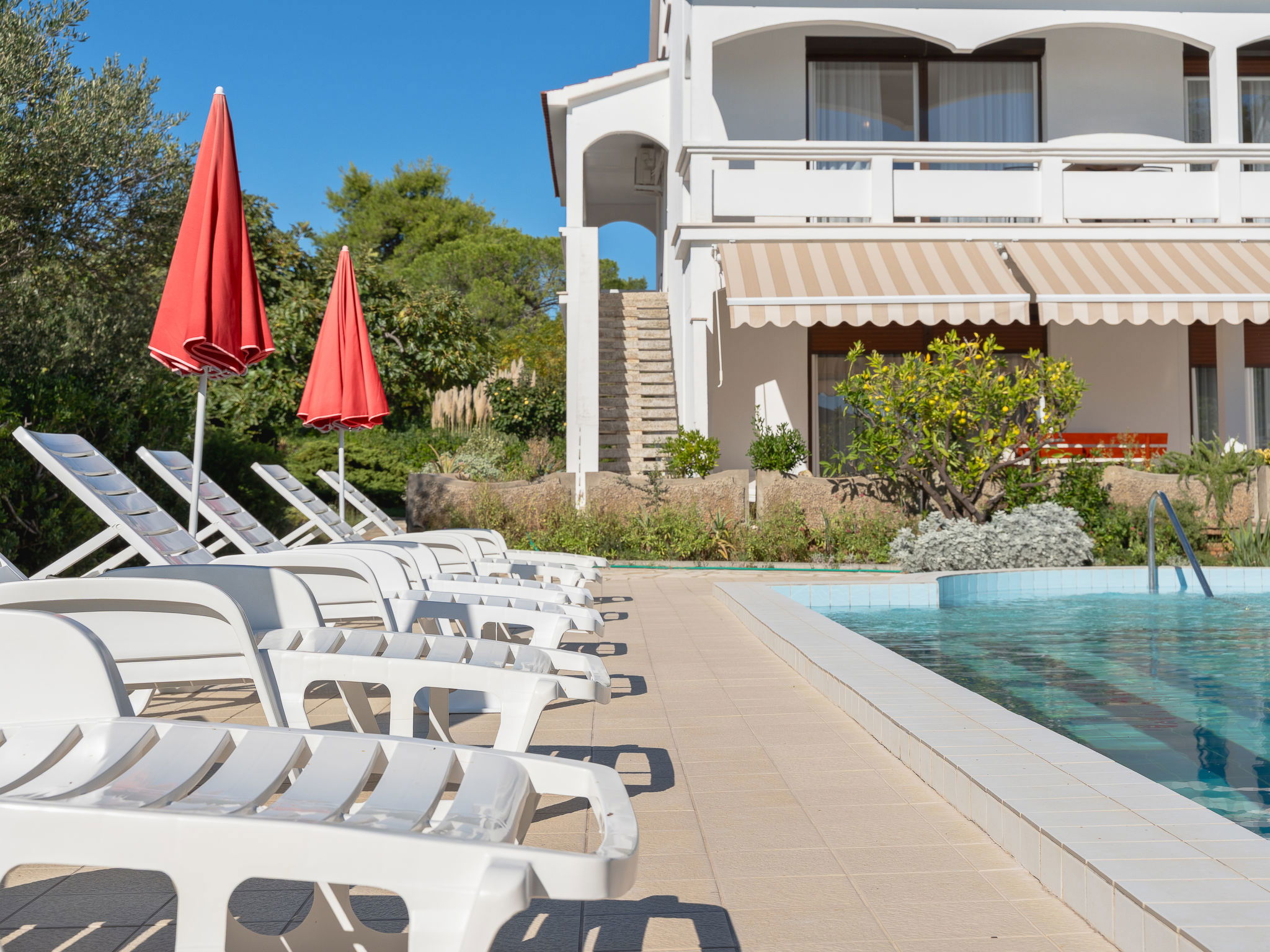 Doppelhaus "Ana". Ausserhalb des Ortes, 1 km vom Zentrum von Vir, 400 m vom Meer, 400 m vom Strand, im Grünen. Zur Mitbenutzung: Garten mit Pflanzen und Bäumen, Obstgarten, Schwimmbad eckig (10 x 6 m, 150 - 170 cm tief, saisonale Verfügbarkeit: 04.Mai. - 14.Sep.) mit Innentreppe. Aussendusche, Grill, Kinderspielplatz. Im Hause: Internetzugang. Parkplatz beim Haus auf dem Grundstück. Einkaufsgeschäft 500 m, Restaurant 1 km, Bushaltestelle 2.3 km, Steinstrand 400 m. Das Haus befindet sich auf dem Grundstueck vom Haus HR4050.120.