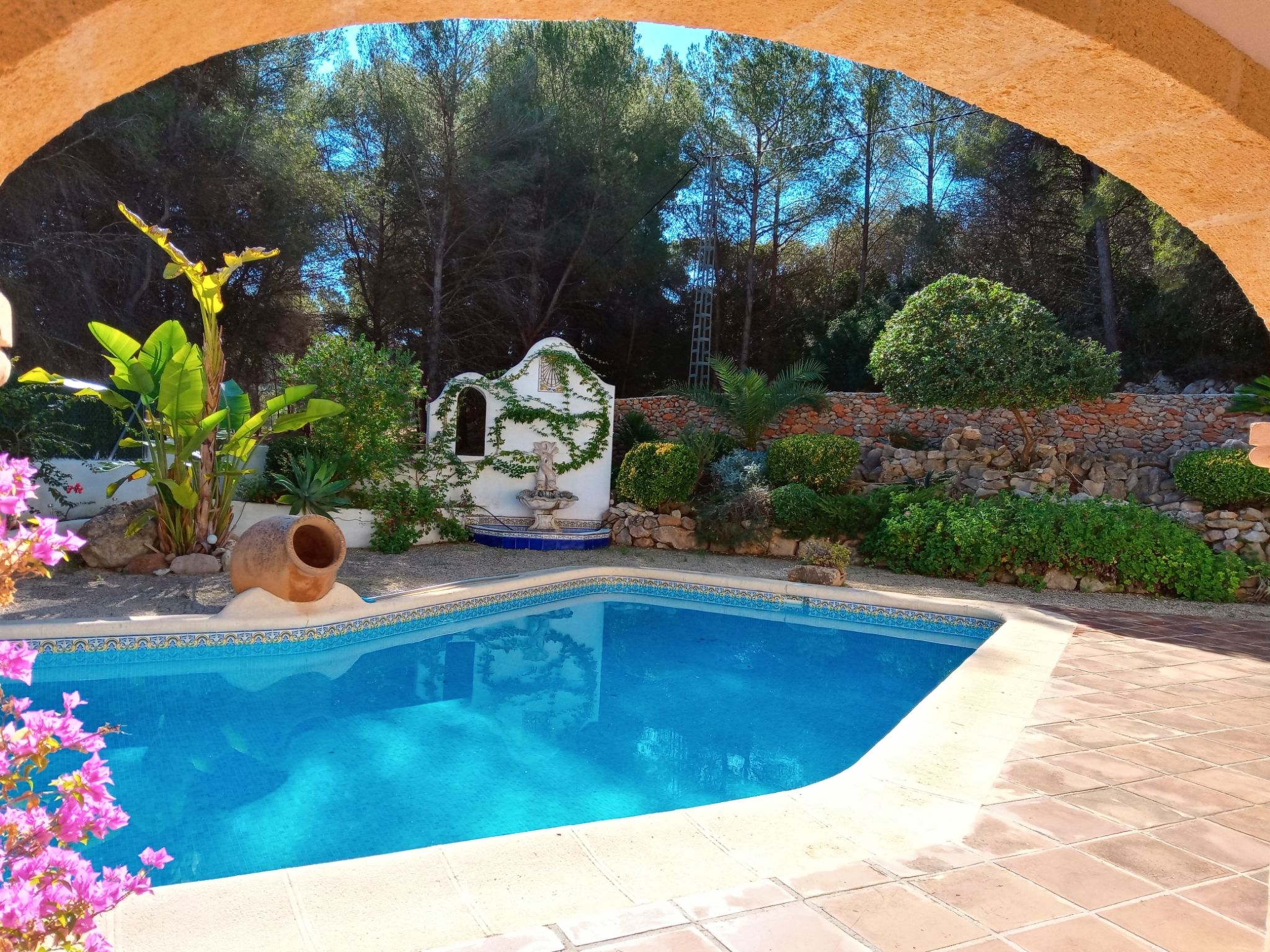 Haus "Amadorio". Im Ortsteil La Colina, 4 km vom Meer. Zur Alleinbenutzung: Garten 1'000 m2 (eingezäunt) mit Pflanzen und Bäumen, Schwimmbad (5 x 10 m, 115 - 200 cm tief, saisonale Verfügbarkeit: 01.Jan. - 31.Dez.) mit Innentreppe. Im Hause: Dachterrasse. Treppenweg (9 Stufen) bis zum Haus. Einkaufsgeschäft 3 km, Restaurant 3 km, Bushaltestelle 4 km, Sandstrand "Arenal" 4 km. Jugendgruppen nur auf Anfrage.