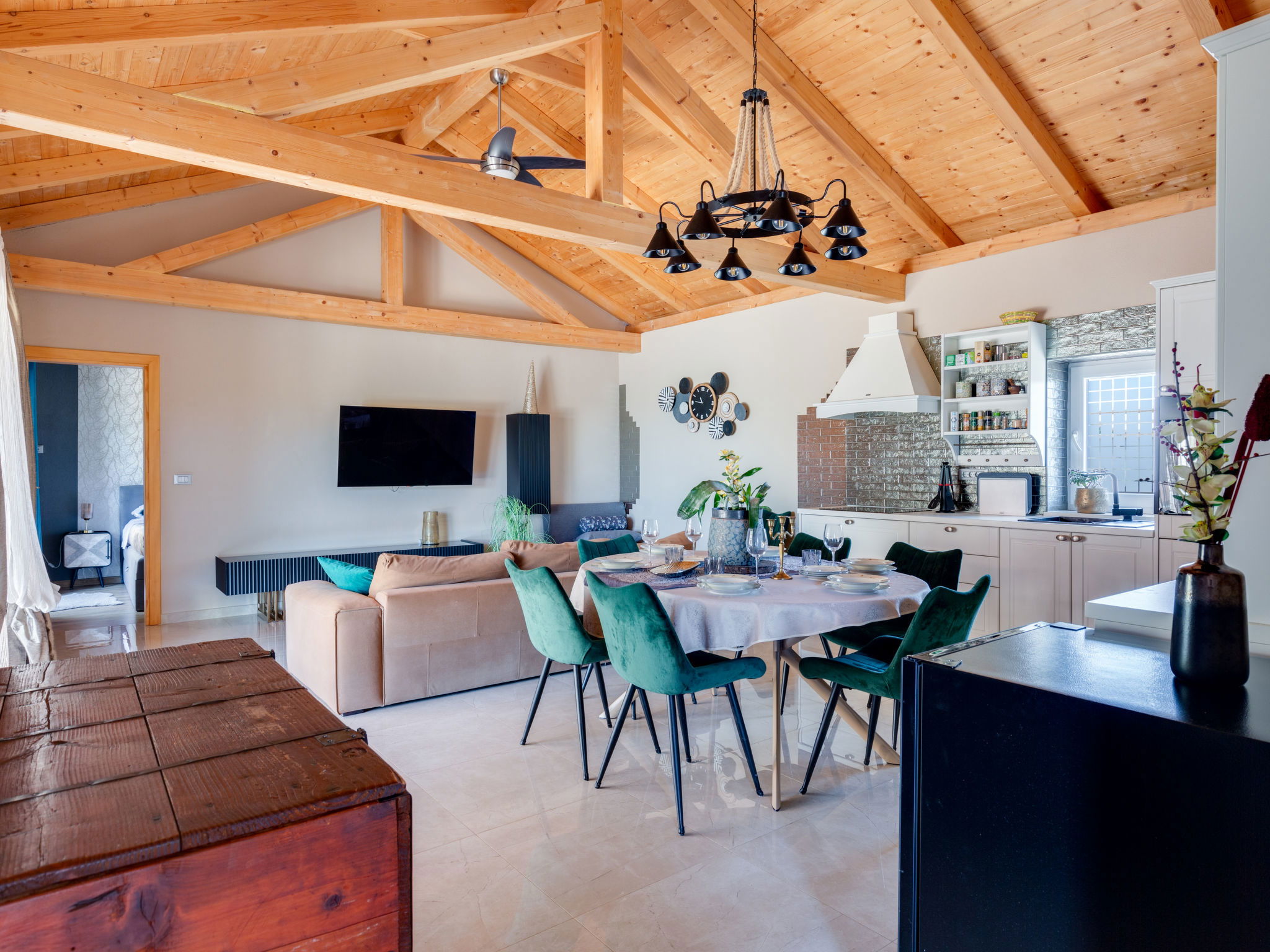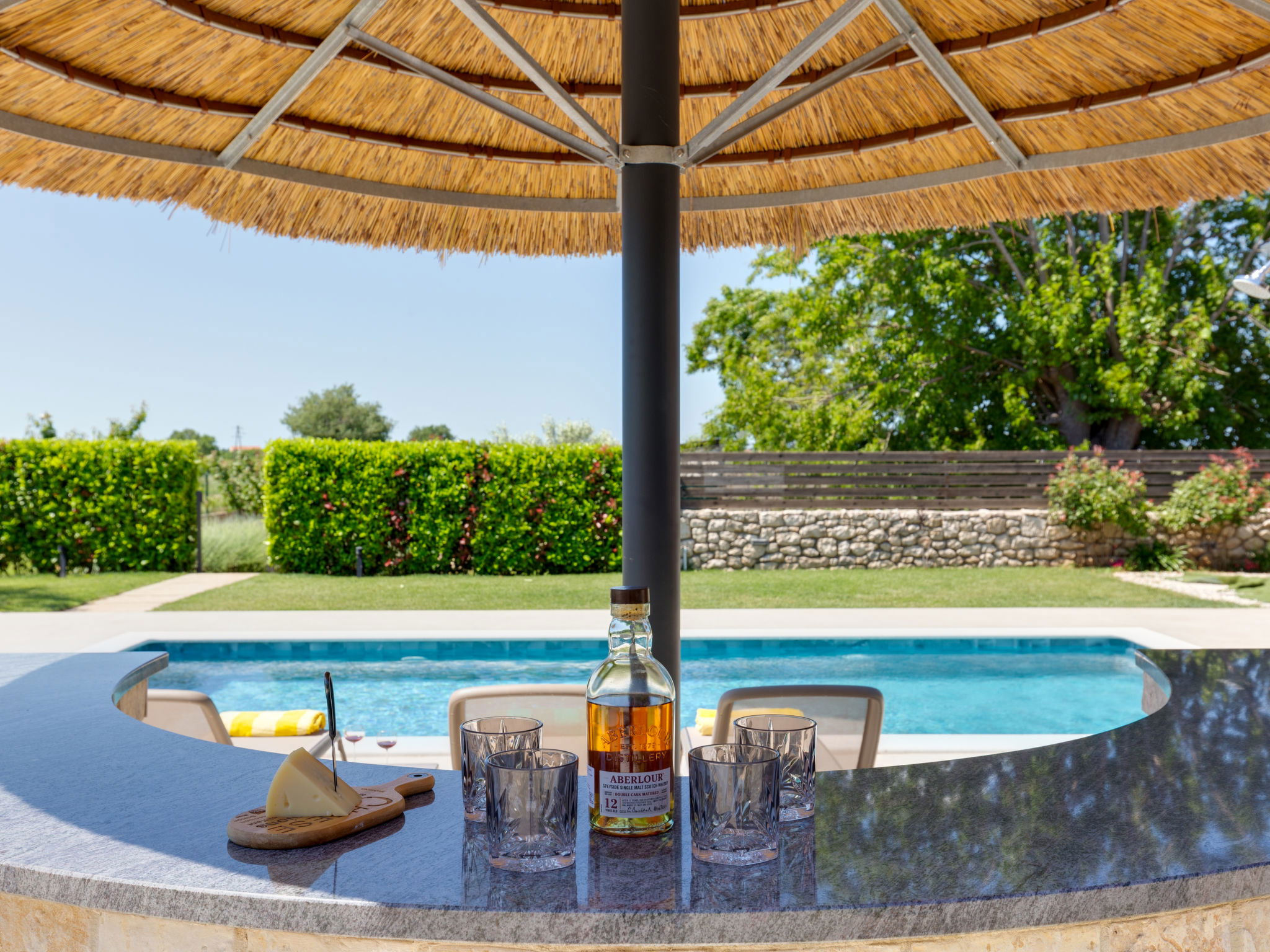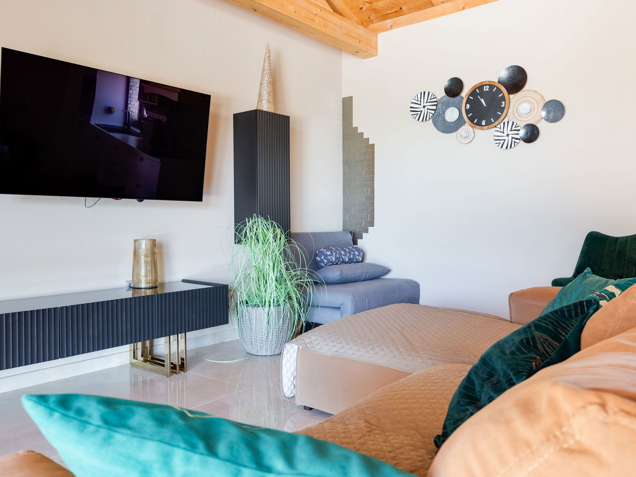 4-Zimmer-Villa 105 m2, Südwestlage. Wohn-/Esszimmer 55 m2 mit 1 Doppeldiwanbett (140 cm, Länge 200 cm), Sat-TV (Flachbildschirm), Klimaanlage. Ausgang zur Terrasse. 3 Zimmer, jedes Zimmer mit 1 franz. Bett (160 cm, Länge 200 cm), Dusche/WC und Sat-TV (Flachbildschirm). Offene Küche (Backofen, Geschirrspüler, 4 Glaskeramikplatten, Mikrowelle, Tiefkühler). Dusche/WC. Terrasse 80 m2 teilweise überdacht. Terrassenmöbel, Liegestühle. Sicht auf das Schwimmbad. Zur Verfügung: Haartrockner. Internet (Wireless LAN, gratis). Maximal 1 Haustier/Hund erlaubt.
