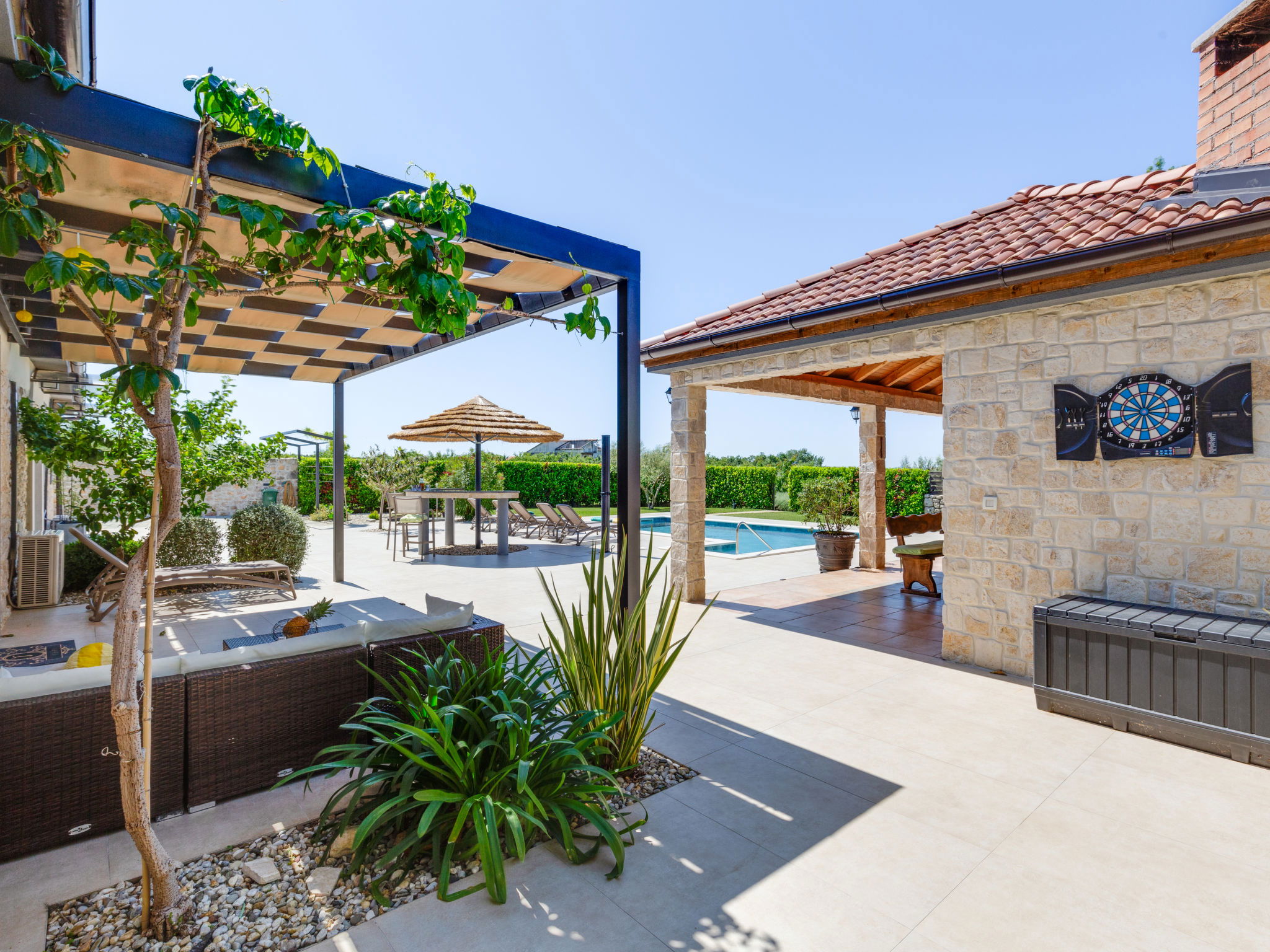 Zemunik Donji 22 km von Zadar: Schönes Einfamilienhaus "Villa Tanja". 17 km vom Zentrum von Sukošan, sonnige Lage, 17 km vom Meer. Zur Alleinbenutzung: Grundstück 1'500 m2 (eingezäunt), Schwimmbad (8 x 4 m, 140 cm tief, saisonale Verfügbarkeit: 01.Mai. - 01.Okt.) mit Innentreppe. Aussendusche. Im Hause: Internetzugang, Waschmaschine. Parkplatz (für 2 Autos) beim Haus auf dem Grundstück. E-Ladestation. Einkaufsgeschäft 1 km, Restaurant 17 km, Bushaltestelle 7.1 km, Kieselstrand 17 km. Nahe gelegene Sehenswürdigkeiten: NP Krka 67 km, NP Paklenica 39 km, Fun park Biograd 32 km. Bekannte Seen in der Umgebung sind gut erreichbar: Vrana See 33 km. Jugendgruppen nur auf Anfrage. Bitte beachten: Flugplatz 12 km vom Haus.