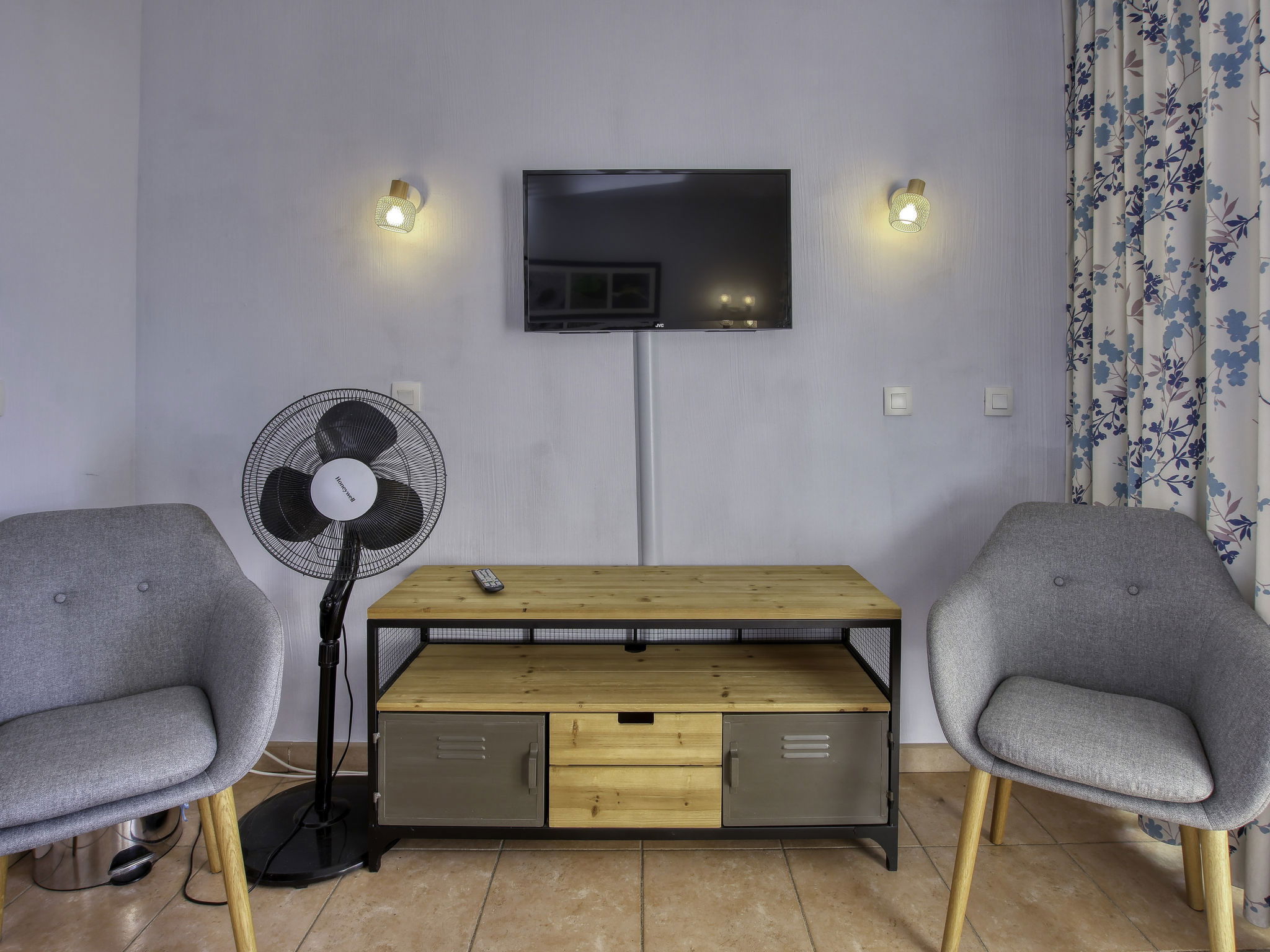 2-Zimmer-Wohnung 32 m2 im 2. Stock. Zweckmässig und schön eingerichtet: Wohn-/Esszimmer mit 1 Doppeldiwanbett (140 cm, Länge 190 cm), TV (Flachbildschirm). Ausgang zur Terrasse. 1 Zimmer mit 1 franz. Bett (1 x 140 cm, Länge 190 cm). Kochnische (Geschirrspüler, 4 Glaskeramikplatten, Toaster, Wasserkocher, Mikrowelle, elektrische Kaffeemaschine). Bad, sep. WC. E-Heizung. Terrasse 9 m2, überdacht, Südwestlage. Terrassenmöbel. Herrliche Sicht auf das Meer und das Schwimmbad. Zur Verfügung: Internet (Wireless LAN, extra). Parkplatz Nr. 460 (Niveau 1) (überdacht), Höhe 190 cm, Breite 232 cm. Bitte beachten: Maximal 1 Haustier/Hund erlaubt. TV nur FR. Rauchmelder. FR835410019