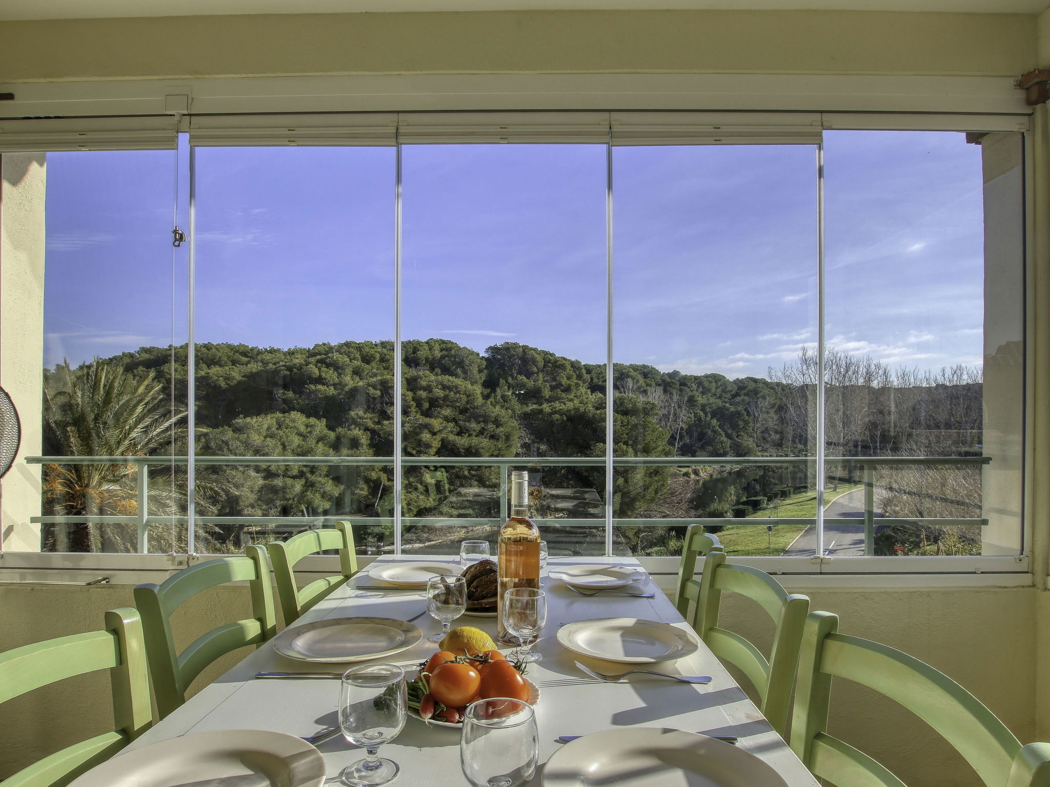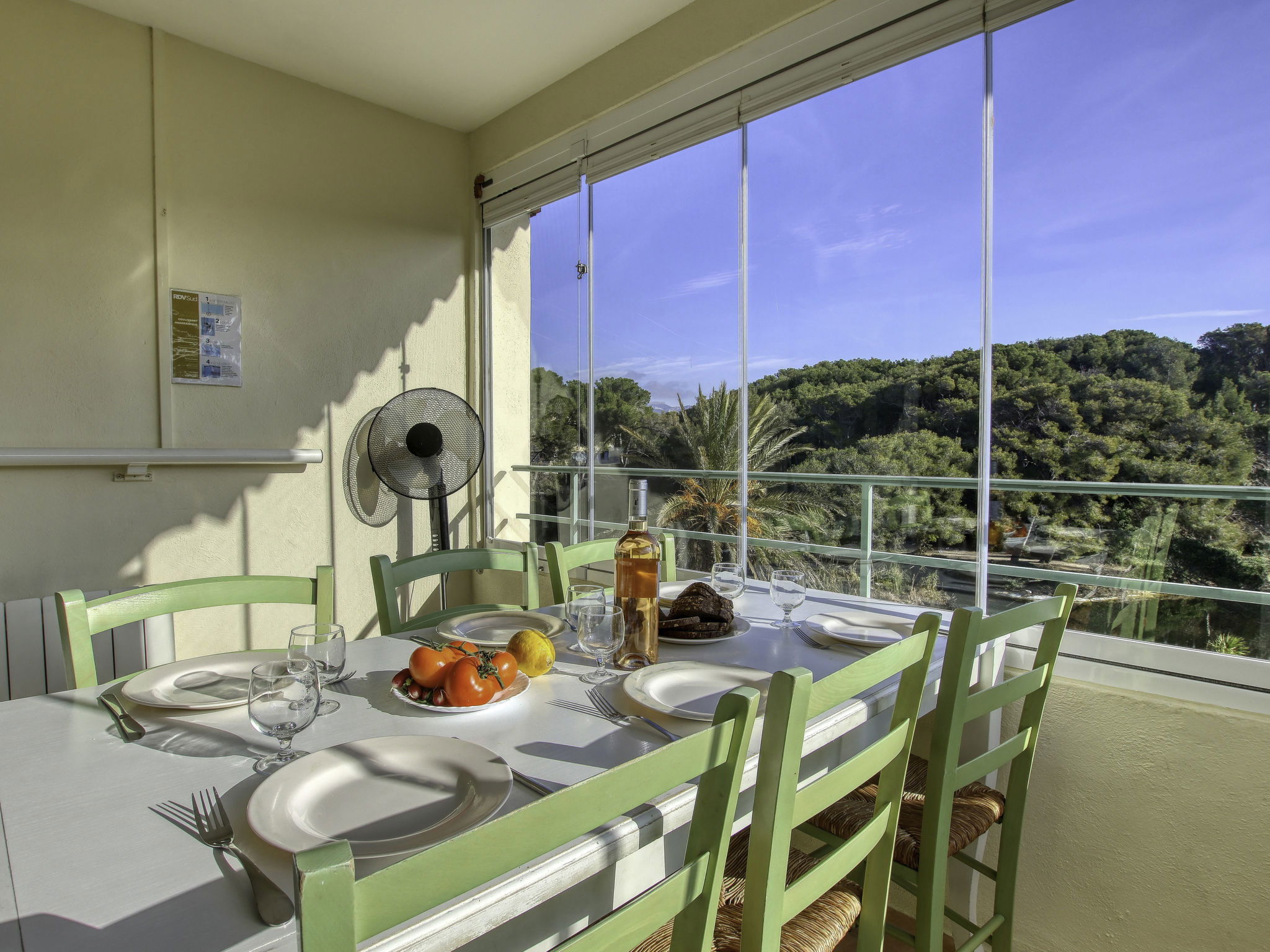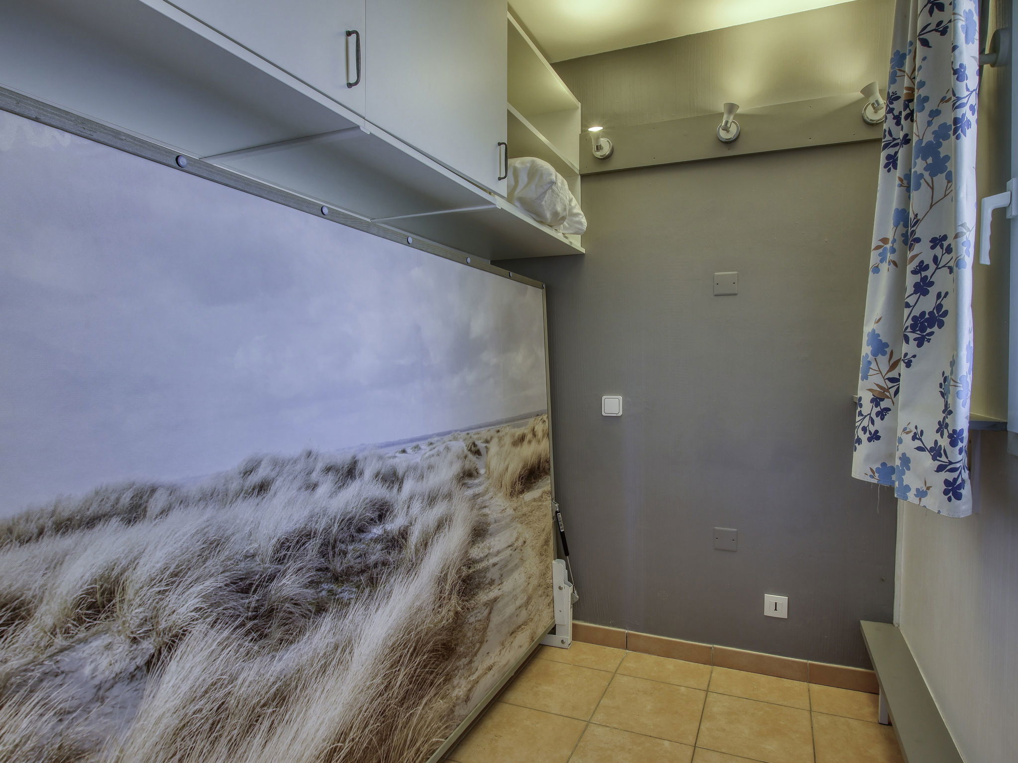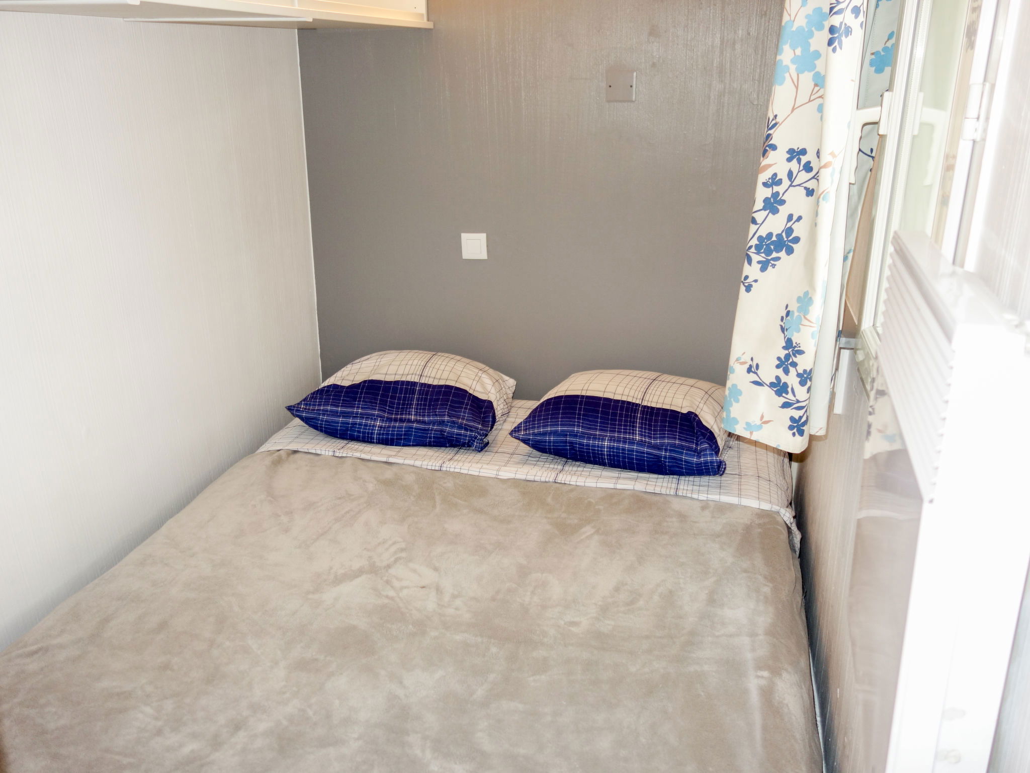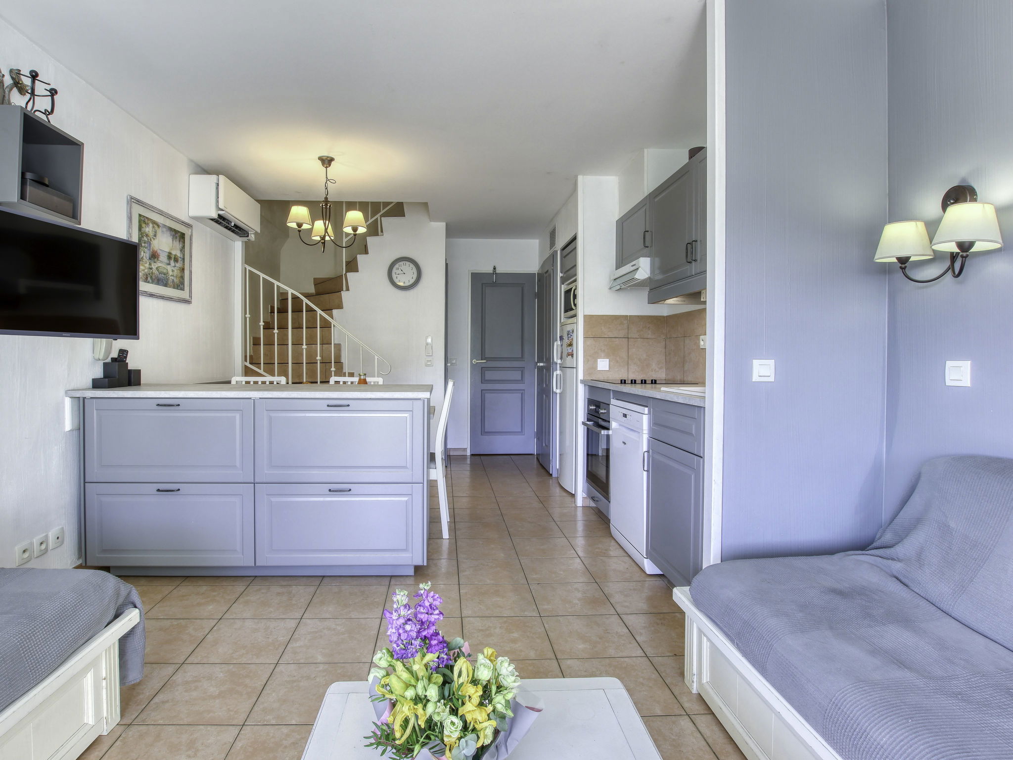 3-Zimmer-Maisonette-Wohnung 45 m2 im 3. Stock. Schön eingerichtet: Wohn-/Esszimmer mit 2 Betten (80 cm, Länge 190 cm), TV (Flachbildschirm), Klimaanlage. Ausgang zur Terrasse. Kabine 4 m2 mit 1 Doppelwandklappbett (140 cm, Länge 200 cm). Kochnische (Geschirrspüler, 4 Glaskeramikplatten, Mikrowelle, Tiefkühler, elektrische Kaffeemaschine). Dusche/WC. Obergeschoss: 1 Zimmer mit 1 franz. Bett (140 cm, Länge 190 cm), Klimaanlage. Ausgang zum Balkon. Bad/WC. E-Heizung. Balkon 7 m2, Terrasse 7 m2, überdacht, Ostlage. Terrassenmöbel. Schöne Sicht auf den See und den Garten. Zur Verfügung: Waschmaschine, Wäschetrockner. Internet (Wireless LAN, gratis). Parkplatz Nr. 486 - Niveau P1 (überdacht), Höhe 190 cm, Breite 240 cm. Bitte beachten: Maximal 1 Haustier/Hund erlaubt. TV nur FR. Rauchmelder. Die Terrasse hat die Form einer Loggia. Anstelle eines abgeschlossenen Schlafzimmers befinden sich manche Schlafplätze in einem offenen Bereich (Galerie, Nische etc.).