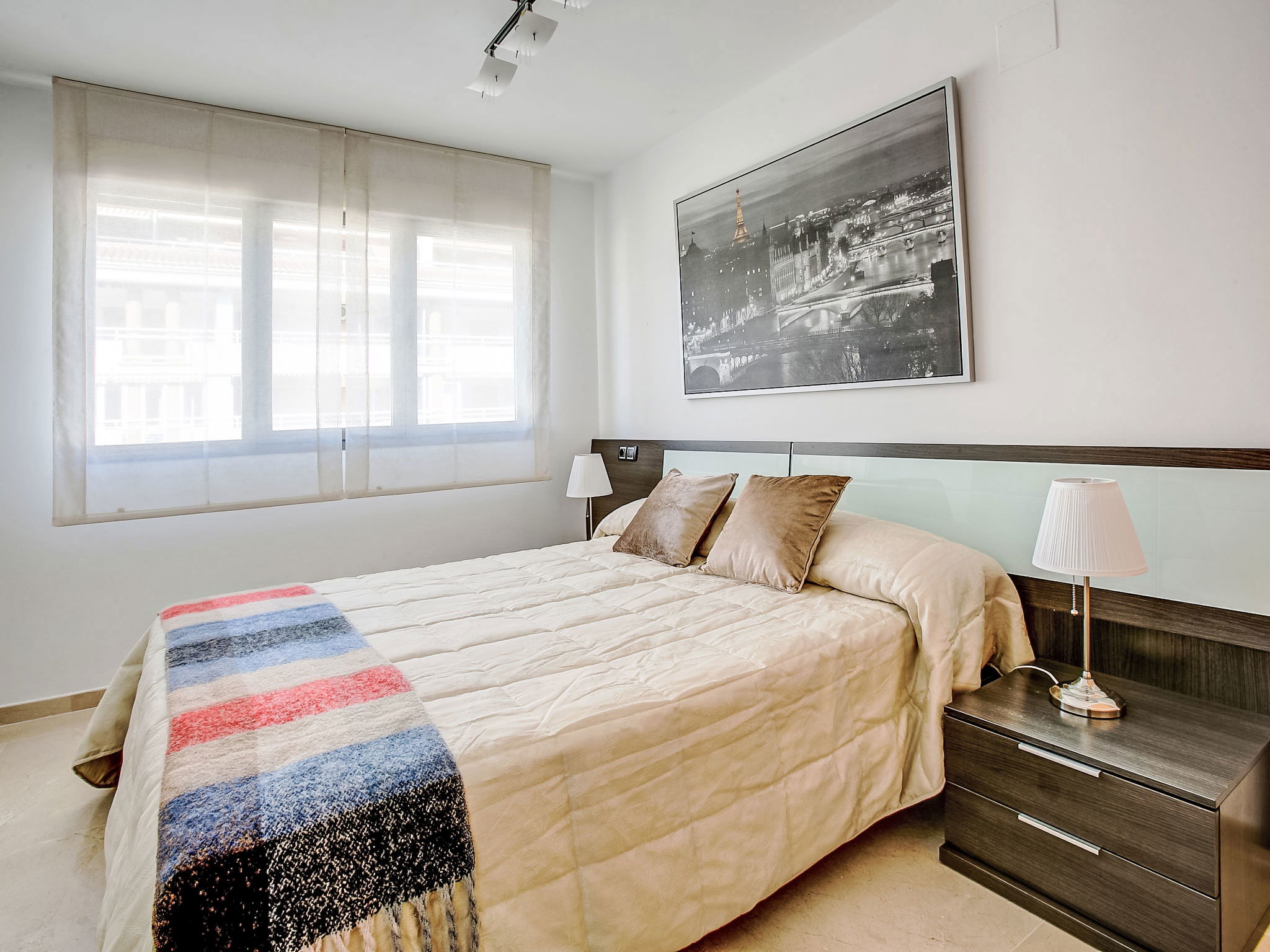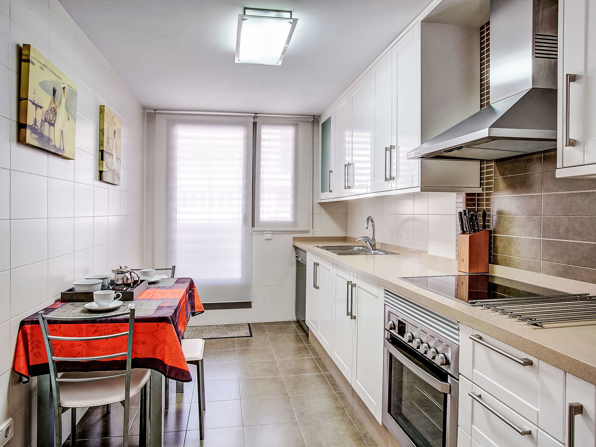 "Marina Raset", 3-Zimmer-Wohnung 89 m2 im 2. Stock, Westlage. Geräumig, sehr modern und geschmackvoll eingerichtet: Wohn-/Esszimmer mit Sat-TV, Digital-TV, Internationale TV-Sender, CD, Klimaanlage und Warmluftheizung. Ausgang zur Loggia. 1 Zimmer mit 1 franz. Bett (150 cm, Länge 190 cm), Dusche/Bidet/WC, TV, Sat-TV, Internationale TV-Sender, Klimaanlage und Warmluftheizung. 1 Zimmer mit 1 x 2 Etagenbetten (90 cm, Länge 190 cm), 1 Ausziehbett (1 Pers.), Klimaanlage und Warmluftheizung. Grosse Küche (Backofen, Geschirrspüler, 4 Glaskeramikplatten, Mikrowelle, Tiefkühler, elektrische Kaffeemaschine) mit Esstisch. Dusche/WC. Klimaanlage, Warmluftheizung. Balkon 13 m2, Westlage und Nordlage. Terrassenmöbel. Seitliche Sicht auf das Meer, die Berge und die Ortschaft. Zur Verfügung: Waschmaschine, Kinderhochstuhl, Babybett. Internet (WLAN, gratis). Garage Nr. PK 6. Bitte beachten: Nichtraucher-Haus. Maximal 1 Haustier/Hund erlaubt. AT-463142-A // Reg. Nr.: ESFCTU00000304500089177400000000000000000AT-463142-A6