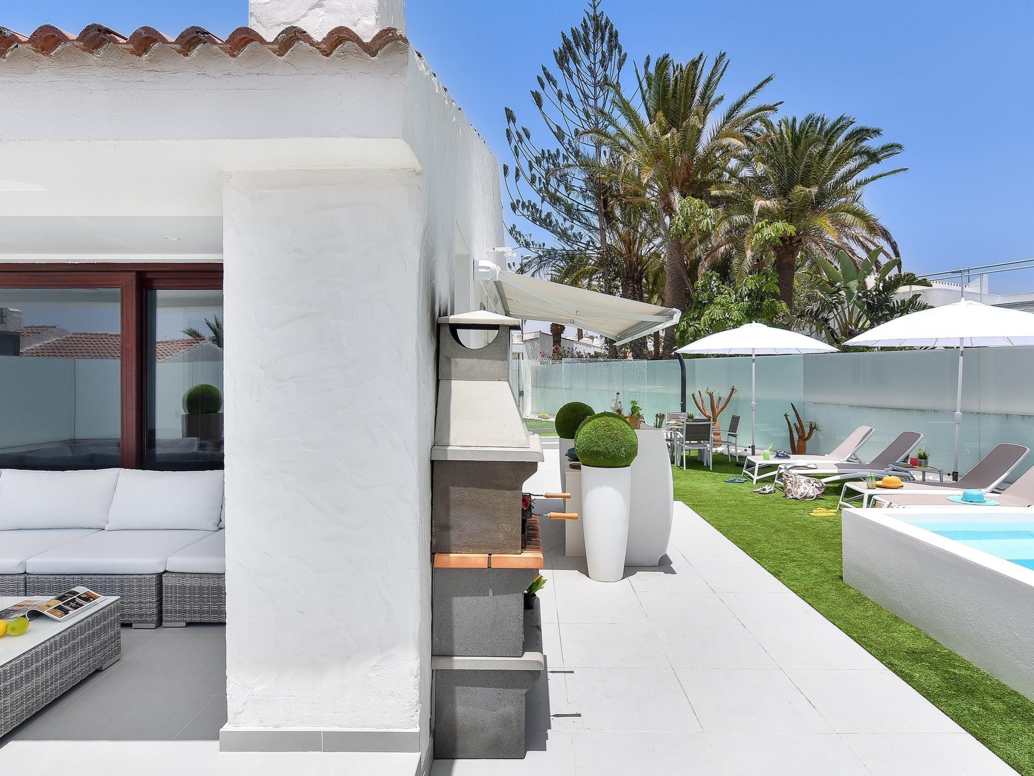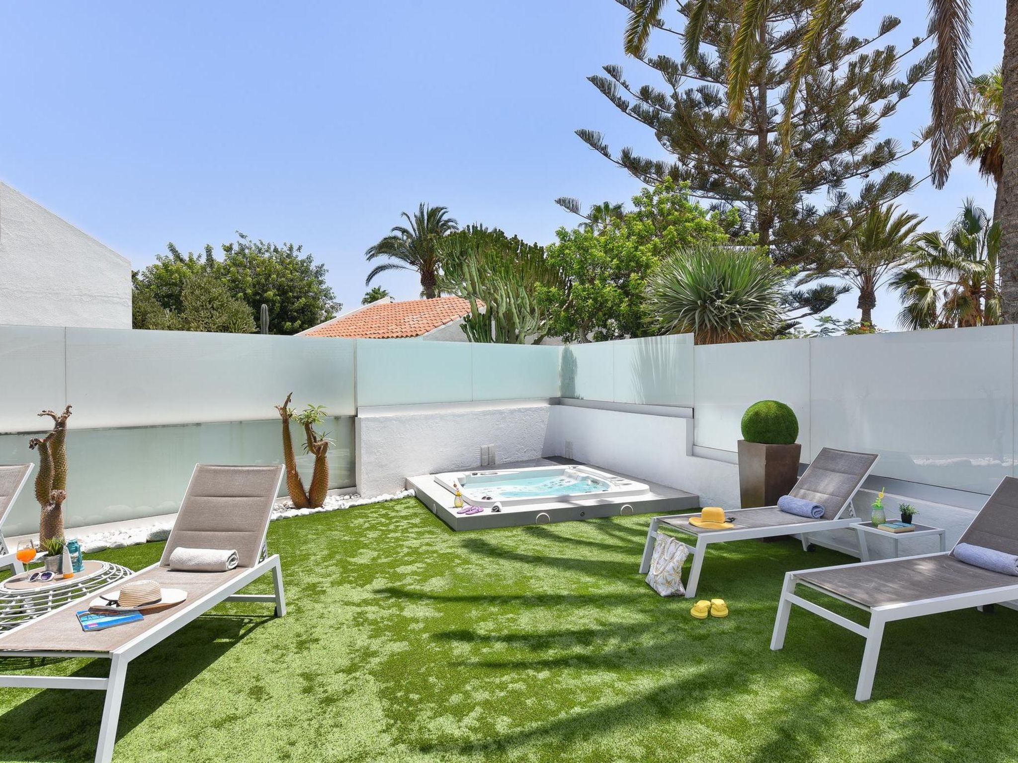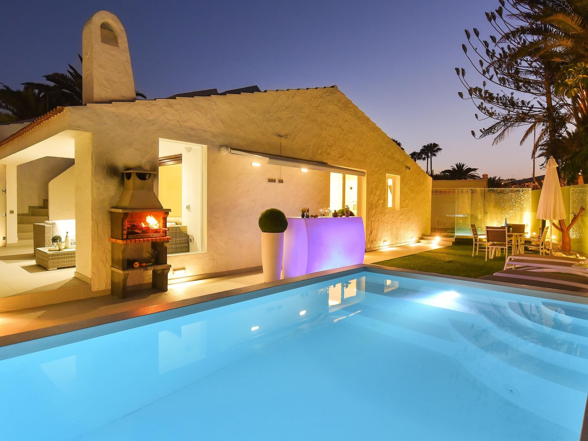 Moderner, komfortabler Bungalow "Villa Rina MC". Im Ortszentrum von Playa del Ingles, in einem Wohnquartier, direkt am Meer. Zur Alleinbenutzung: Schwimmbad (saisonale Verfügbarkeit: 01.Jan. - 31.Dez.). Im Hause: Wireless LAN, Solarium, Waschmaschine, Wäschetrockner. Bushaltestelle "Shopping Center Cita" 400 m. Bitte beachten: Fahrzeug empfohlen. Geeignet für Familien, geeignet für Senioren Babyausstattung auf Anfrage. Der Besitzer akzeptiert keine Jugendgruppen.