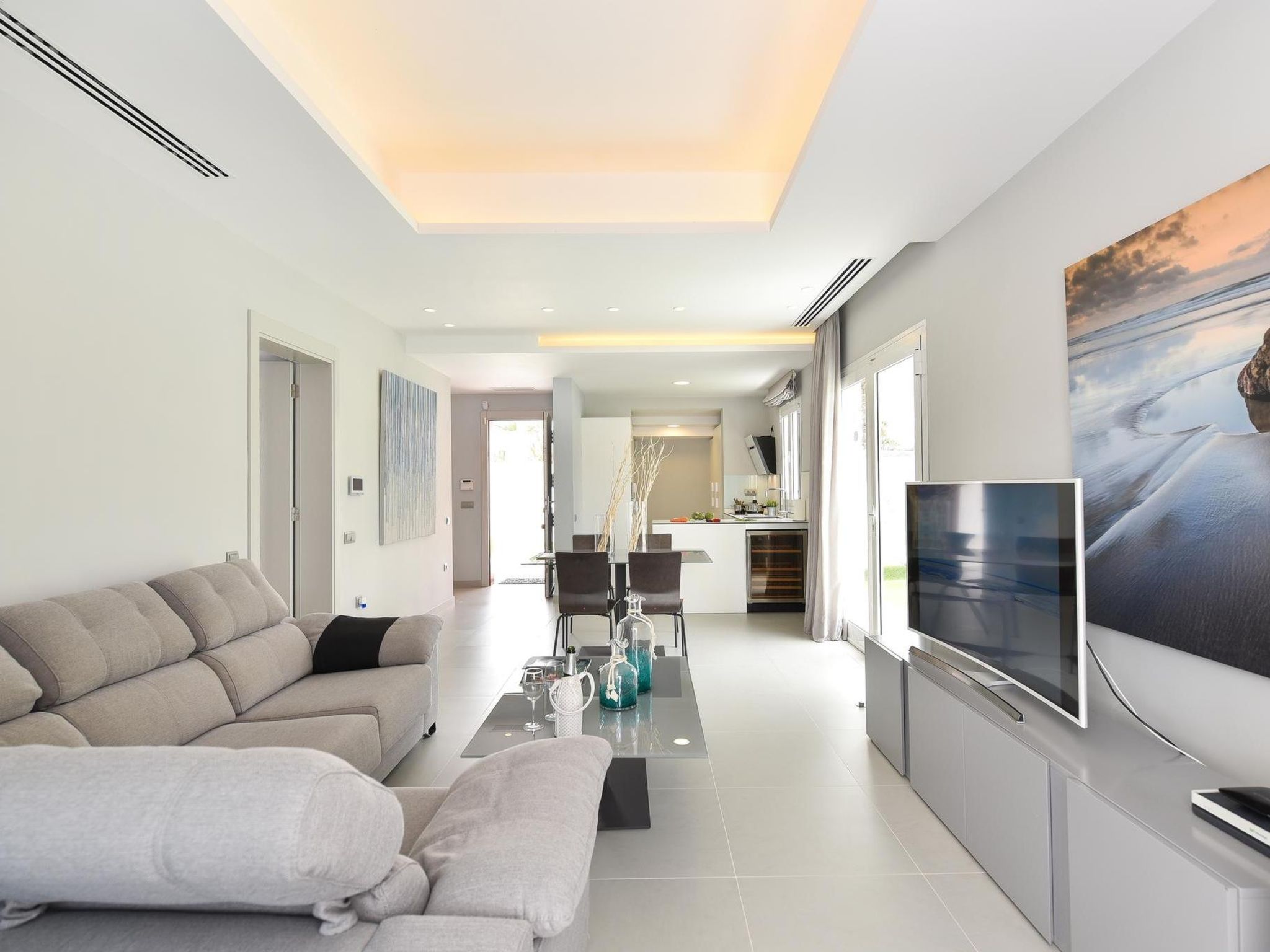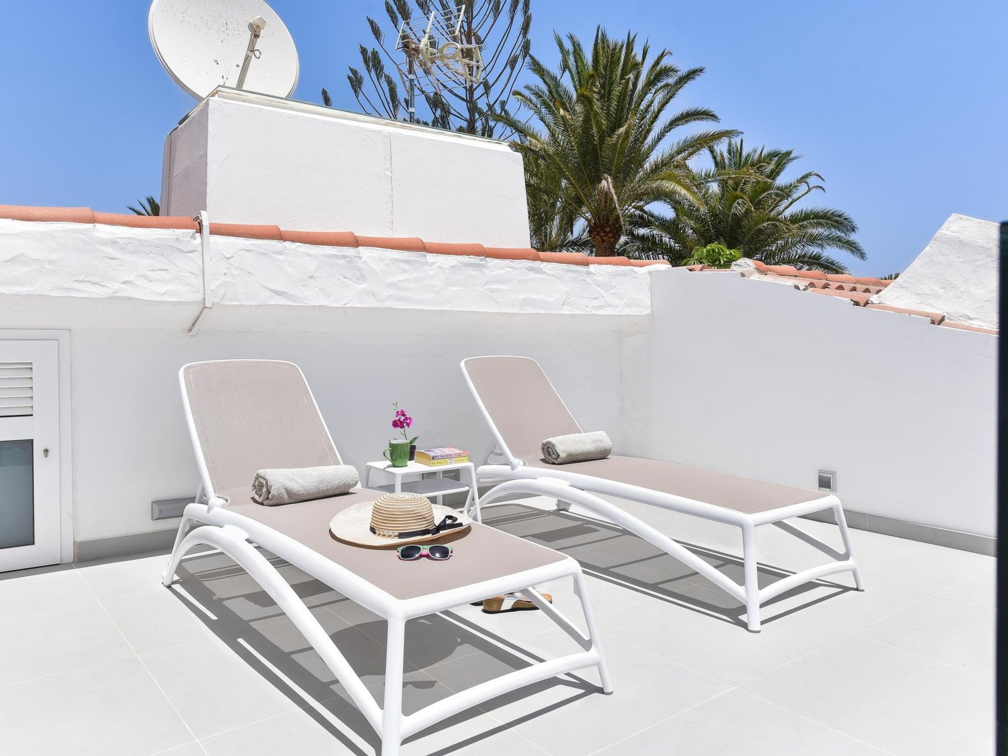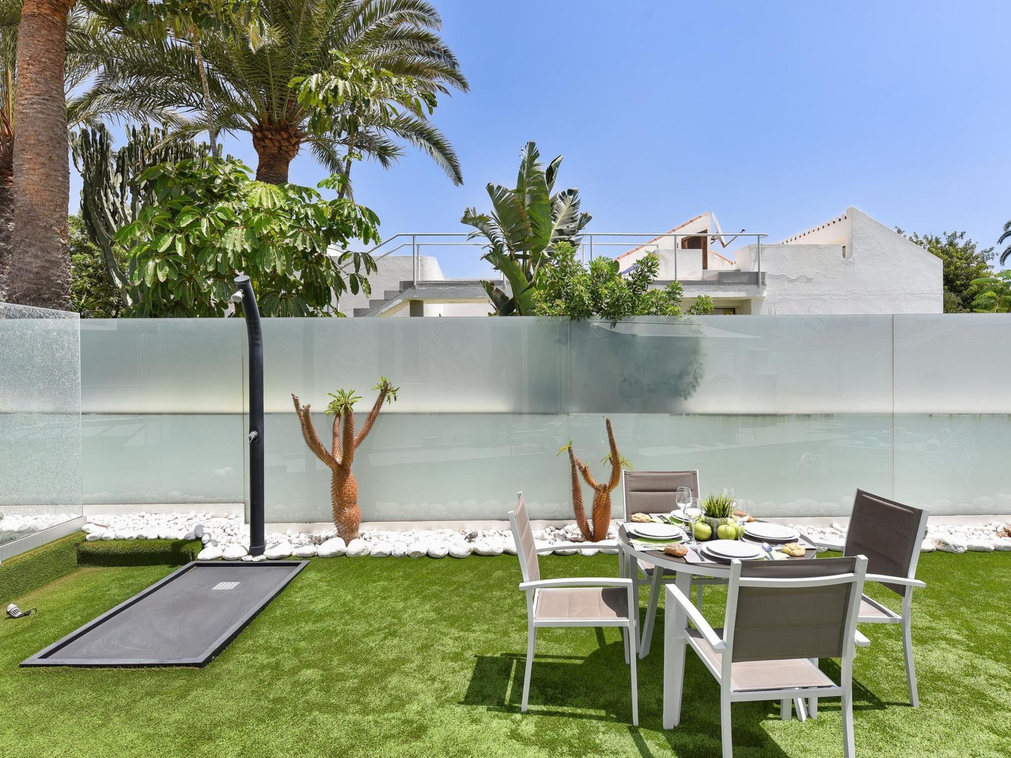 Moderner, komfortabler Bungalow "Villa Rina MC". Im Ortszentrum von Playa del Ingles, in einem Wohnquartier, direkt am Meer. Zur Alleinbenutzung: Schwimmbad (saisonale Verfügbarkeit: 01.Jan. - 31.Dez.). Im Hause: Wireless LAN, Solarium, Waschmaschine, Wäschetrockner. Bushaltestelle "Shopping Center Cita" 400 m. Bitte beachten: Fahrzeug empfohlen. Geeignet für Familien, geeignet für Senioren Babyausstattung auf Anfrage. Der Besitzer akzeptiert keine Jugendgruppen.