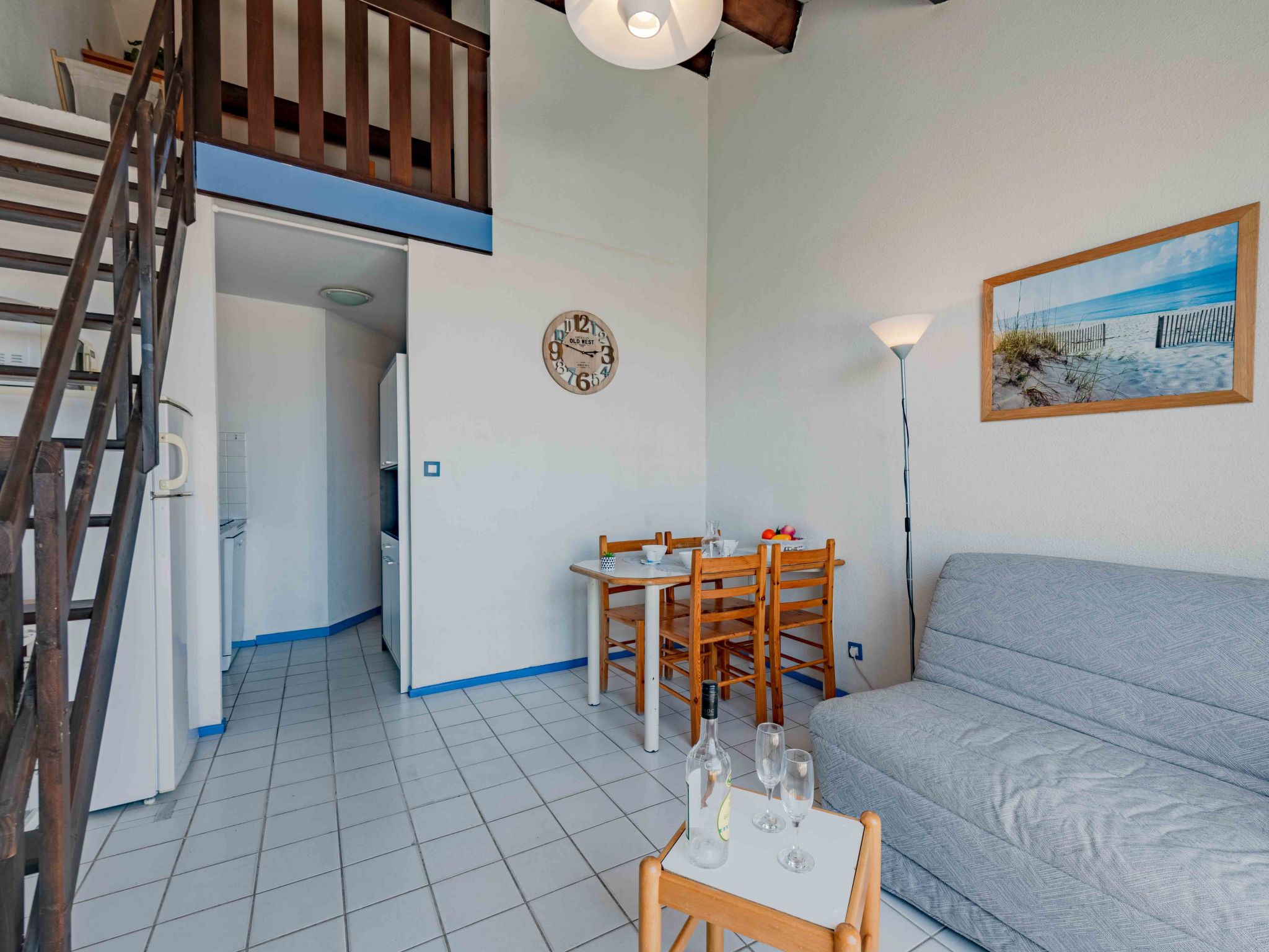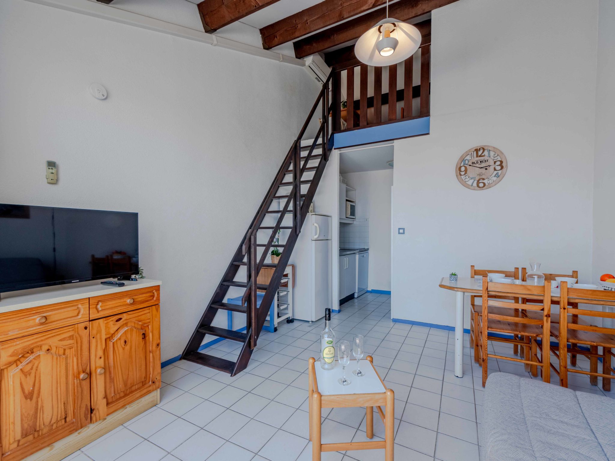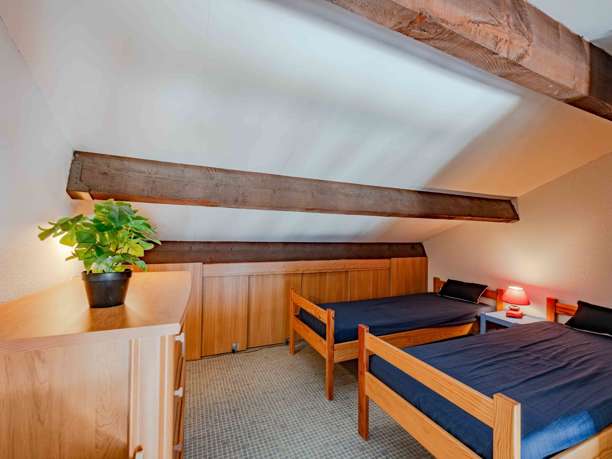2-Zimmer-Wohnung 40 m2, Nordostlage. Wohn-/Esszimmer mit 1 Doppeldiwanbett (1 x 140 cm, Länge 190 cm), TV (Flachbildschirm). Ausgang zur Terrasse. 1 Zimmer mit 1 franz. Bett (1 x 135 cm, Länge 190 cm). Kochnische (4 Kochplatten, Mini-Backofen, Geschirrspüler, Mikrowelle, Tiefkühler, elektrische Kaffeemaschine) mit Klimaanlage. Dusche/WC. Obergeschoss: (steile Treppe) Galerie mit 2 Betten (80 cm, Länge 190 cm). Terrasse 7 m2. Terrassenmöbel, Gartengrill. Schöne Sicht auf den Kanal. Zur Verfügung: Internet (WLAN, extra). Bitte beachten: Maximal 1 Haustier/Hund erlaubt. Rauchmelder. Inserat einer Privatperson nach Artikel 155, IV, CGI.