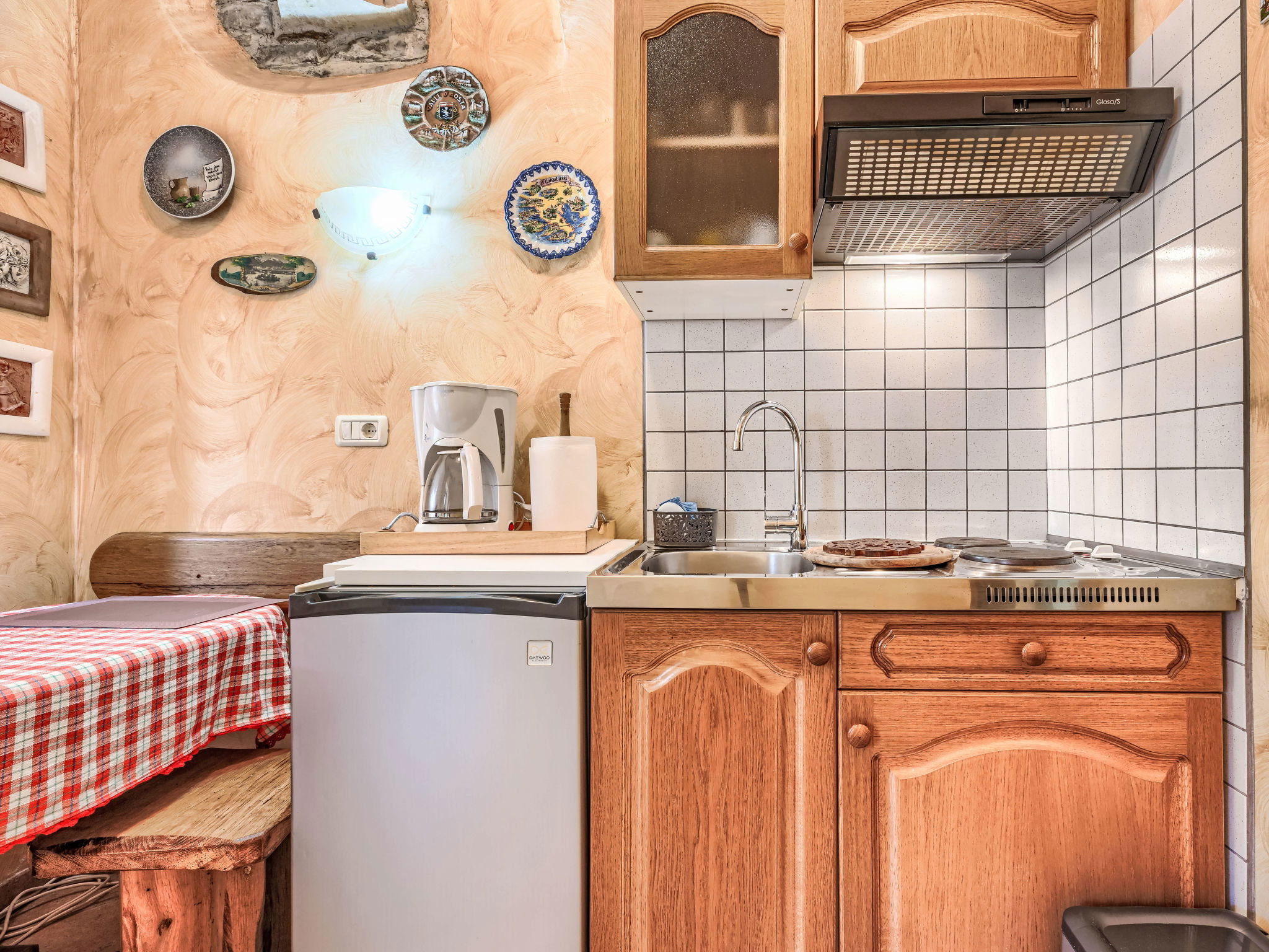 2-Zimmer-Wohnung 55 m2, im Erdgeschoss. Rustikal eingerichtet: Wohn-/Esszimmer mit offenem Kamin (nur Deko), Sat-TV und Klimaanlage. Ausgang zum Garten. 1 Zimmer mit 2 Betten (90 cm, Länge 200 cm), Sat-TV. Kleine, offene Küche (2 Kochplatten). Bad/Bidet/WC. Keine Heizmöglichkeit. Zur Verfügung: Waschmaschine, Haartrockner. Internet (WLAN, gratis). Maximal 1 Haustier/Hund erlaubt.