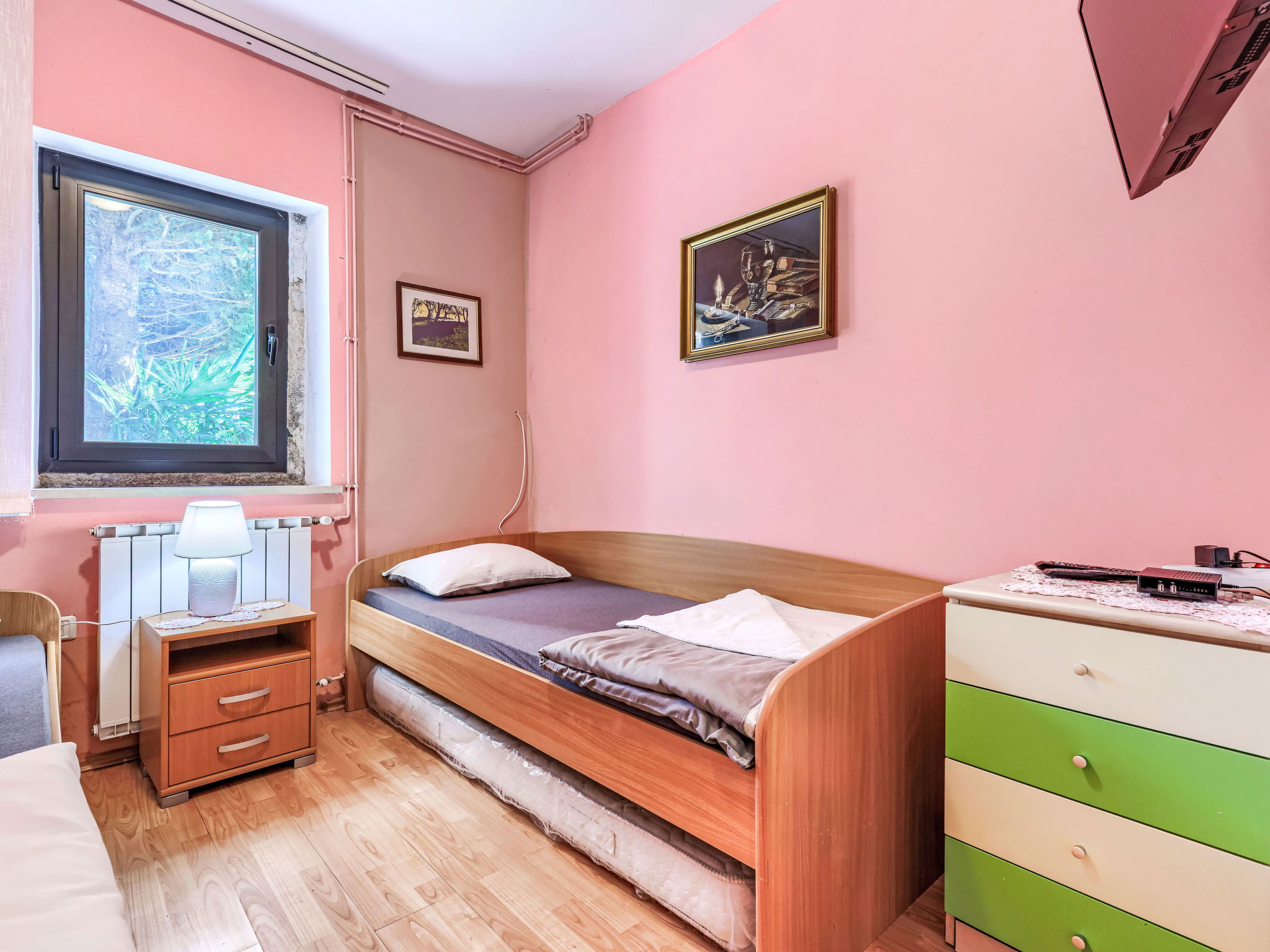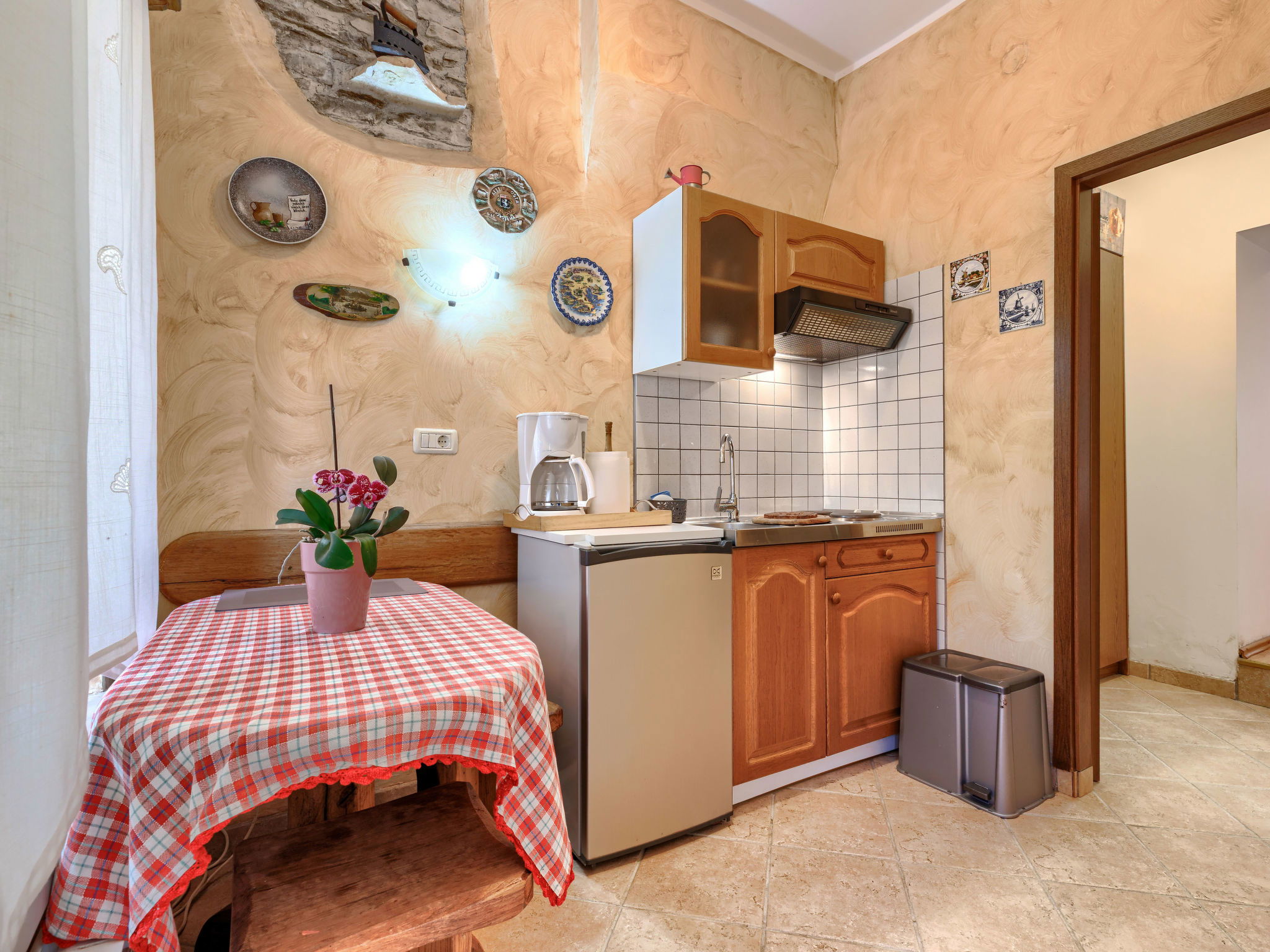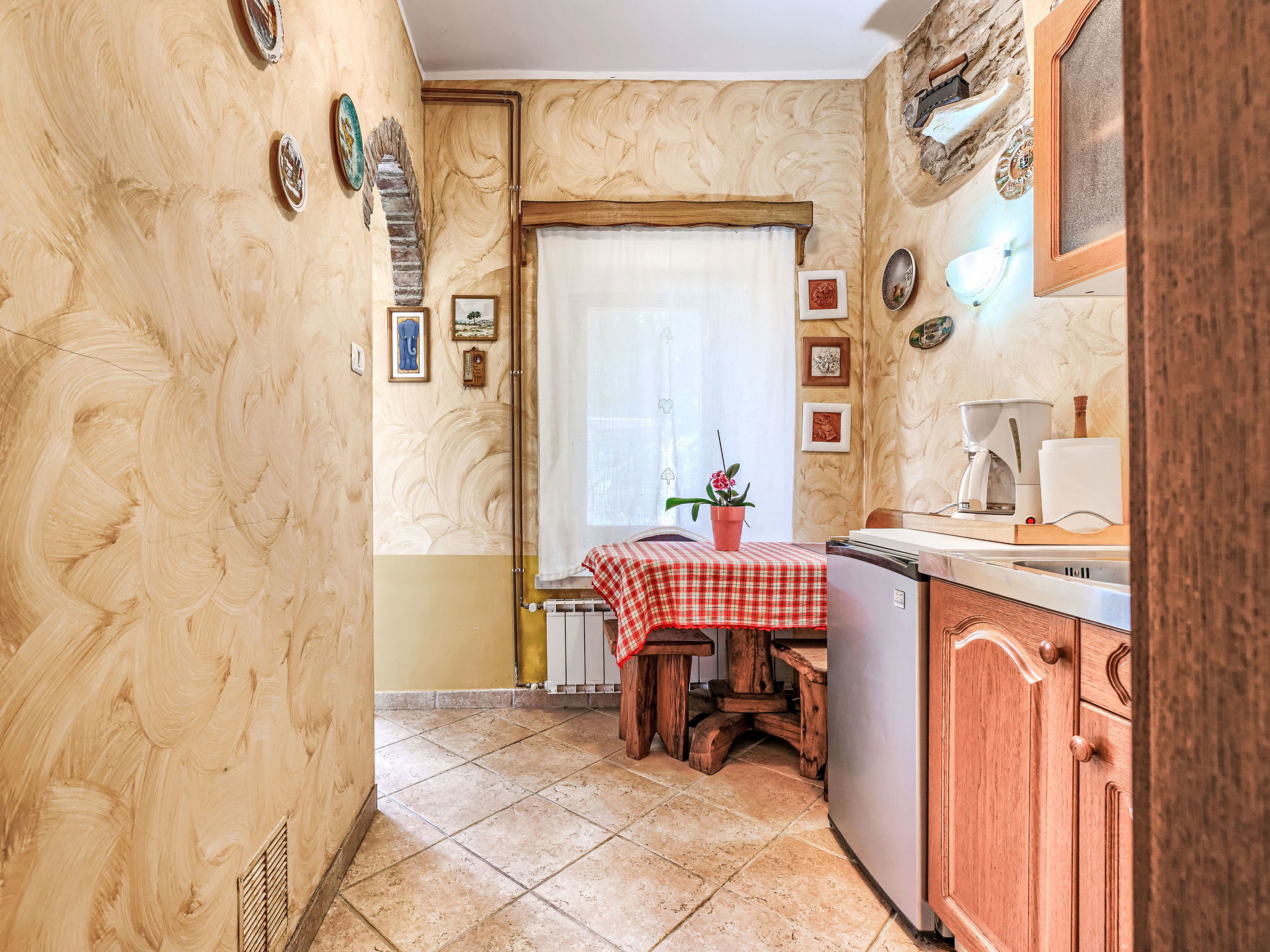 Plovanija 6 km von Buje: Zweifamilienhaus "Lorena". Im Weiler Kaštel, 2 km vom Zentrum von Plovanija, 4 km vom Zentrum von Buje, 10 km vom Zentrum von Portorož, 8 km vom Meer, an einer Hauptstrasse. Zur Mitbenutzung: Grundstück 500 m2 (eingezäunt), Garten mit Bäumen. Terrasse (30 m2), Gartenmöbel, Grill. Im Hause: Internetzugang. Parkplatz beim Haus. Einkaufsgeschäft 2 km, Supermarkt 3.5 km, Restaurant 100 m, Bushaltestelle 5 km, Bahnstation 22 km, Kieselstrand 9 km, Felsstrand 9 km, Thermalbad 12 km. Golfplatz (18 Loch) 13 km, Wanderwege ab Haus 100 m, Radweg 150 m. Nahe gelegene Sehenswürdigkeiten: Sečovlje Nature Park 10 km, Aquapark 14 km, Parenzana Trail 2 km.