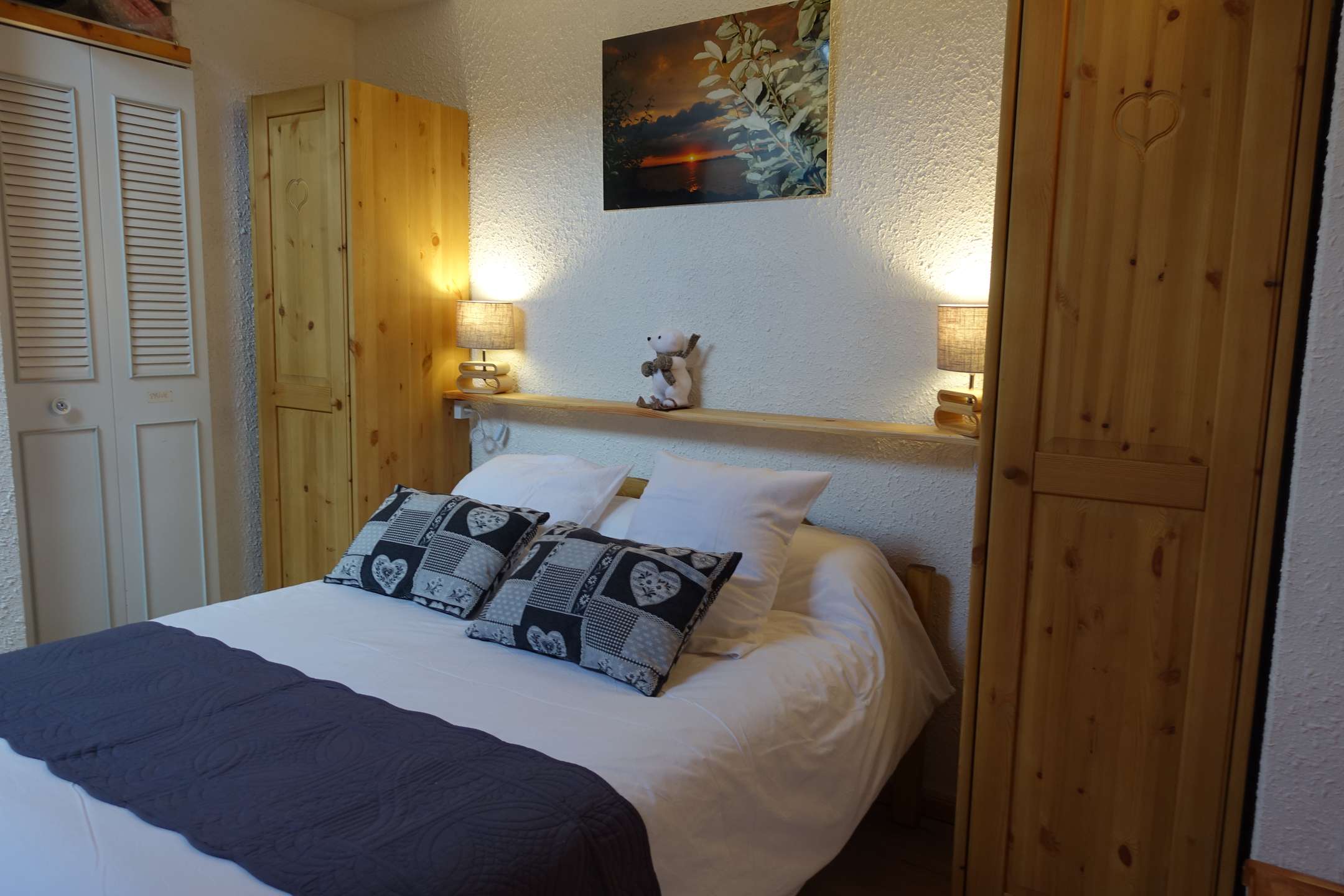 Ideal für Familien, sehr schönes 2-Sterne-Maisonette für 6 Personen. Blick auf die Gipfel und Almen. Aufzugsebene 4 – maximal 8 Personen (6 + 2 Babys oder Kleinkinder) 40 m² – privater Swimmingpool im Sommer* – HELL – Wohnzimmer mit sehr gut ausgestatteter US-Küche: Geschirrspüler – Waschmaschine – Backofen und Mikrowelle – WC – Badezimmer. Obergeschoss: 2 Schlafzimmer, davon 1 groß mit 2 Etagenbetten 90 x 190 + 1 Bett 140 x 190 – 1 Schlafzimmer mit 140 x 190 Betten (Velux) – 140 x 190 Schlafsofa im Wohnzimmer – Große Loggia nach Westen – Skiraum – Parkplatz der Residenz. Residenz mit 70 Wohnungen. Kleine Haustiere erlaubt.