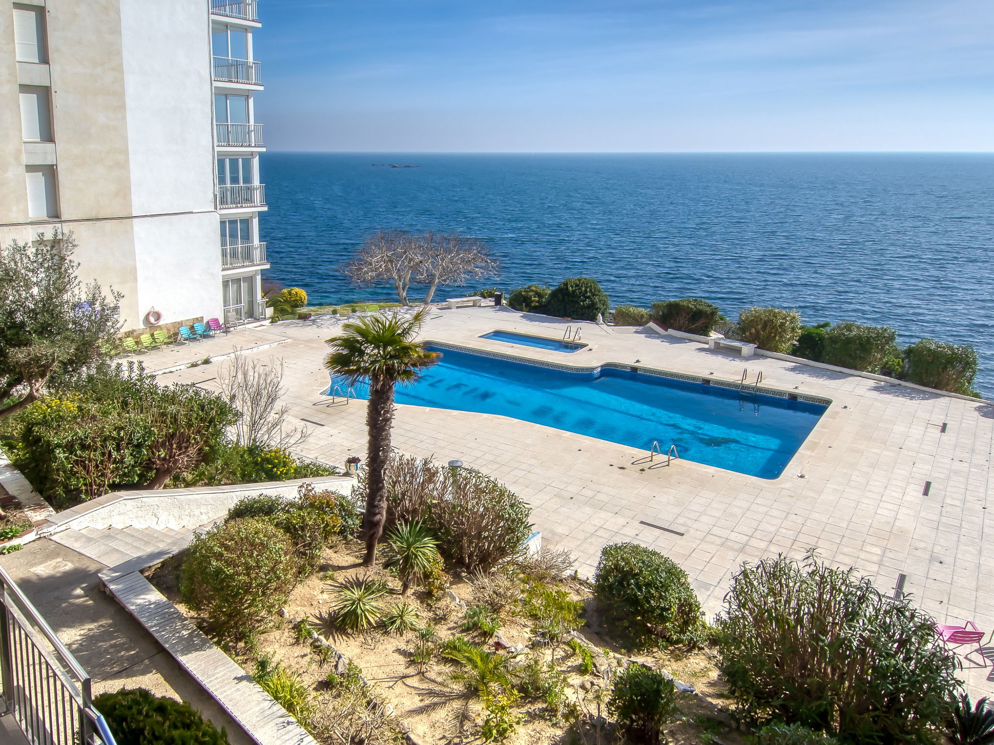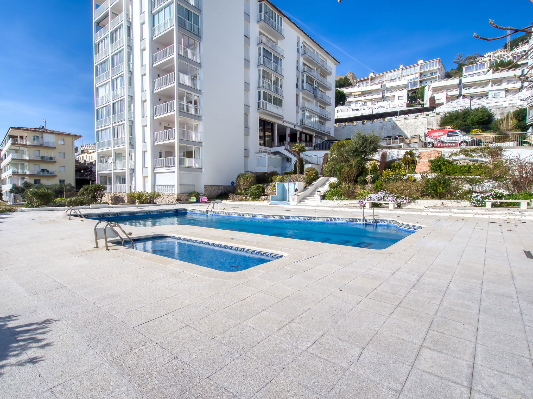 CANYELLES PETITES 2 km von ROSES: Gemütliches Appartementhaus "Blaumar". Im Ortsteil Canyelles Petites, 1.5 km vom Zentrum von Roses, ruhige, sonnige Lage, 30 m vom Meer. Zur Mitbenutzung: Schwimmbad (10 x 12 m, 60 - 220 cm tief, saisonale Verfügbarkeit: 01.Jun. - 30.Sep.). Im Hause: Fahrstuhl. Einkaufsgeschäft, Supermarkt 600 m, Restaurant, Bar 400 m, Bushaltestelle "Roses" 3 km, Bahnstation "Figueres" 25 km, Sandstrand "Canyelles Petites", Badebucht 200 m. Sporthafen, Jacht-Hafen 900 m, Golfplatz (18 Loch) 15 km, Surfschule 1.5 km, Segelschule 1.5 km, Minigolf 2 km, Wanderwege ab Haus, Radweg 30 m. Nahe gelegene Sehenswürdigkeiten: Parque Acuático Roses 6 km, Monasterio Sant Pere de Rodes 23 km, Castillo de Peralada 24 km, Museo Dalí Figueres 24 km, Centro paracaidismo Skydive 11 km, Cadaqués 15 km. Bitte beachten: Fahrzeug empfohlen. Jugendgruppen nur auf Anfrage. Die Schlüsselübergabe findet bei der Agentur in Roses statt.