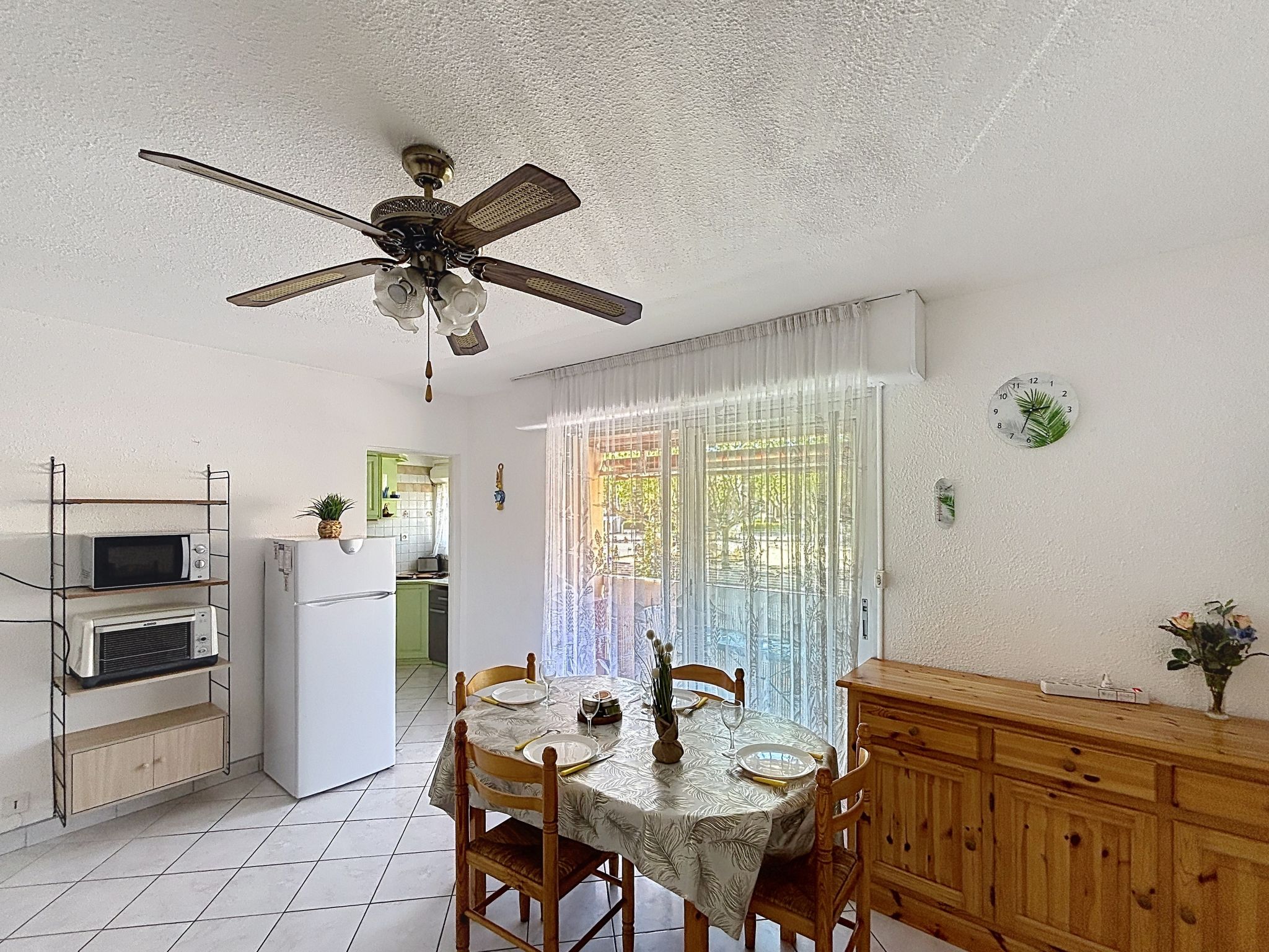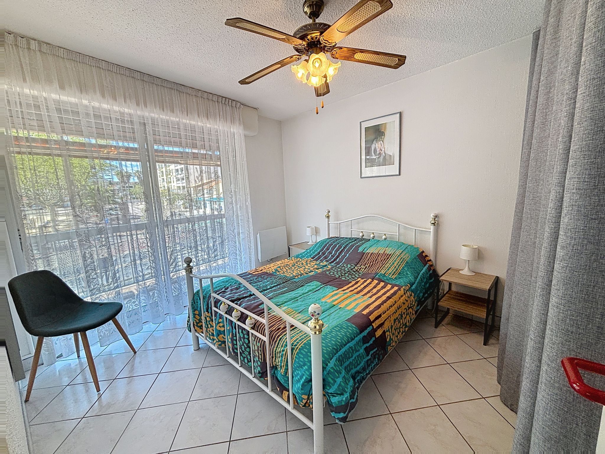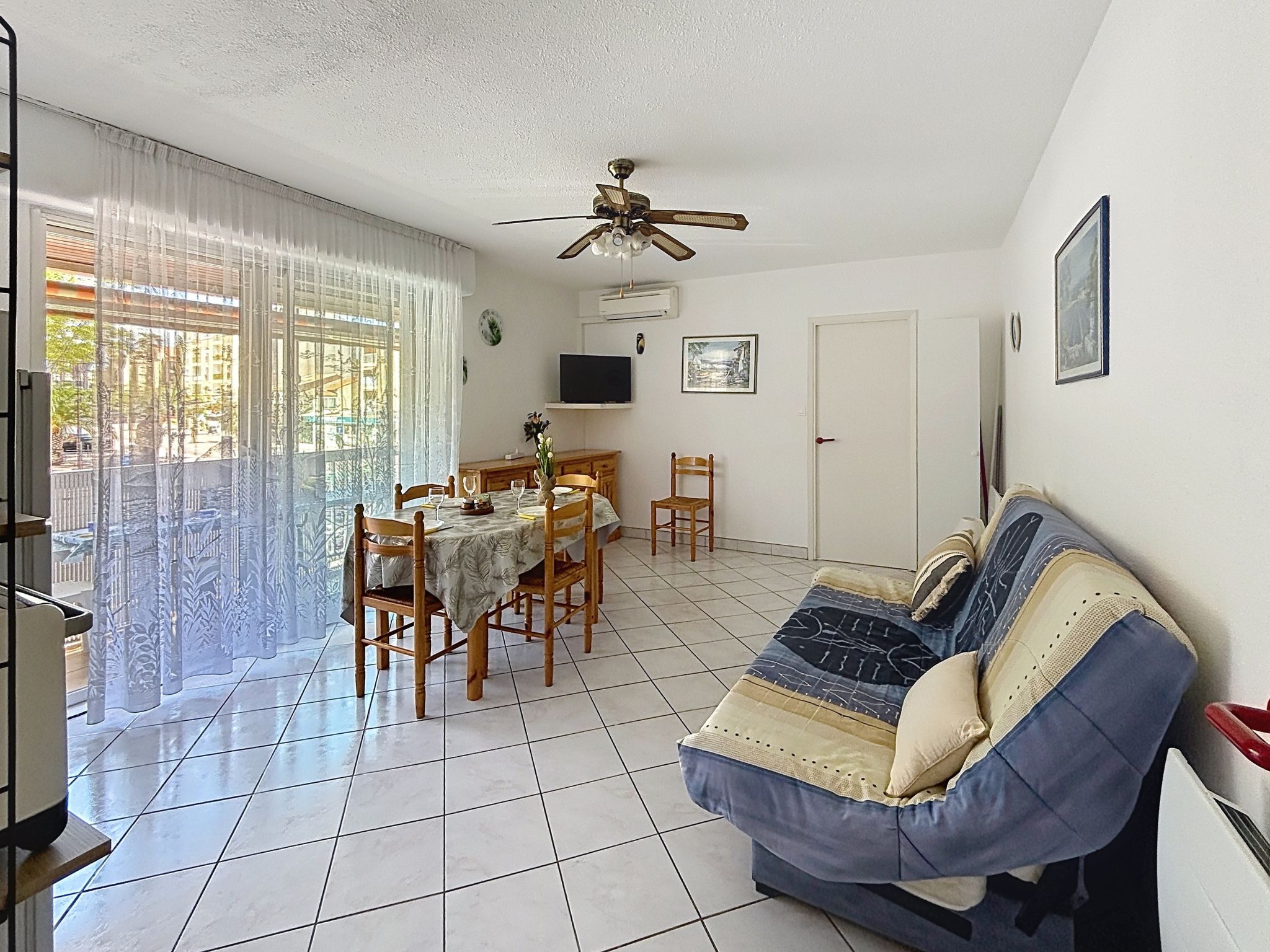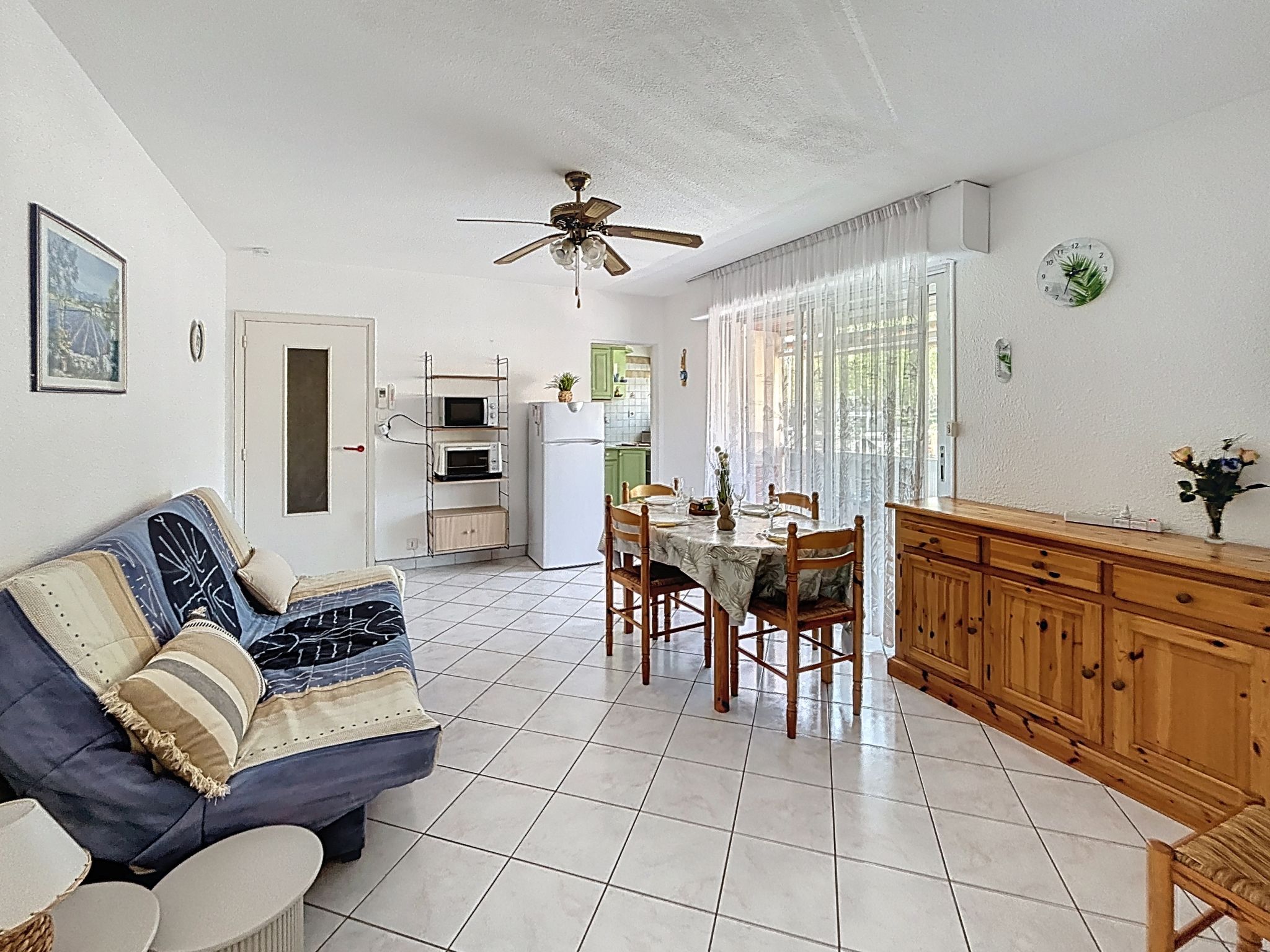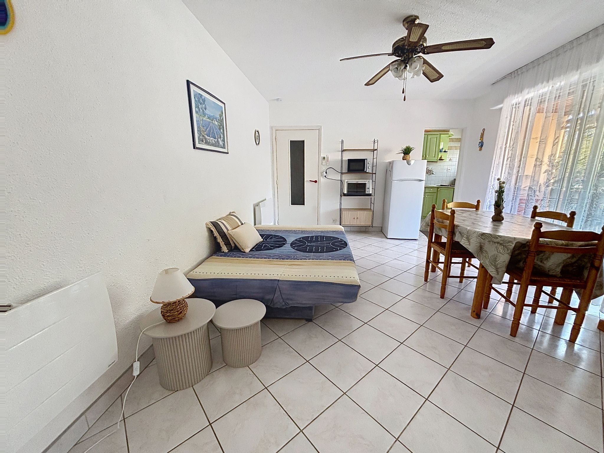 2-Zimmer-Wohnung 40 m2 im 1. Stock, Westlage. Hell, komfortabel eingerichtet: Wohn-/Esszimmer mit 1 Doppeldiwanbett (1 x 140 cm, Länge 190 cm), TV, Klimaanlage und elektrischem Rollladen. Ausgang zum Balkon. 1 Zimmer mit 1 franz. Bett (1 x 140 cm, Länge 190 cm), elektrischem Rollladen. Ausgang zum Balkon. Küche (4 Kochplatten, Mini-Backofen, Toaster, Wasserkocher, Mikrowelle, Tiefkühler, elektrische Kaffeemaschine). Dusche, sep. WC. E-Heizung. Balkon 10 m2, Westlage. Balkonmöbel. Sicht auf die Ortschaft. Zur Verfügung: Waschmaschine, Bügeleisen, Babybett bis 2 Jahre, Haartrockner. Internet (WLAN, extra). Parkplatz. Bitte beachten: Wohnung auf Strassenseite. Maximal 1 kleines Haustier/Hund erlaubt. TV nur FR. Rauchmelder. Inserat einer Privatperson nach Artikel 155, IV, CGI.