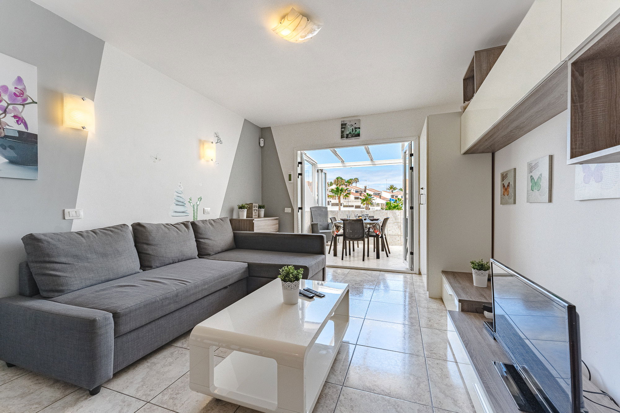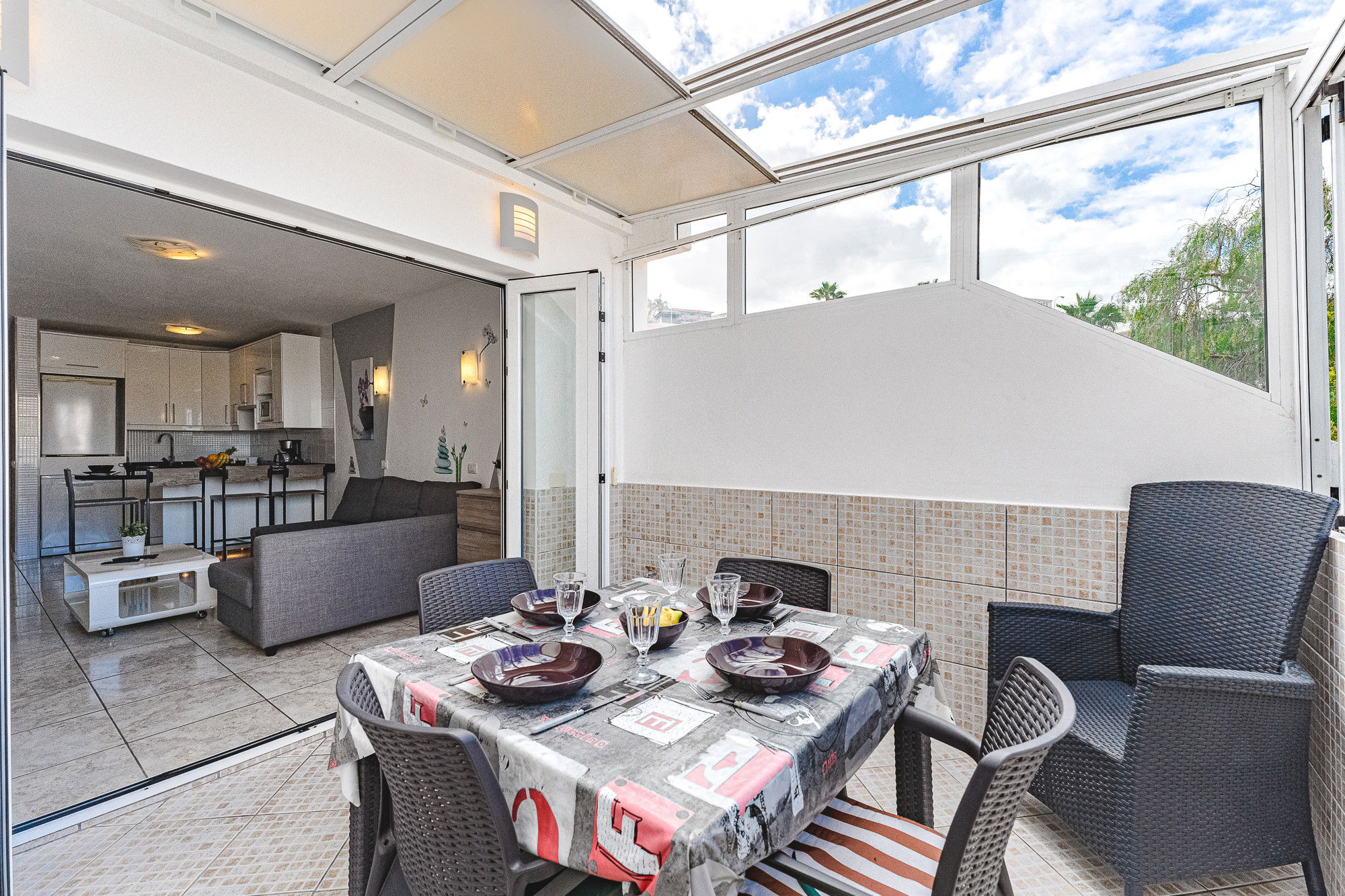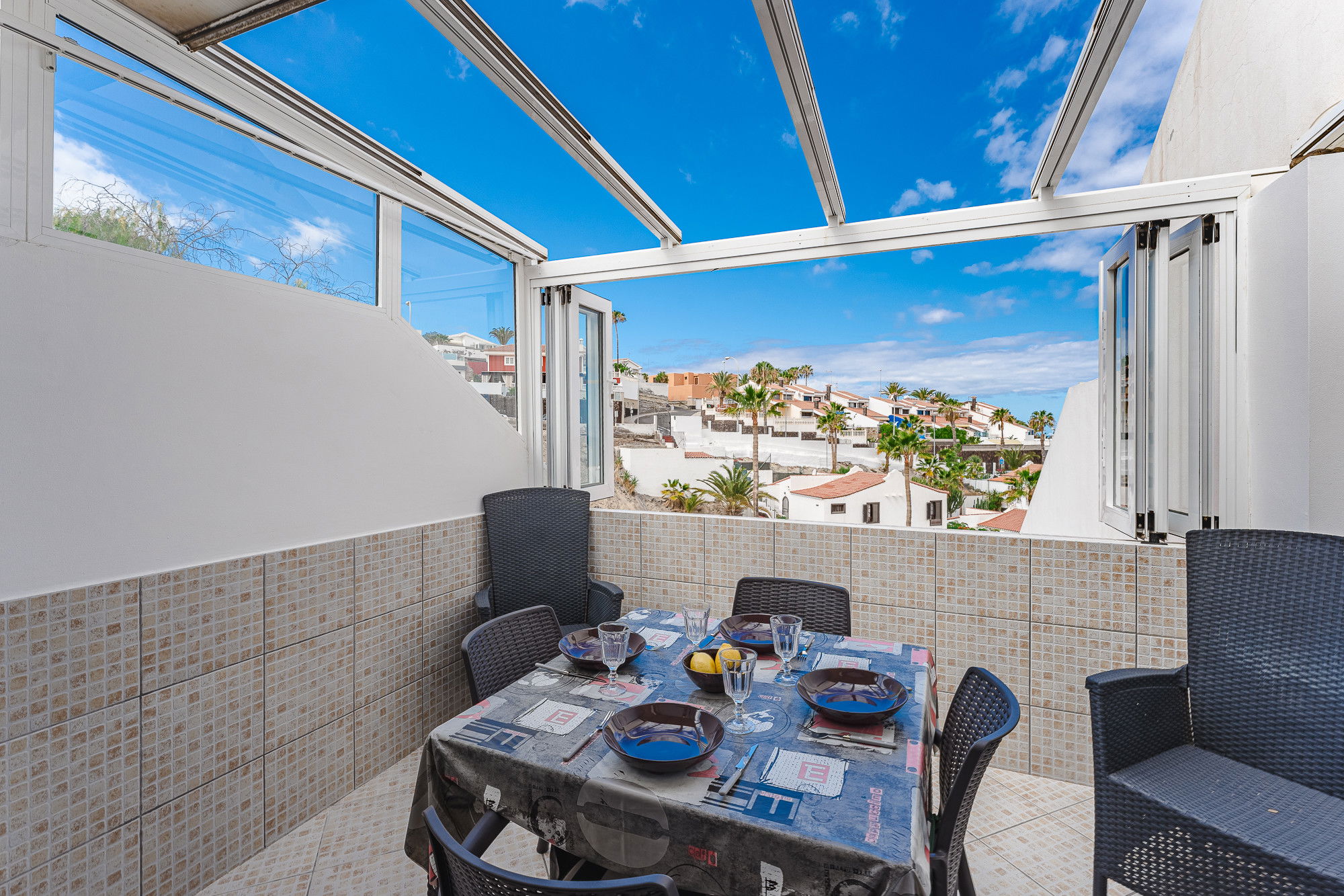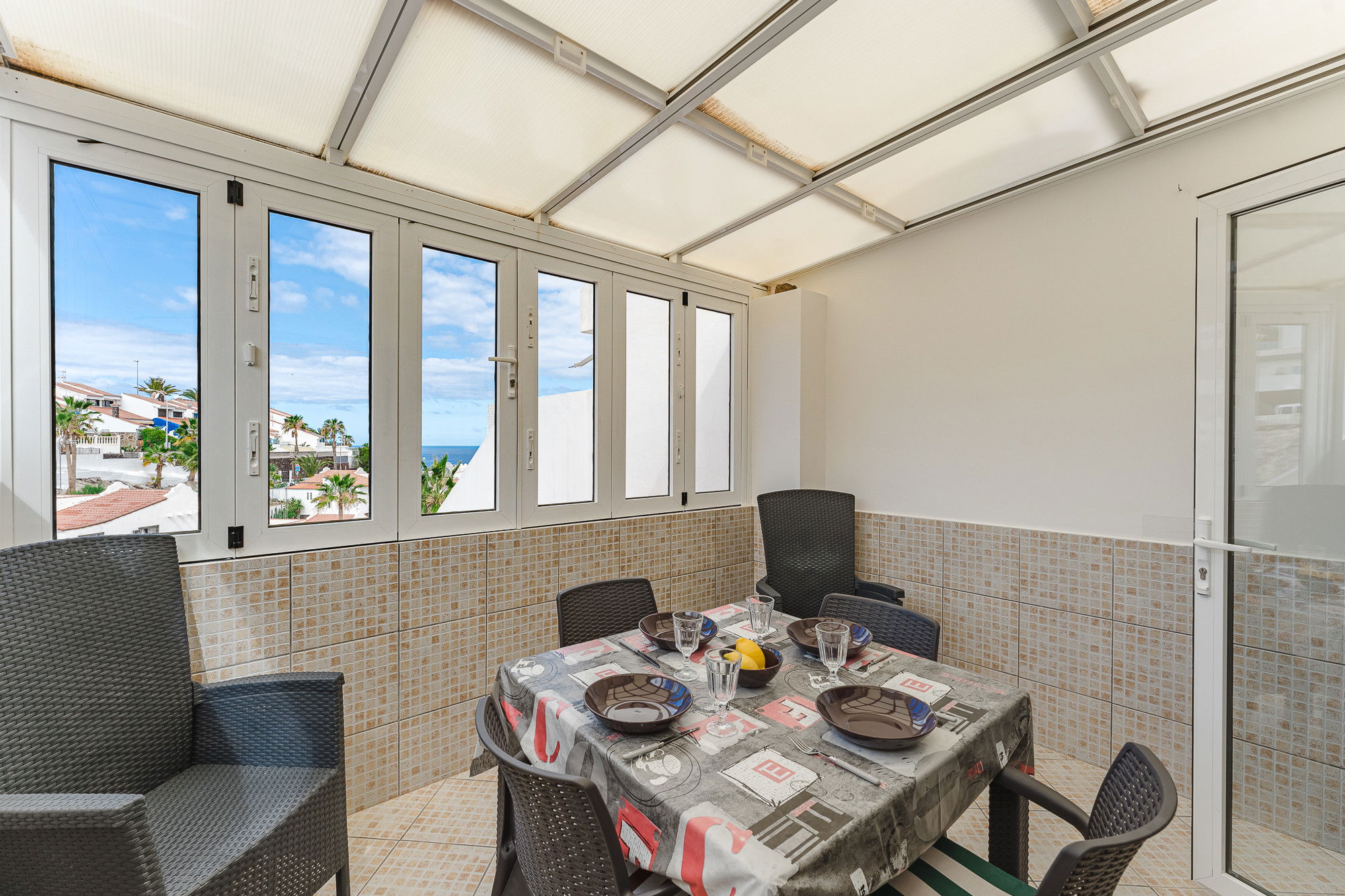 Diese Ferienwohnung verfügt über ein Wohnzimmer mit einer Schlafcouch und einer voll ausgestatteten Küche mit Geschirrspüler, ein Badezimmer und ein Schlafzimmer mit einem Doppelbett, sowie einen Wintergarten, den man mit zur Terrasse umfunktionieren kann und mit seitlichen Meerblick. Eine Waschmaschine ist natürlich auch vorhanden. Bettwäsche und Handtücher werden bereit gestellt. Der neu gebaute und beheizte Pool lädt zum Sonnenbaden und zum Erfrischen ein. Die schönsten Strände Teneriffas sind füssläufig in ca. 15 Minuten und nur ca. 3 Minuten mit dem Auto erreichbar.