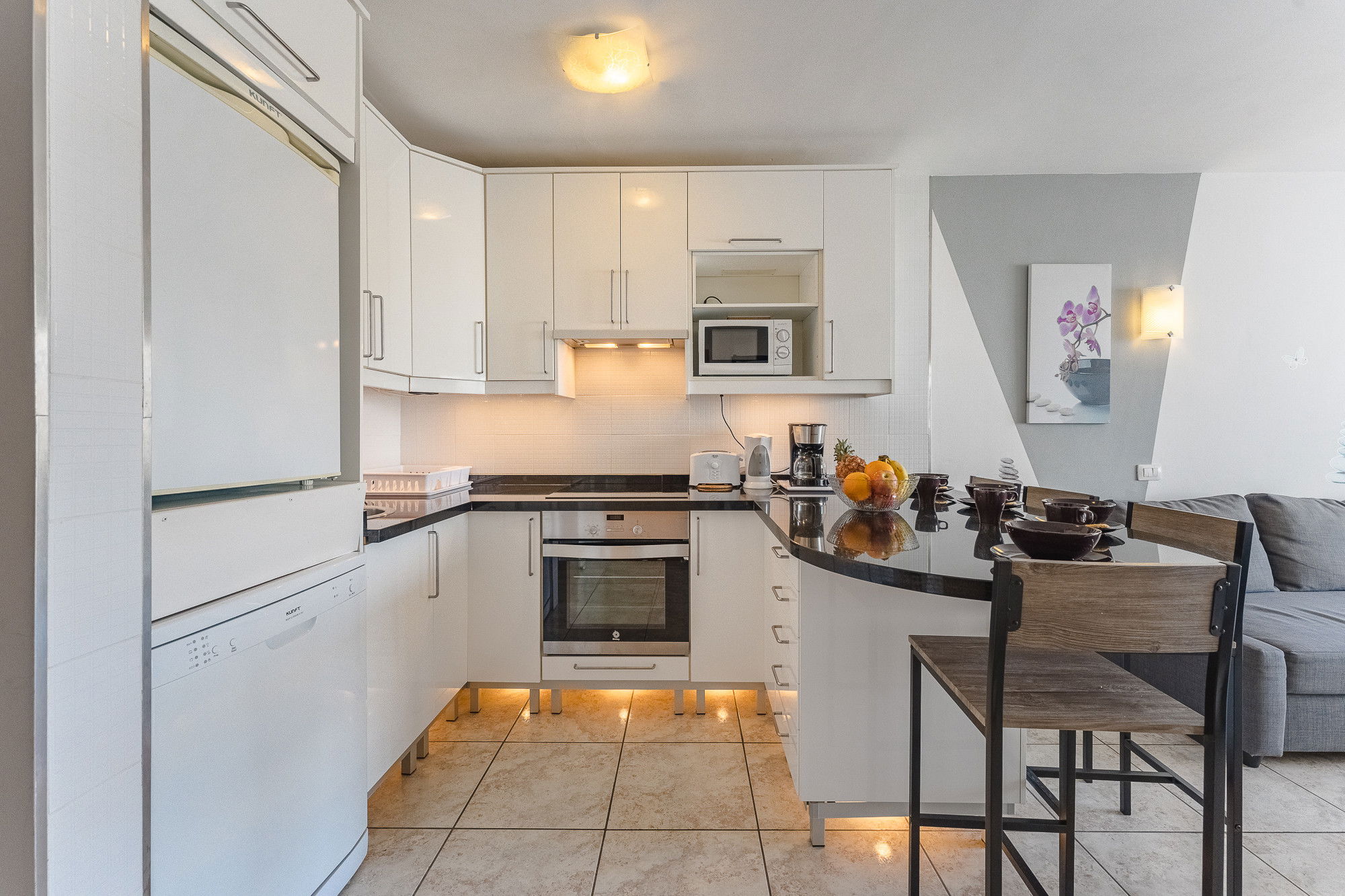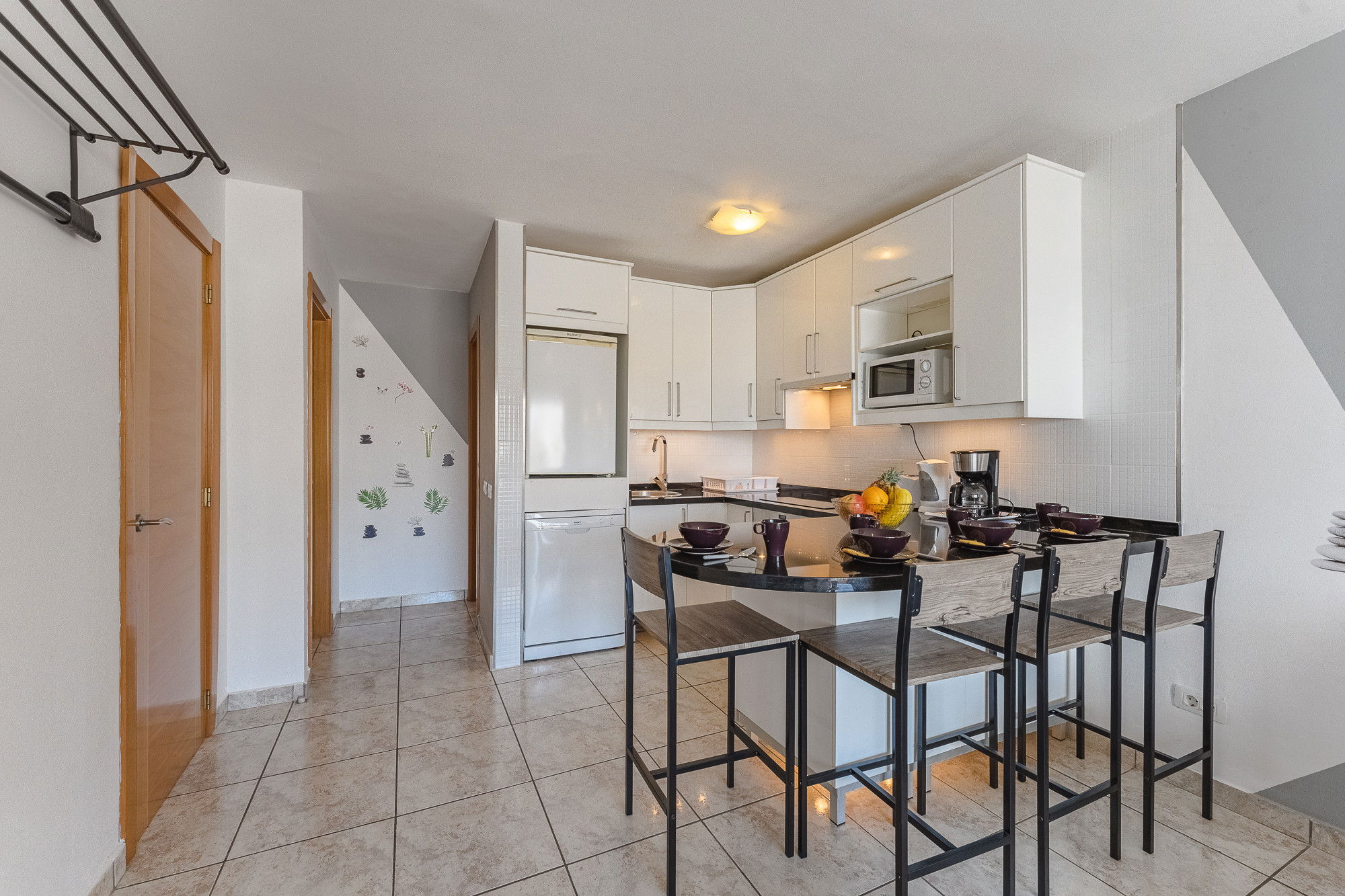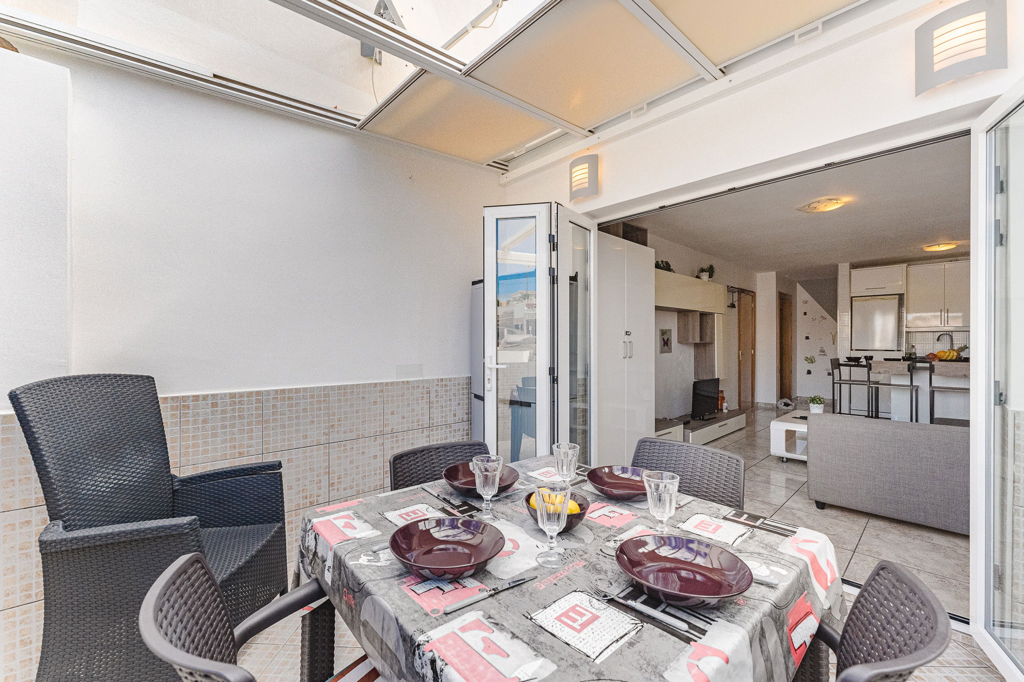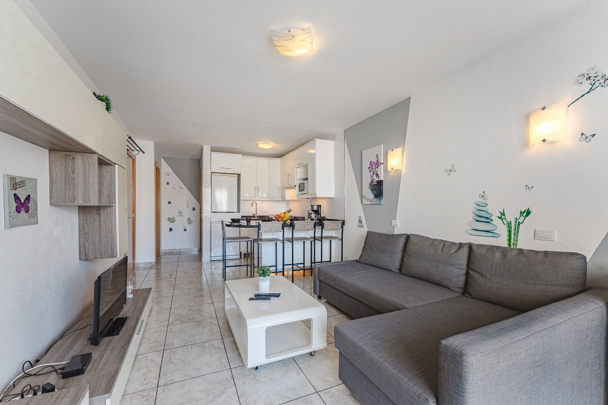 Diese Ferienwohnung verfügt über ein Wohnzimmer mit einer Schlafcouch und einer voll ausgestatteten Küche mit Geschirrspüler, ein Badezimmer und ein Schlafzimmer mit einem Doppelbett, sowie einen Wintergarten, den man mit zur Terrasse umfunktionieren kann und mit seitlichen Meerblick. Eine Waschmaschine ist natürlich auch vorhanden. Bettwäsche und Handtücher werden bereit gestellt. Der neu gebaute und beheizte Pool lädt zum Sonnenbaden und zum Erfrischen ein. Die schönsten Strände Teneriffas sind füssläufig in ca. 15 Minuten und nur ca. 3 Minuten mit dem Auto erreichbar.