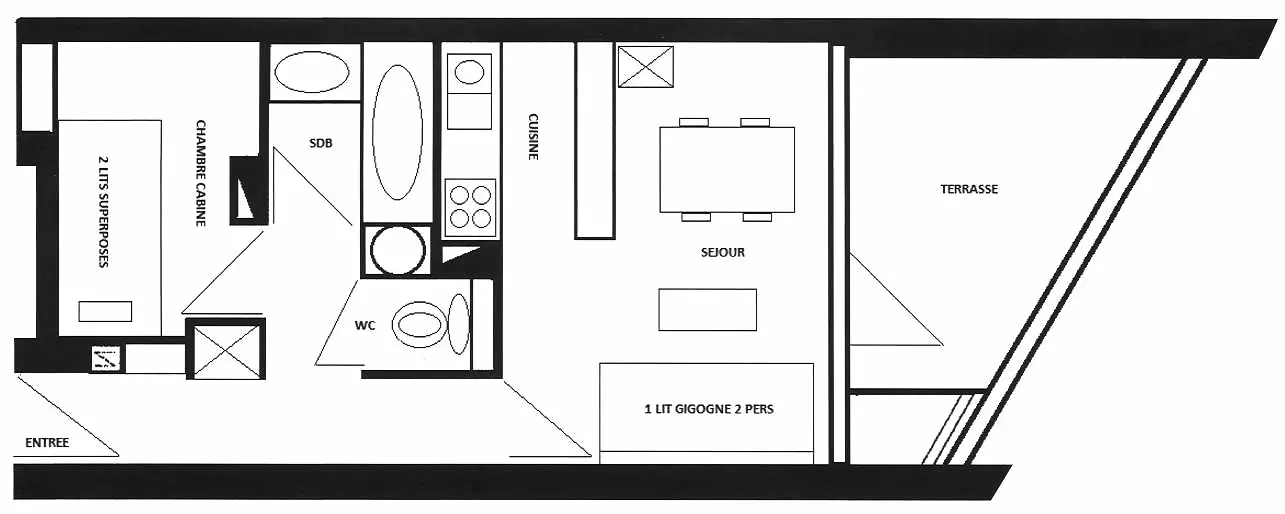 4-stöckige Residenz mit Aufzug, 7 Gehminuten von den Geschäften entfernt, Ski-in-Ski-out-Residenz. Skischrank auf Ebene 1. Überdachter Parkplatz in der Residenz.