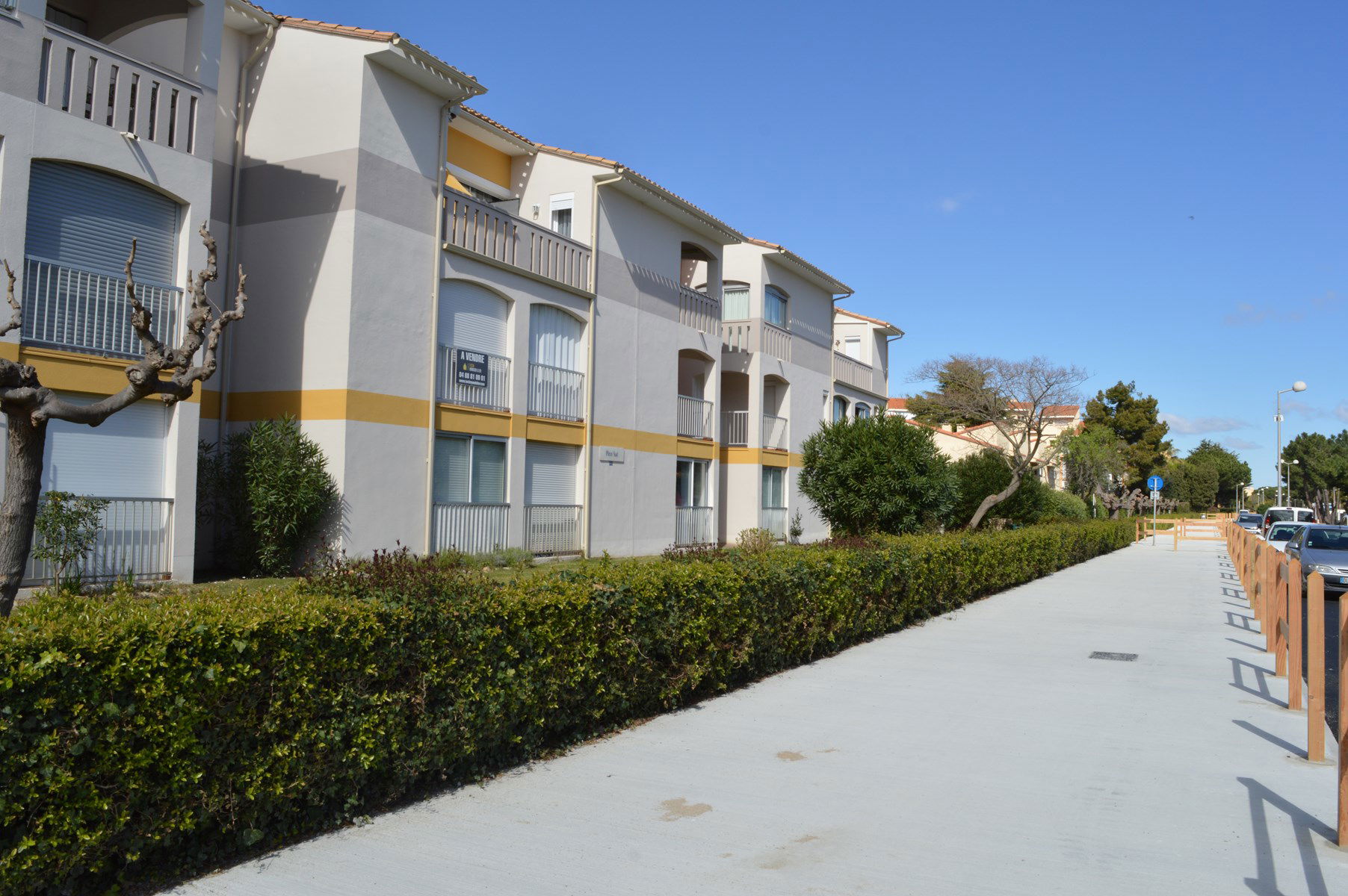 400 m vom Strand entfernt, in einem Wohngebiet, verfügt die sichere Residenz „Plein Sud“ über 5 3-stöckige Gebäude mit Privatparkplatz in einer einladenden Umgebung.