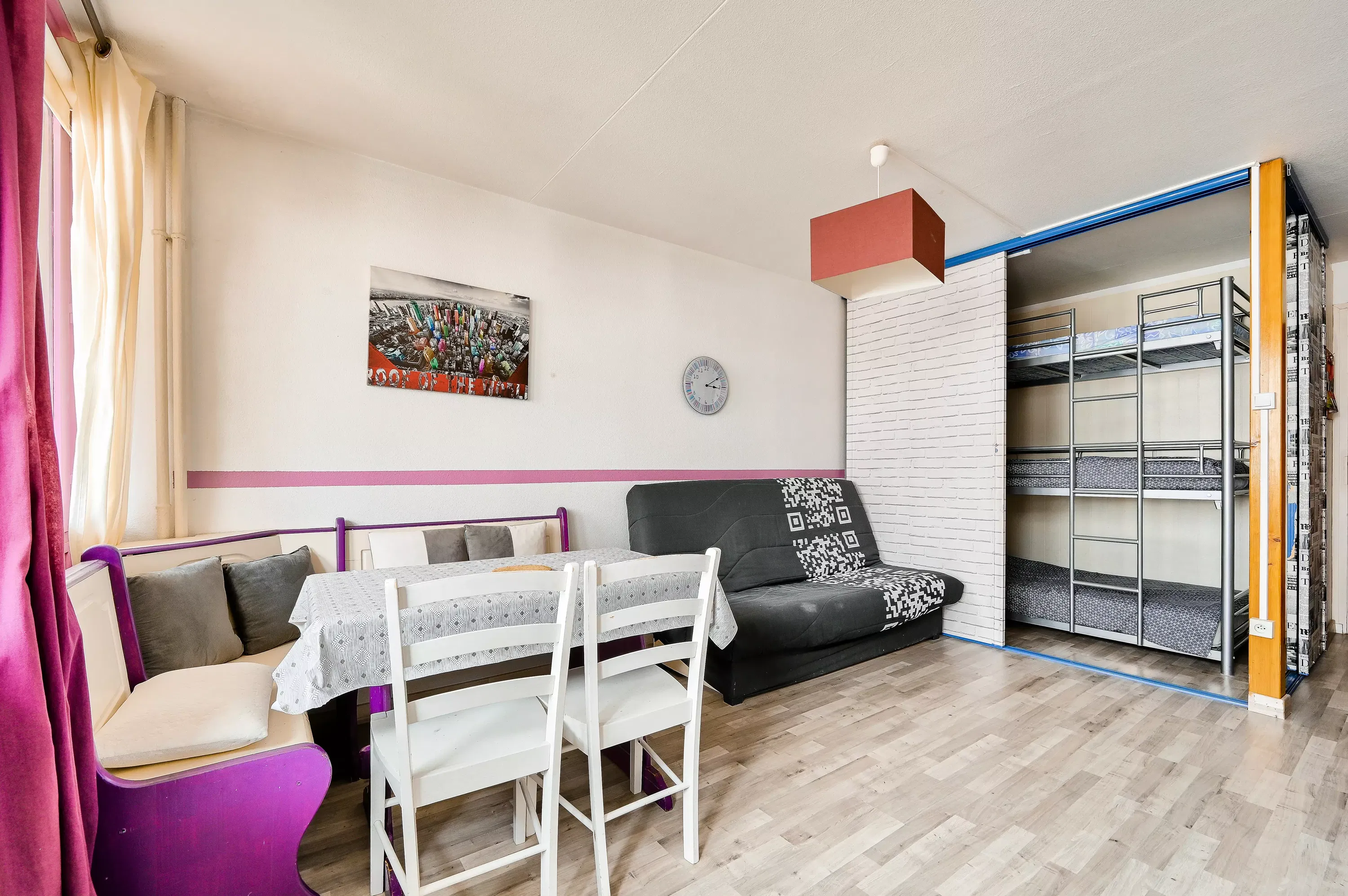Ihre Ferienunterkunft umfasst: 1 Wohnzimmer, 1 Kabinenbereich, 1 Küche, 1 Badezimmer und Balkon (kein Parkplatz).