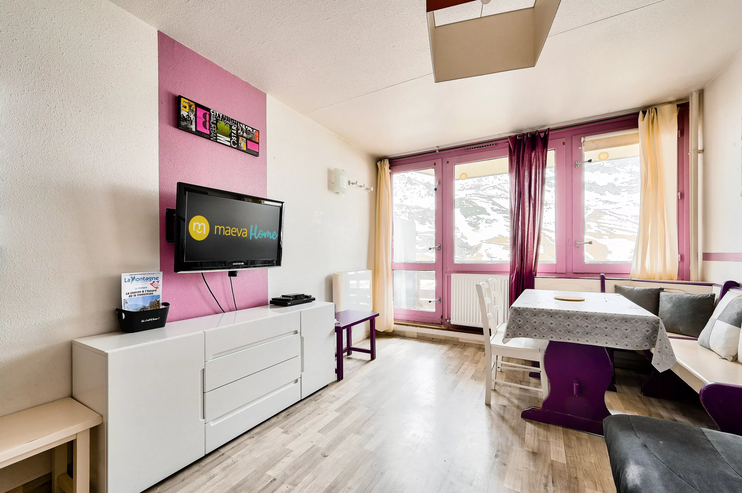 Die Vorteile Ihrer Miete: Ski-in/Ski-out-Studio mit Balkon und Blick auf die Piste.