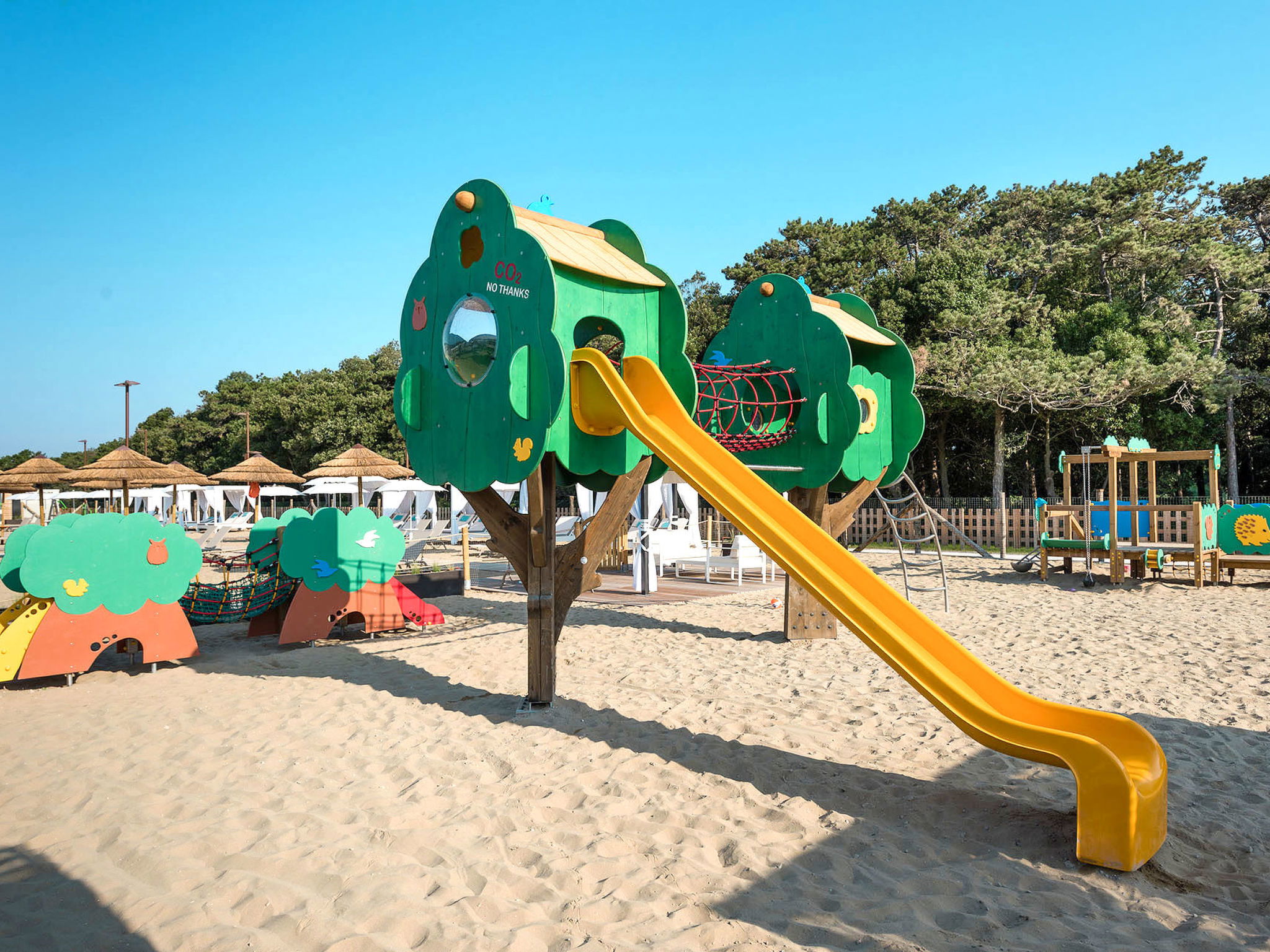 Grosse, kinderfreundliche, moderne Ferienanlage "Lino delle Fate Eco Village". 290 Wohnungen in der Residenz. Im Ortsteil Bibione-Lido dei Pini, 1.8 km vom Zentrum von Bibione, 13 km vom Zentrum von Lignano, 100 km vom Zentrum von Venezia, 450 m vom Meer, 450 m vom Strand. Zur Mitbenutzung: Grundstück 25 ha, Park, gepflegter Garten mit Rasen und Pflanzen, Biotop, Schwimmbad (1'000 m2, saisonale Verfügbarkeit: 28.Mar. - 02.Nov.). Kinderbecken, Aussendusche, Privatstrand, Sprudelbad, Kinderspielplatz. In der Anlage: Restaurant, Bar, Waschmaschine, Wäschetrockner (zur Mitbenutzung, extra), Fahrradverleih. Wäschewechsel 1 mal wöchentlich. Handtuchwechsel 2 mal wöchentlich. Wohnungsreinigung 1 mal wöchentlich. Frühstück und Halbpension möglich (extra). Gemeinschaftsgarage. Zentralparkplätze. E-Ladestation. Einkaufsgeschäft, Lebensmittelgeschäft 300 m, Bushaltestelle 900 m, Bahnstation "Latisana (Venezia-Trieste)" 21 km, Sandstrand 700 m, Thermalbad "Bibione Thermae" 3.5 km. Golfplatz (18 Loch) 8 km. Nahe gelegene Sehenswürdigkeiten: Oasi Naturalistica Val Grande 3.5 km, Golf Club Lignano, 20 % reduction on, green fee. Bitte beachten: autofreie Ferienanlage. Animation in der Saison. Geeignet für Familien. Von ca. 12.04-02.11. sind jeweils 2 Sonnenliegen und 1 Sonnenschirm pro Wohnung im Mietpreis enthalten.