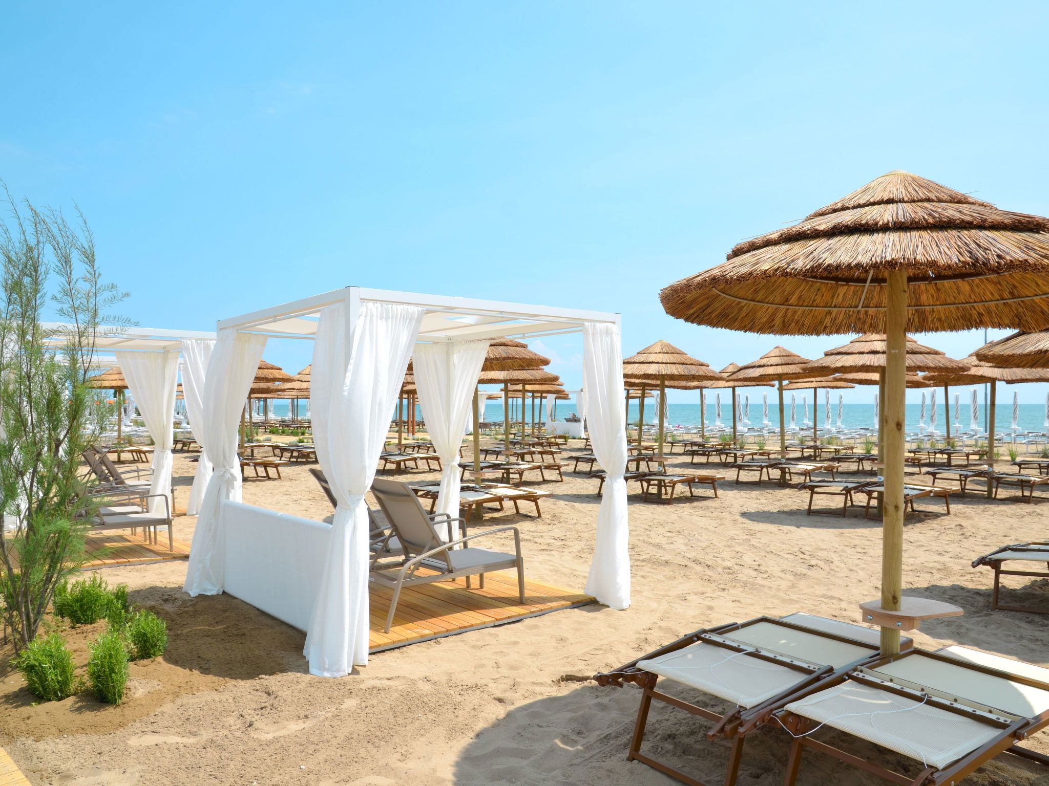 Grosse, kinderfreundliche, moderne Ferienanlage "Lino delle Fate Eco Village". 290 Wohnungen in der Residenz. Im Ortsteil Bibione-Lido dei Pini, 1.8 km vom Zentrum von Bibione, 13 km vom Zentrum von Lignano, 100 km vom Zentrum von Venezia, 450 m vom Meer, 450 m vom Strand. Zur Mitbenutzung: Grundstück 25 ha, Park, gepflegter Garten mit Rasen und Pflanzen, Biotop, Schwimmbad (1'000 m2, saisonale Verfügbarkeit: 28.Mar. - 02.Nov.). Kinderbecken, Aussendusche, Privatstrand, Sprudelbad, Kinderspielplatz. In der Anlage: Restaurant, Bar, Waschmaschine, Wäschetrockner (zur Mitbenutzung, extra), Fahrradverleih. Wäschewechsel 1 mal wöchentlich. Handtuchwechsel 2 mal wöchentlich. Wohnungsreinigung 1 mal wöchentlich. Frühstück und Halbpension möglich (extra). Gemeinschaftsgarage. Zentralparkplätze. E-Ladestation. Einkaufsgeschäft, Lebensmittelgeschäft 300 m, Bushaltestelle 900 m, Bahnstation "Latisana (Venezia-Trieste)" 21 km, Sandstrand 700 m, Thermalbad "Bibione Thermae" 3.5 km. Golfplatz (18 Loch) 8 km. Nahe gelegene Sehenswürdigkeiten: Oasi Naturalistica Val Grande 3.5 km, Golf Club Lignano, 20 % reduction on, green fee. Bitte beachten: autofreie Ferienanlage. Animation in der Saison. Geeignet für Familien. Von ca. 12.04-02.11. sind jeweils 2 Sonnenliegen und 1 Sonnenschirm pro Wohnung im Mietpreis enthalten.