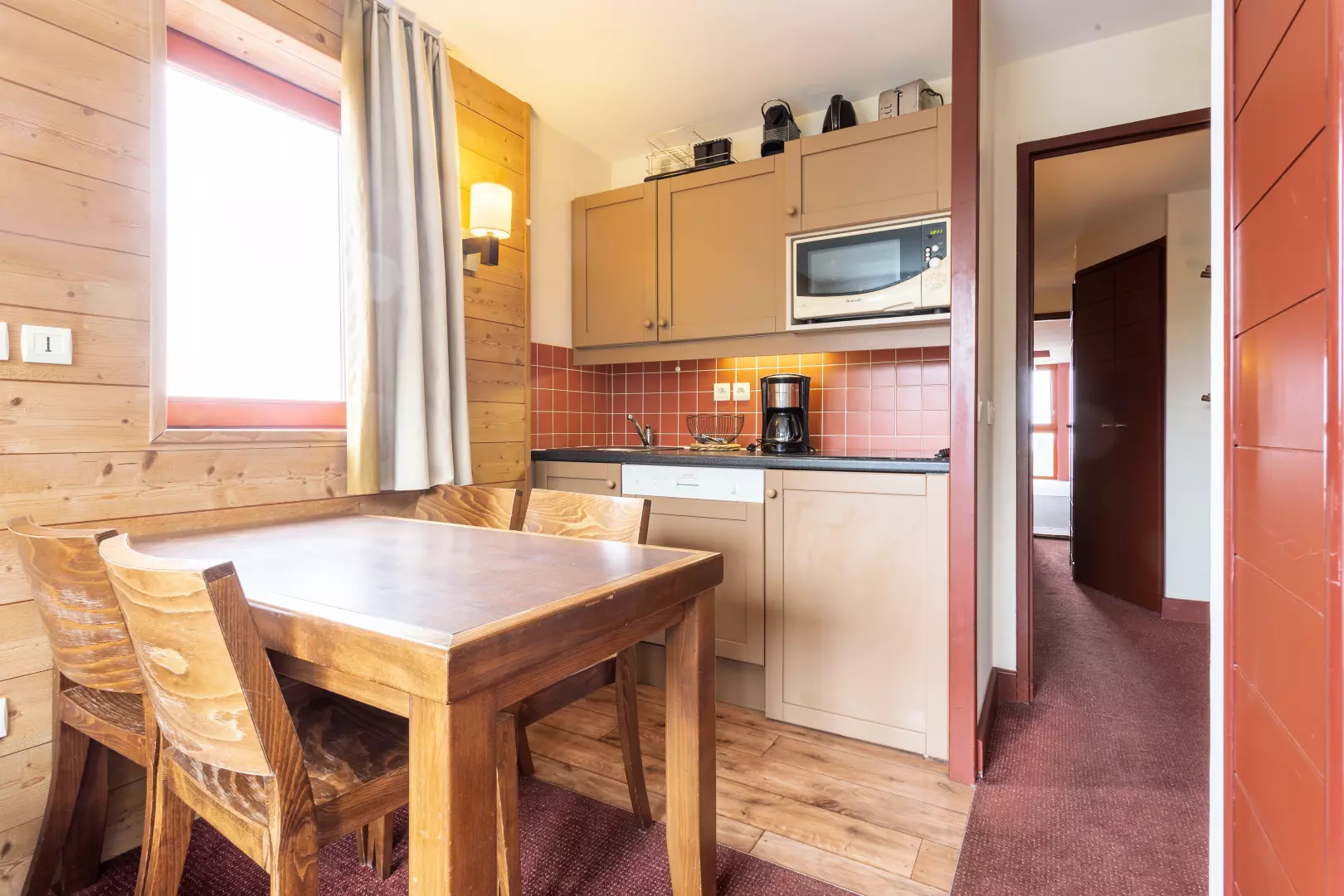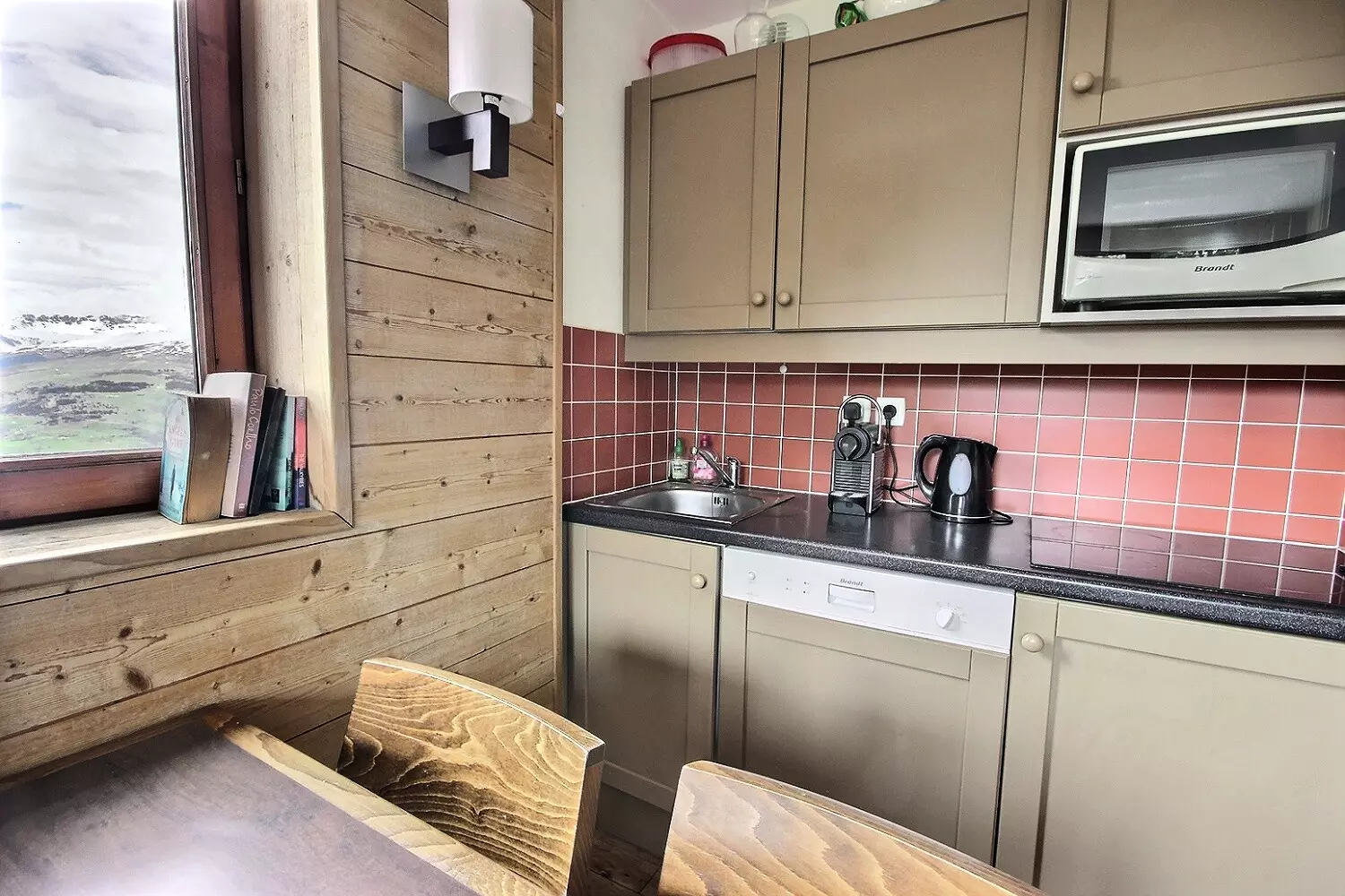 Die Vorteile Ihrer Miete: Studio für 4 Personen in idealer Lage, in der Nähe der Pisten, Geschäfte und Aktivitäten, mit Südbalkon mit Bergblick.