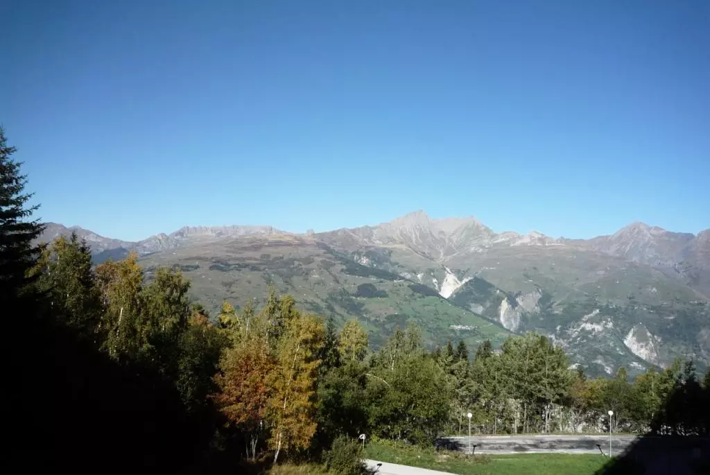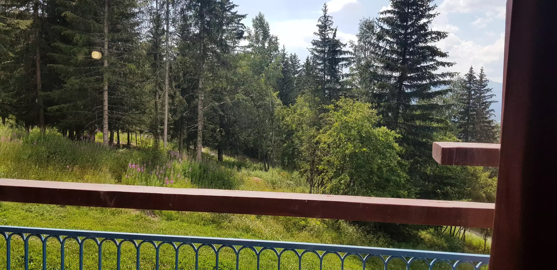 Buchen Sie für Ihren Skiurlaub oder Sommerurlaub in Les Arcs 1800 dieses Studio mit Südwestbalkon und Blick auf die Berge und den Wald.