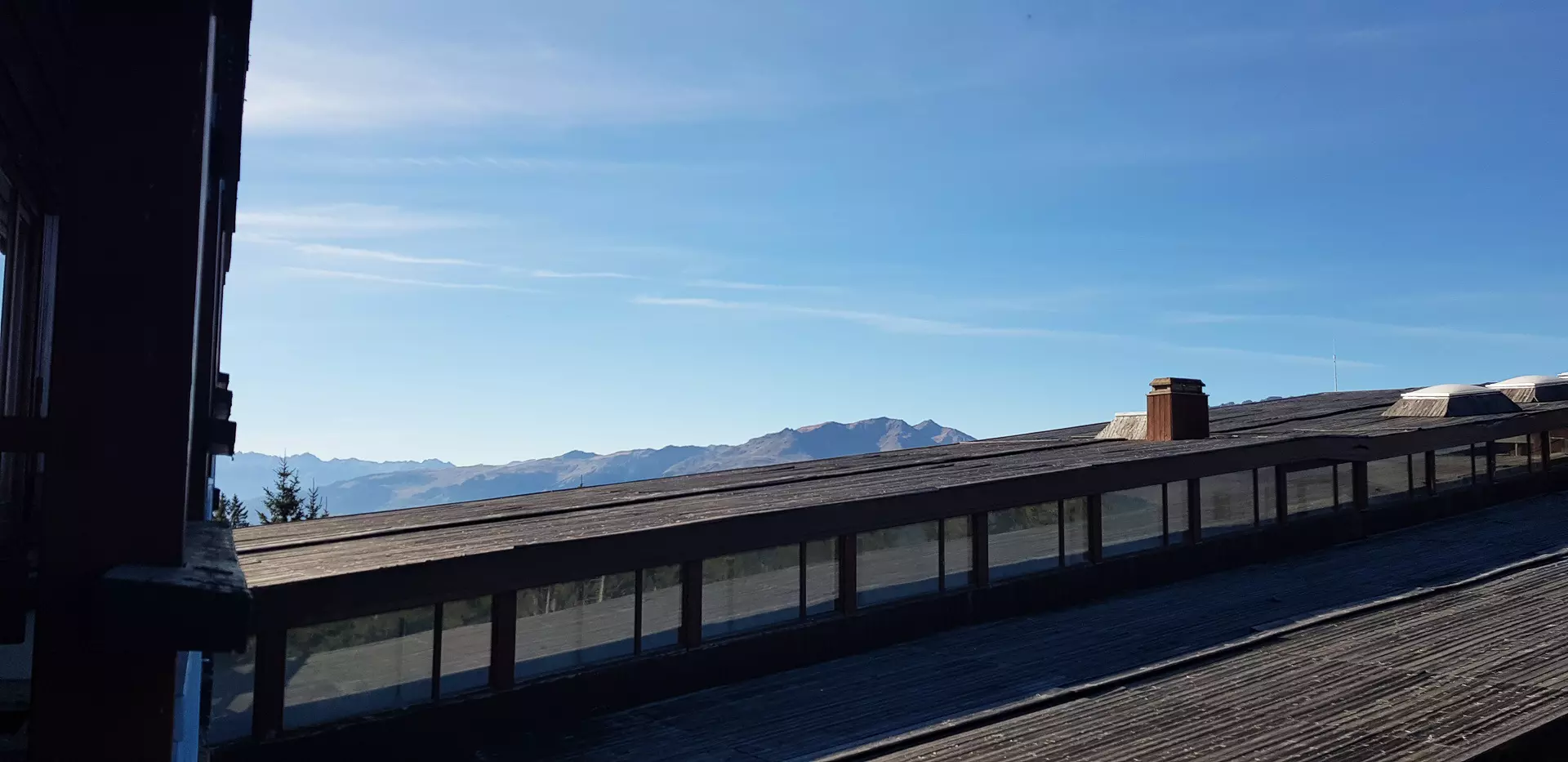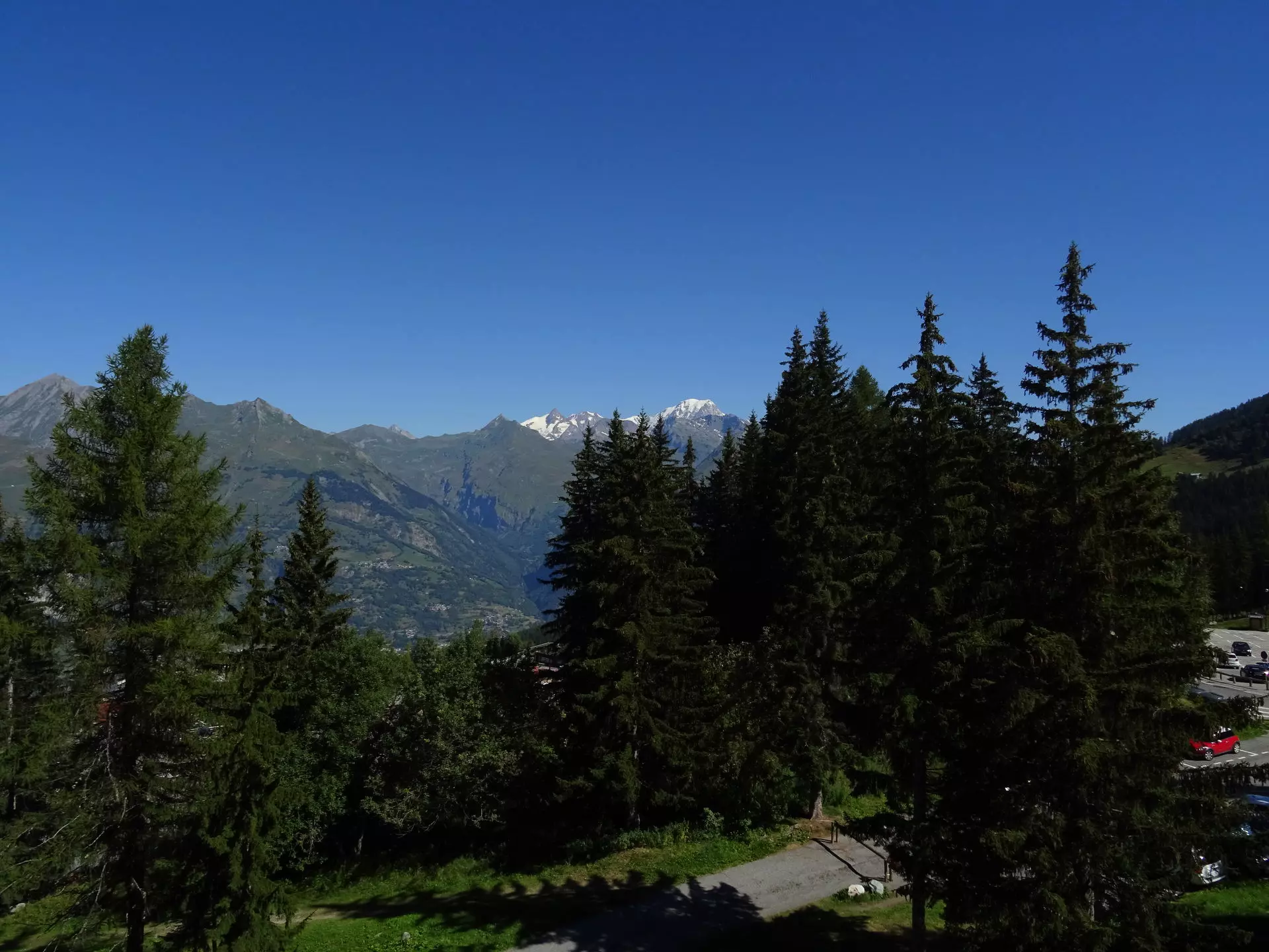Buchen Sie für Ihren Skiurlaub oder Sommerurlaub in Les Arcs 1800 dieses Studio mit einem nach Nordosten ausgerichteten Balkon mit Blick auf das Tal und den Mont Blanc.