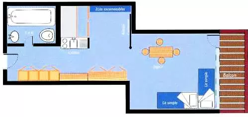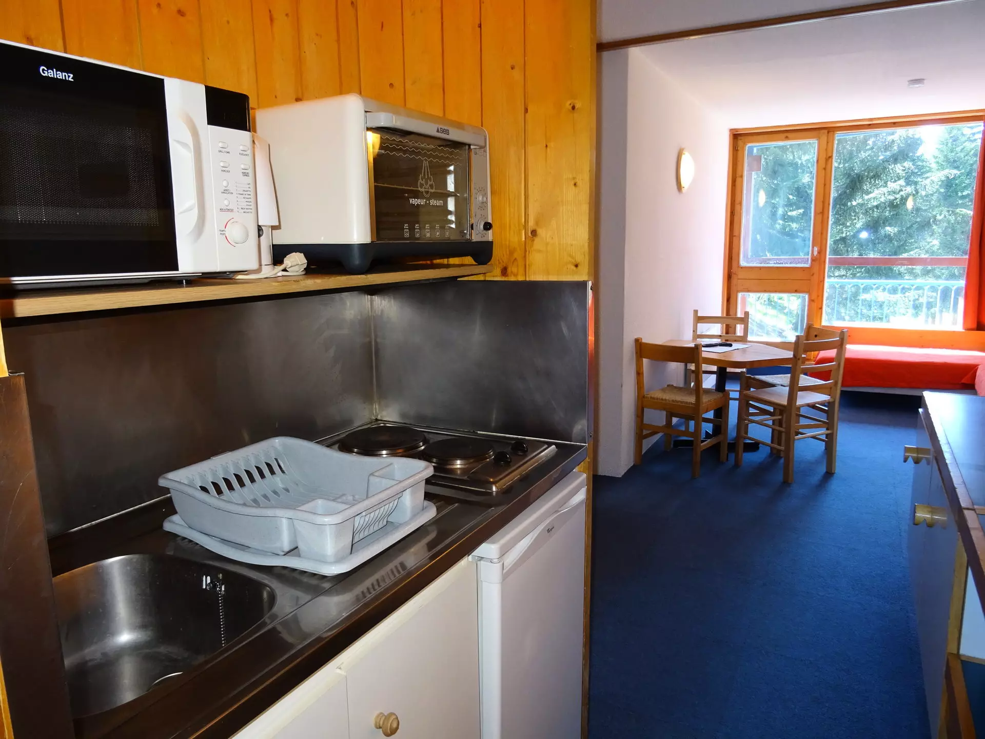 Dieses 25 m² große Studio bietet Platz für bis zu 4 Personen und befindet sich im 6. Stock (mit Aufzug) der Residenz Belles-Challes, von außen gesehen im 2. Stock.