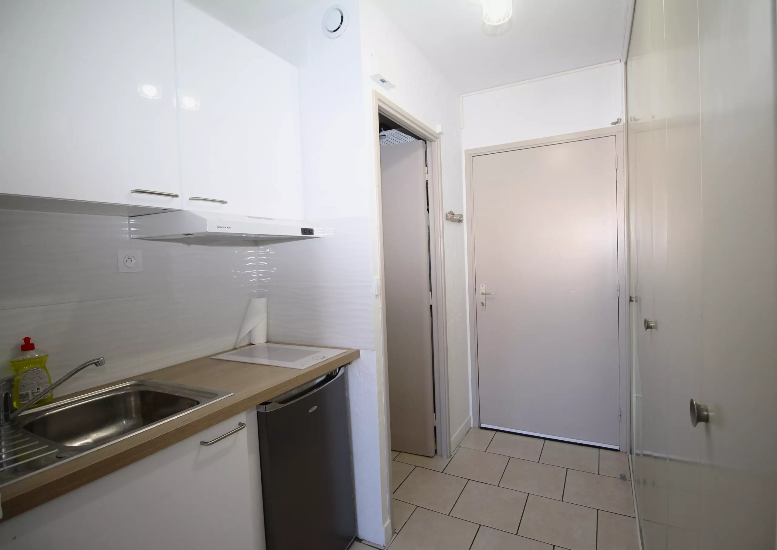 Diese Unterkunft besteht aus einer Eingangshalle, die zu einem Badezimmer mit WC führt, einer Küchenzeile und einem Wohnzimmer mit Schlafbereich und Zugang zum Balkon.
