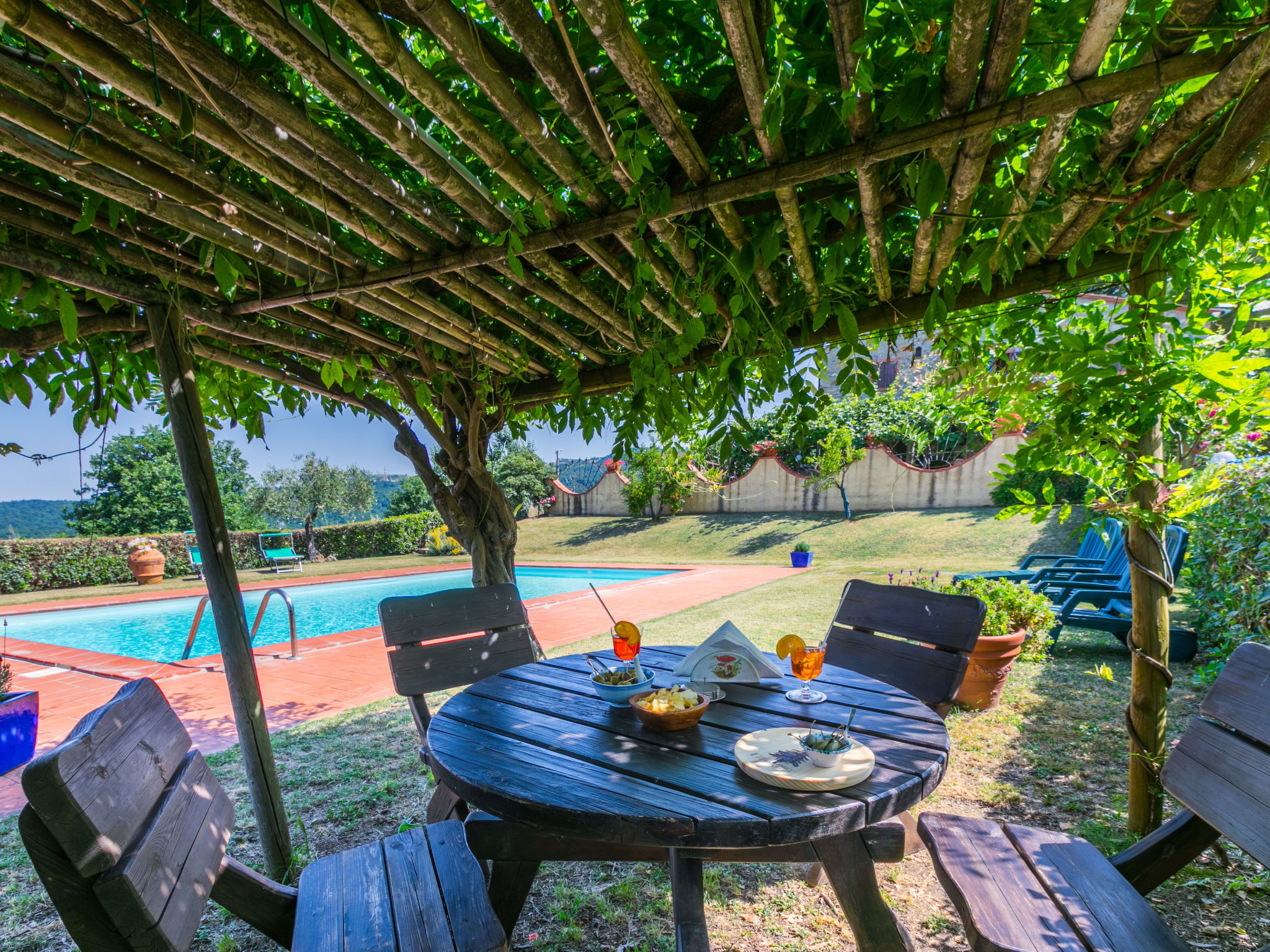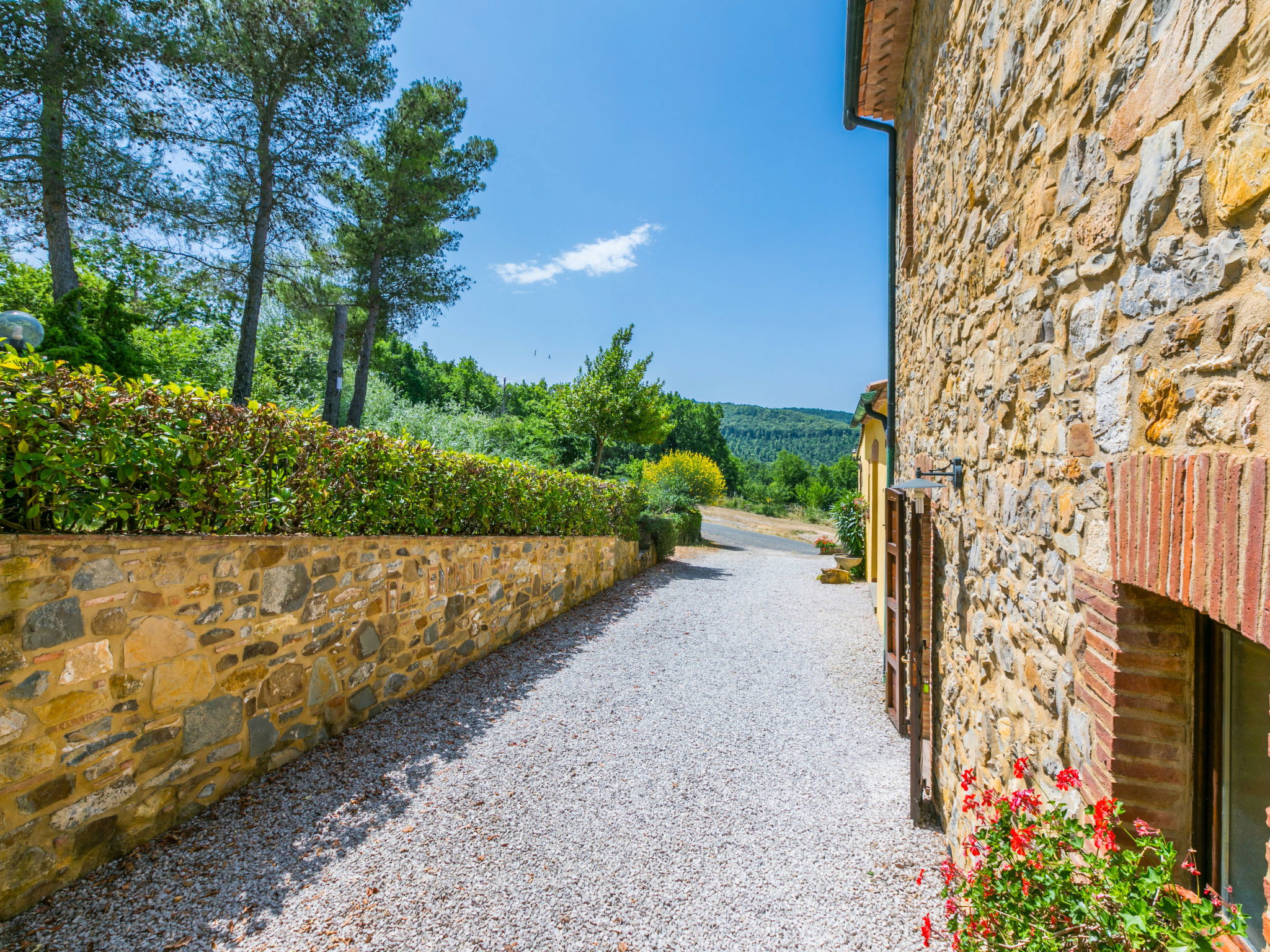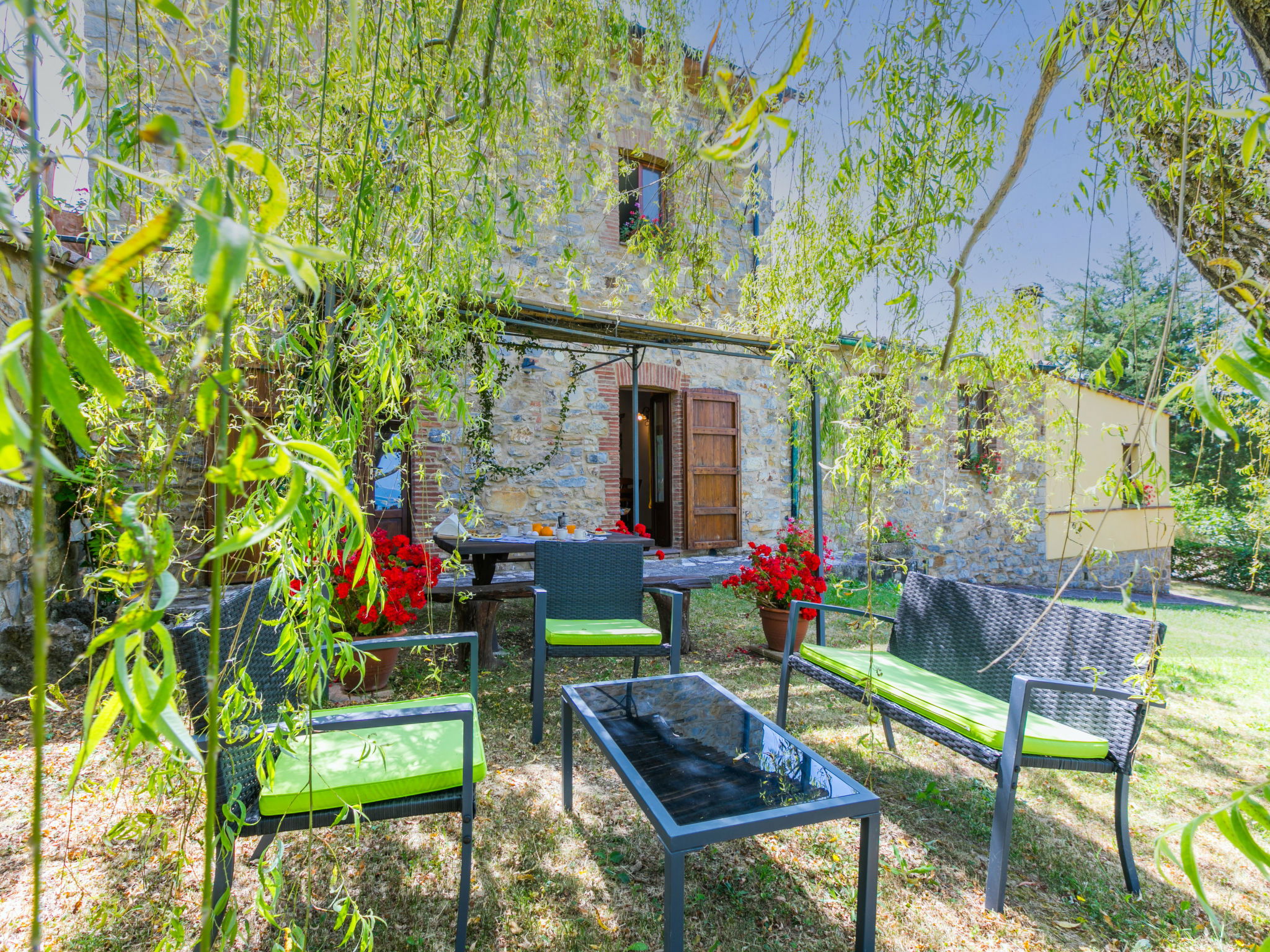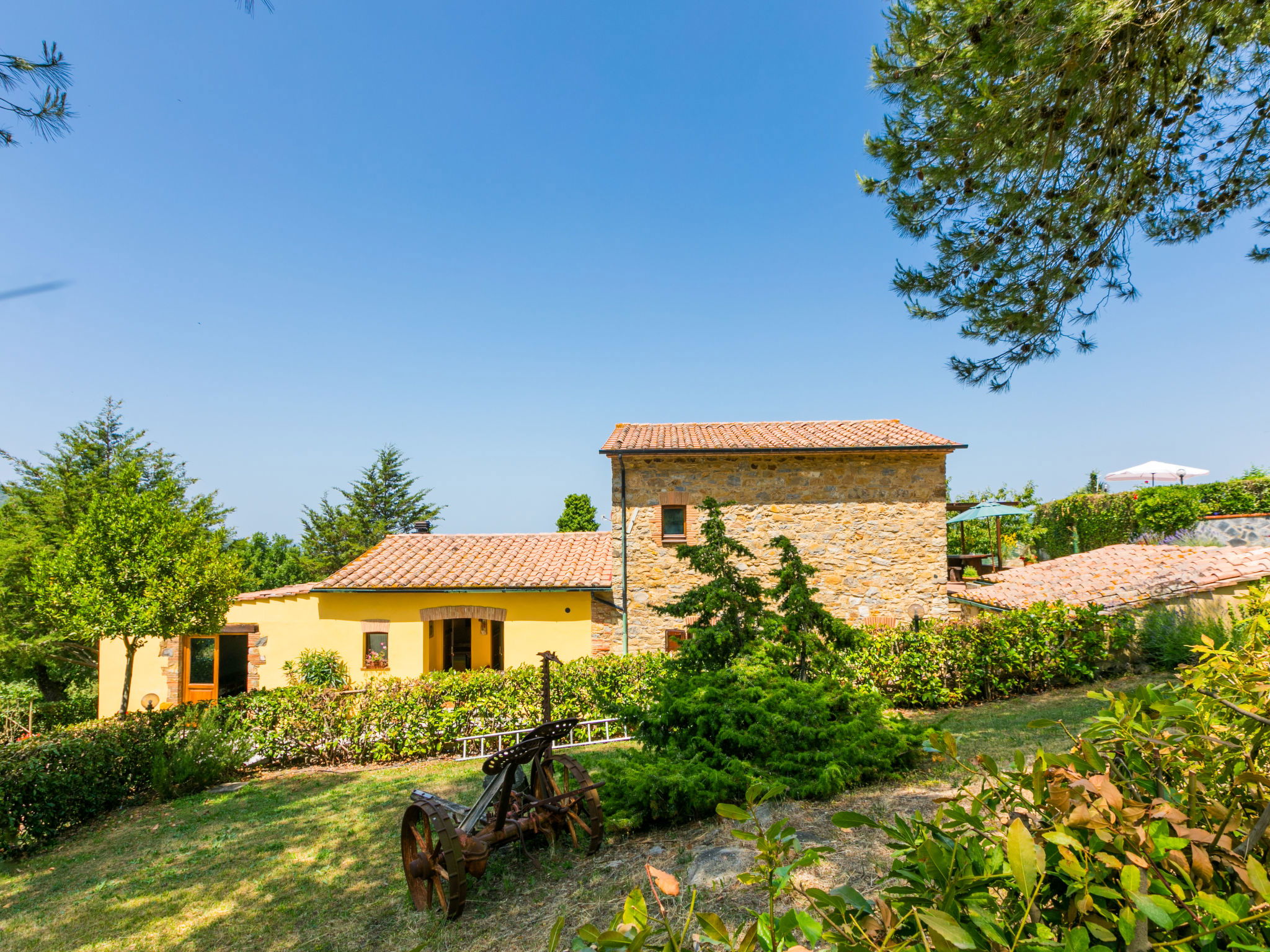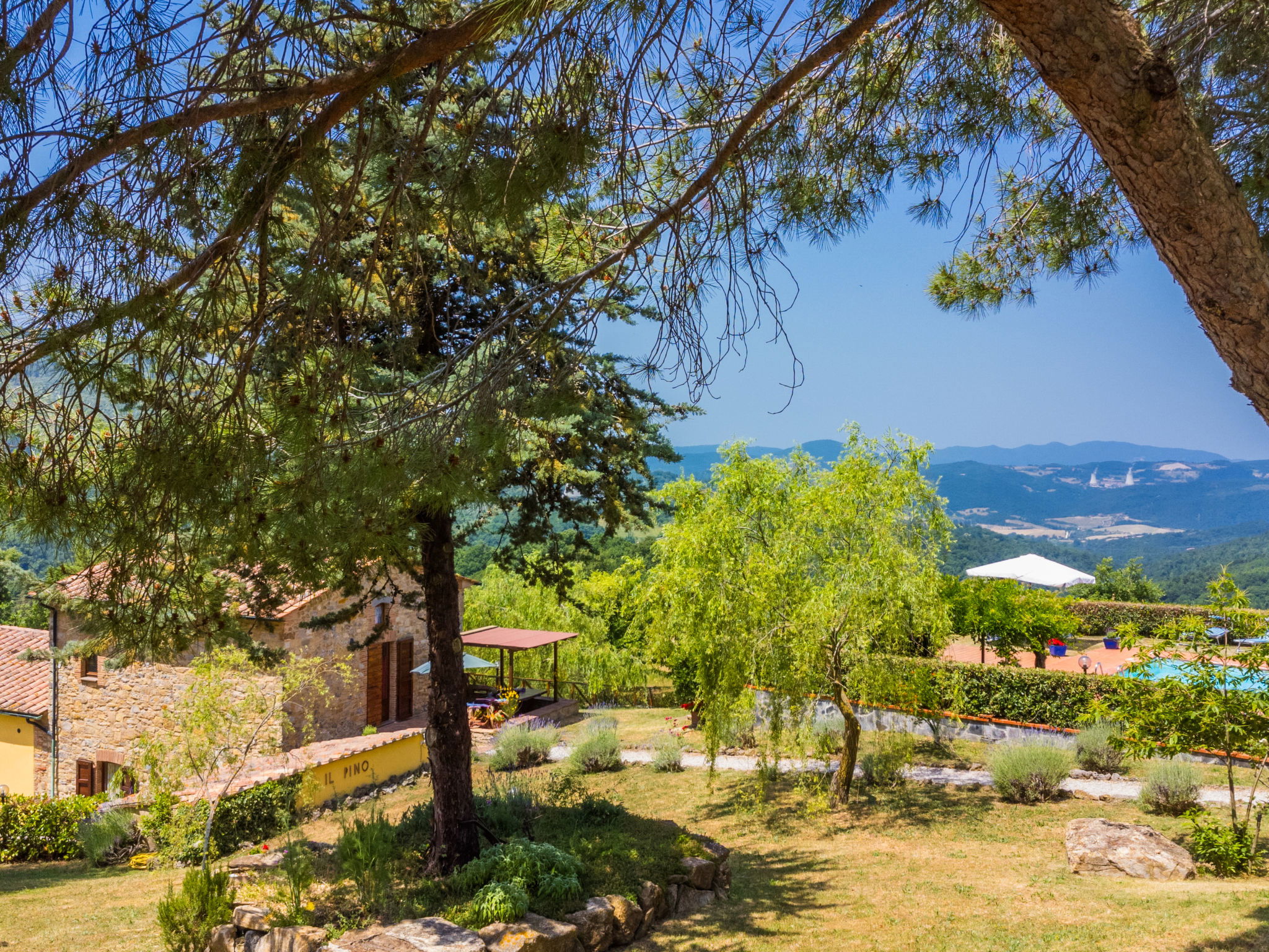 Landhaus "Pino di Sopra". Mietobjekt bestehend aus Haupt- und Nebengebäude, 8.7 km vom Zentrum von Castelnuovo Val di Cecina, 4.5 km vom Zentrum von Sasso Pisano, 21 km vom Zentrum von Massa Marittima, alleinstehende Lage am Hang, 45 km vom Meer, 4.5 km vom See, im Grünen. Zur Mitbenutzung: Grundstück, terrassierter Garten mit Pflanzen und Blumen, Schwimmbad eingezäunt (10 x 5 m, saisonale Verfügbarkeit: 07.Jun. - 30.Sep.). Aussendusche, Laube, Gartenmöbel, Grill. Im Hause: Wireless LAN, Waschmaschine (zur Mitbenutzung). 200 m lange Zufahrt (Naturweg). Parkplatz (für 5 Autos) auf dem Grundstück. Einkaufsgeschäft 4.5 km, Supermarkt 8.7 km, Bushaltestelle 2 km, Hallenbad 14 km, Naturbadeteich 4.5 km. Nahe gelegene Sehenswürdigkeiten: Volterra 45 km, Siena 70 km, Firenze 100 km. Ab Hof Verkauf von bäuerlichen Produkten.