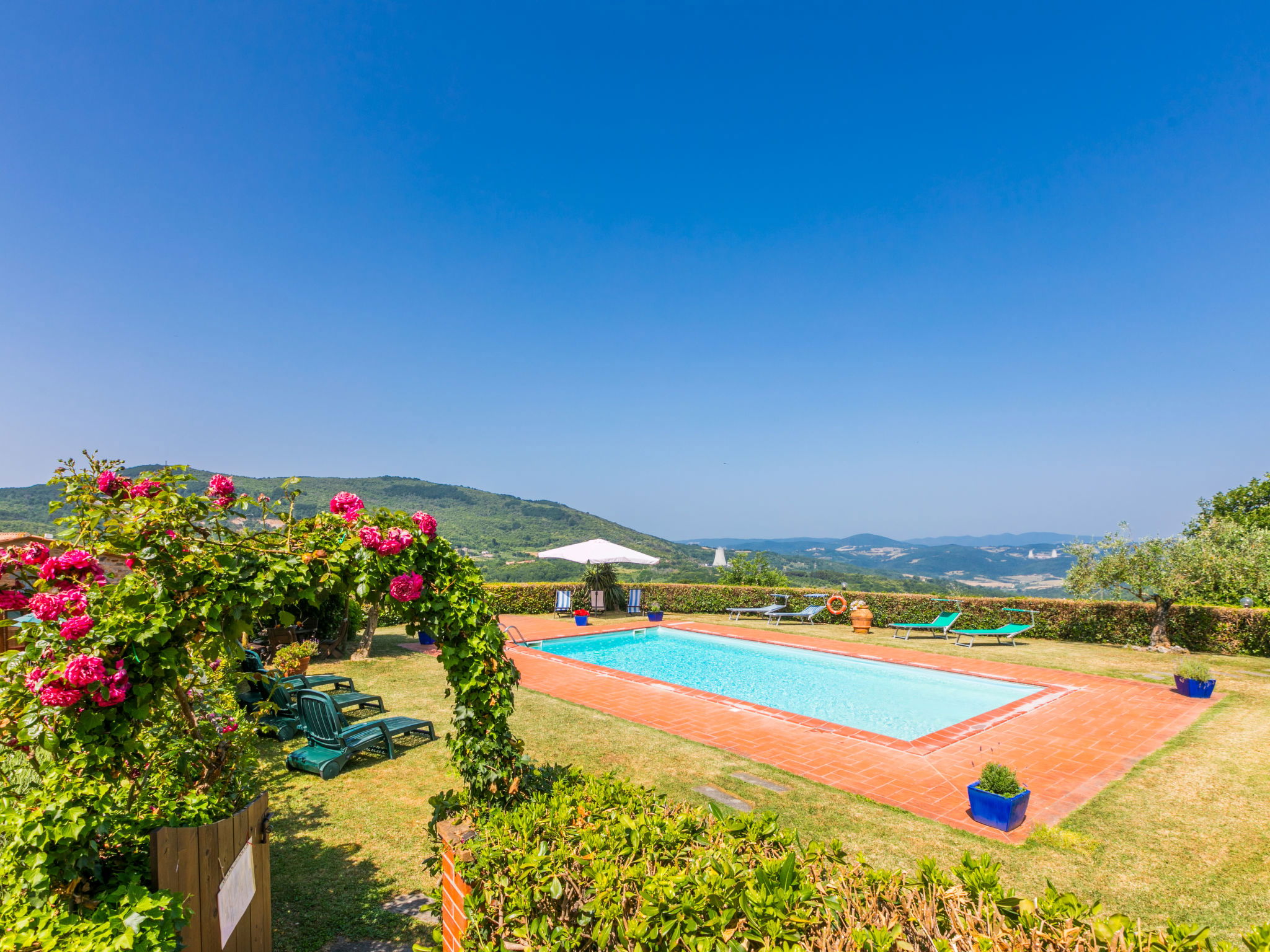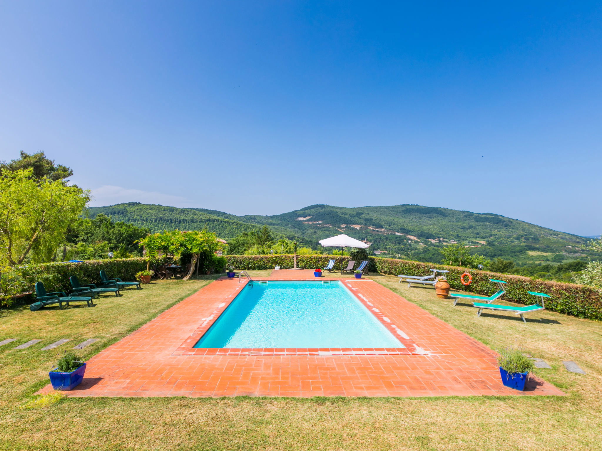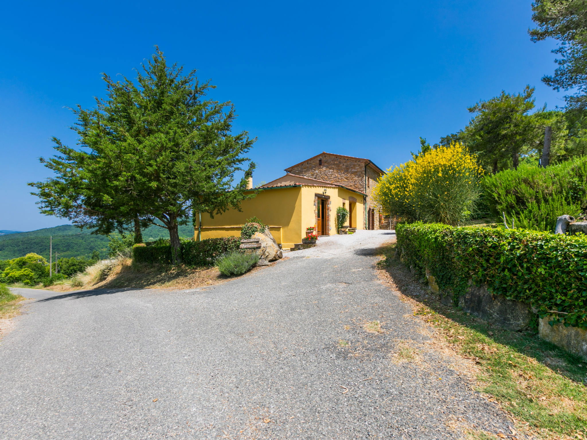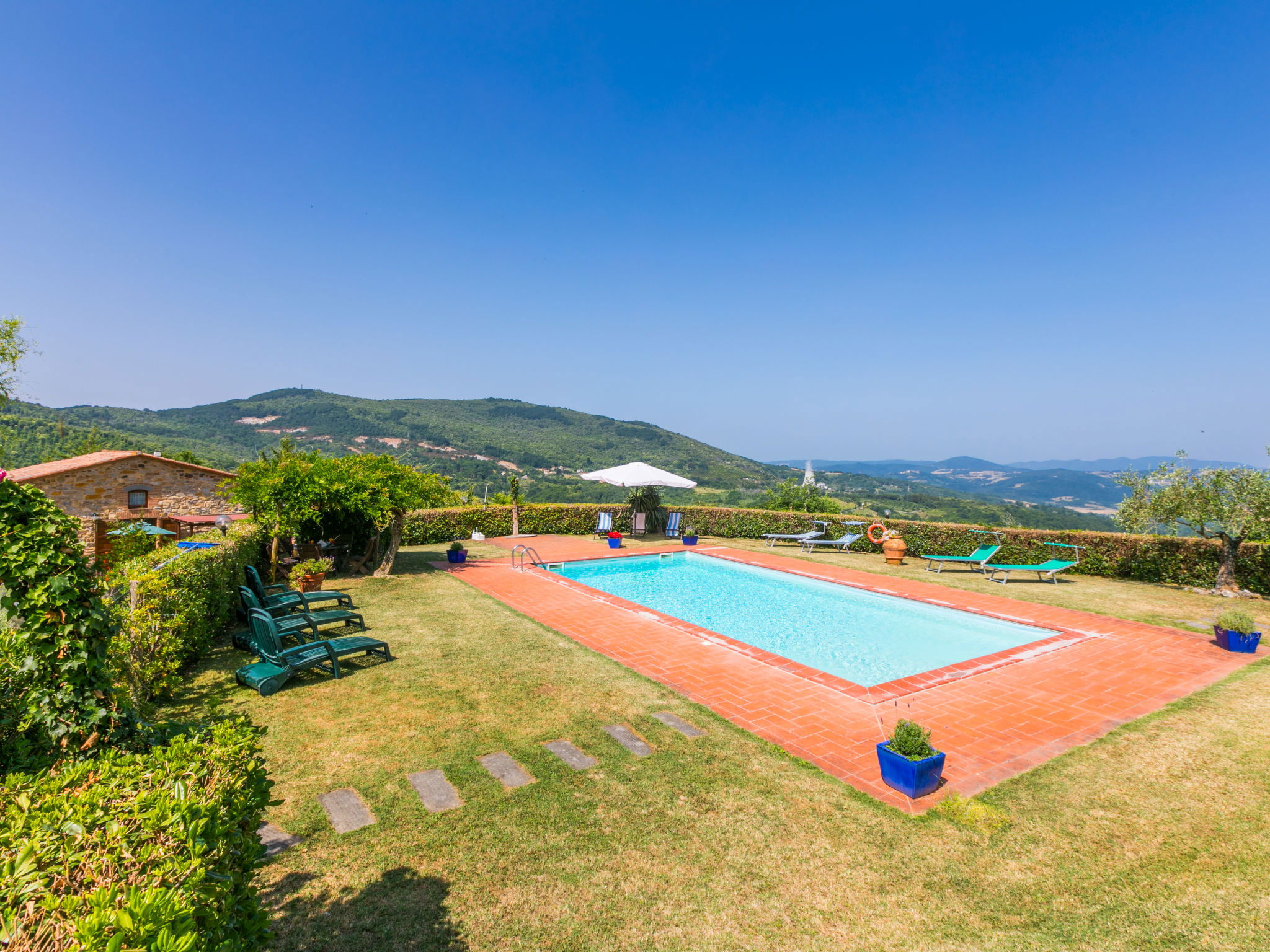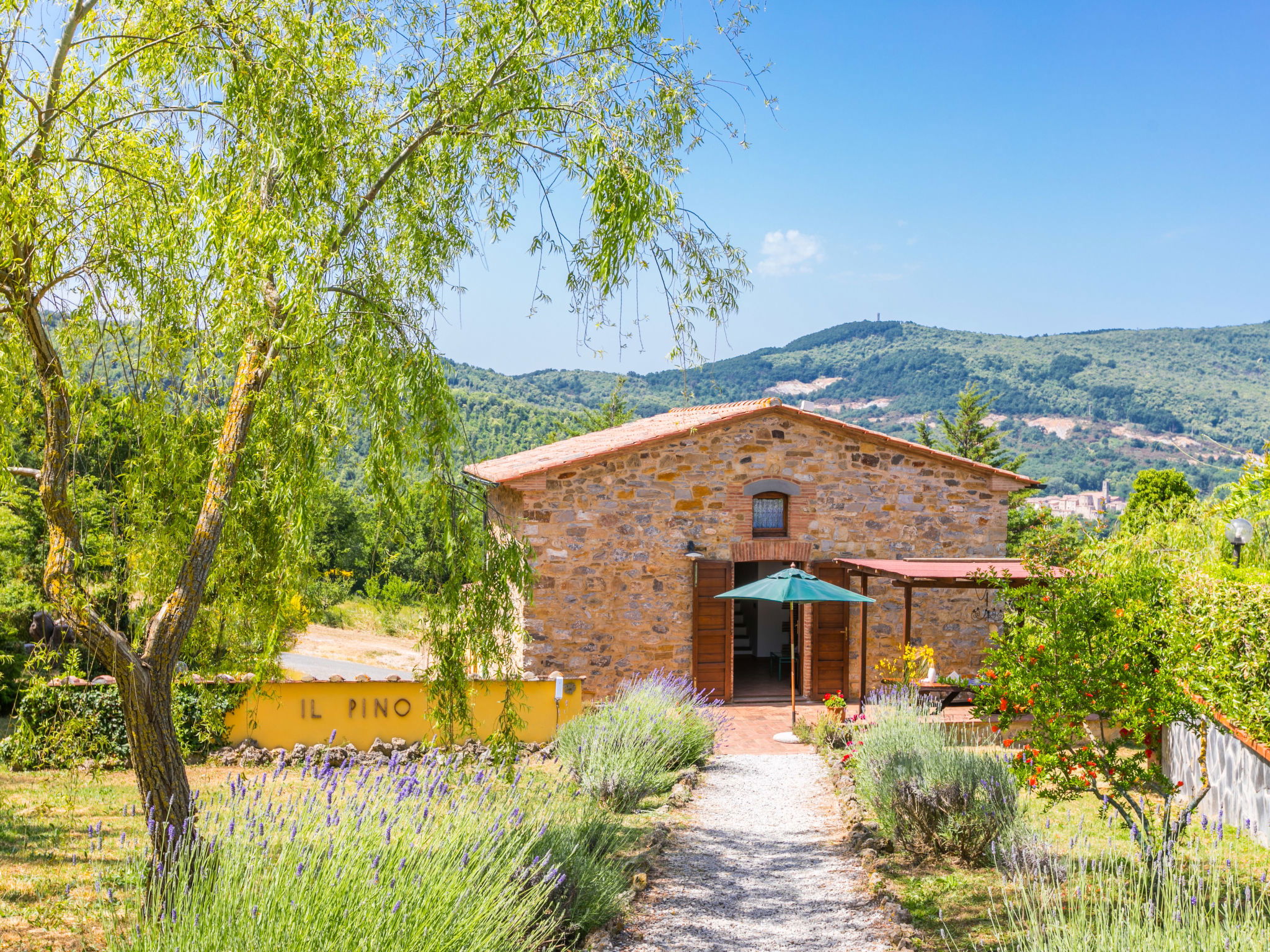 Landhaus "Pino di Sopra". Mietobjekt bestehend aus Haupt- und Nebengebäude, 8.7 km vom Zentrum von Castelnuovo Val di Cecina, 4.5 km vom Zentrum von Sasso Pisano, 21 km vom Zentrum von Massa Marittima, alleinstehende Lage am Hang, 45 km vom Meer, 4.5 km vom See, im Grünen. Zur Mitbenutzung: Grundstück, terrassierter Garten mit Pflanzen und Blumen, Schwimmbad eingezäunt (10 x 5 m, saisonale Verfügbarkeit: 07.Jun. - 30.Sep.). Aussendusche, Laube, Gartenmöbel, Grill. Im Hause: Wireless LAN, Waschmaschine (zur Mitbenutzung). 200 m lange Zufahrt (Naturweg). Parkplatz (für 5 Autos) auf dem Grundstück. Einkaufsgeschäft 4.5 km, Supermarkt 8.7 km, Bushaltestelle 2 km, Hallenbad 14 km, Naturbadeteich 4.5 km. Nahe gelegene Sehenswürdigkeiten: Volterra 45 km, Siena 70 km, Firenze 100 km. Ab Hof Verkauf von bäuerlichen Produkten.