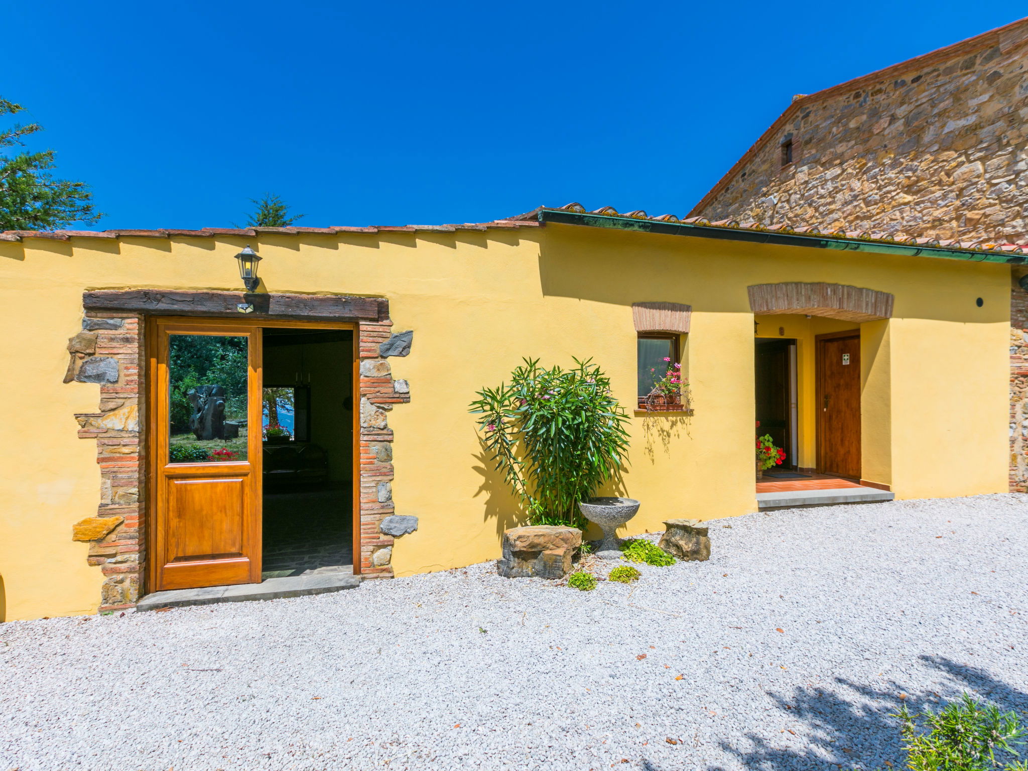 "Fienile", 1-Zimmer-Wohnung 50 m2 im 1. Stock. Geschmackvoll und gemütlich eingerichtet: Wohnzimmer mit Esstisch und Sat-TV. Ausgang Pergola. Abgeschrägte Galerie mit 2 Betten (80 cm), 1 Doppelbett (160 cm). Offene Küche (4 Kochplatten, Backofen, Geschirrspüler, Mikrowelle, Tiefkühler, elektrische Kaffeemaschine). Dusche/WC. Heizung, Klimaanlage. Gartensitzplatz. Abstellkammer. Schöne Panoramasicht. Zur Verfügung: Kinderhochstuhl, Babybett. Internet (WLAN, gratis). Bitte beachten: Maximal 2 Haustiere/Hunde erlaubt. Eigener Eingang, Feuerlöscher. IT050011B54OBDBD4V