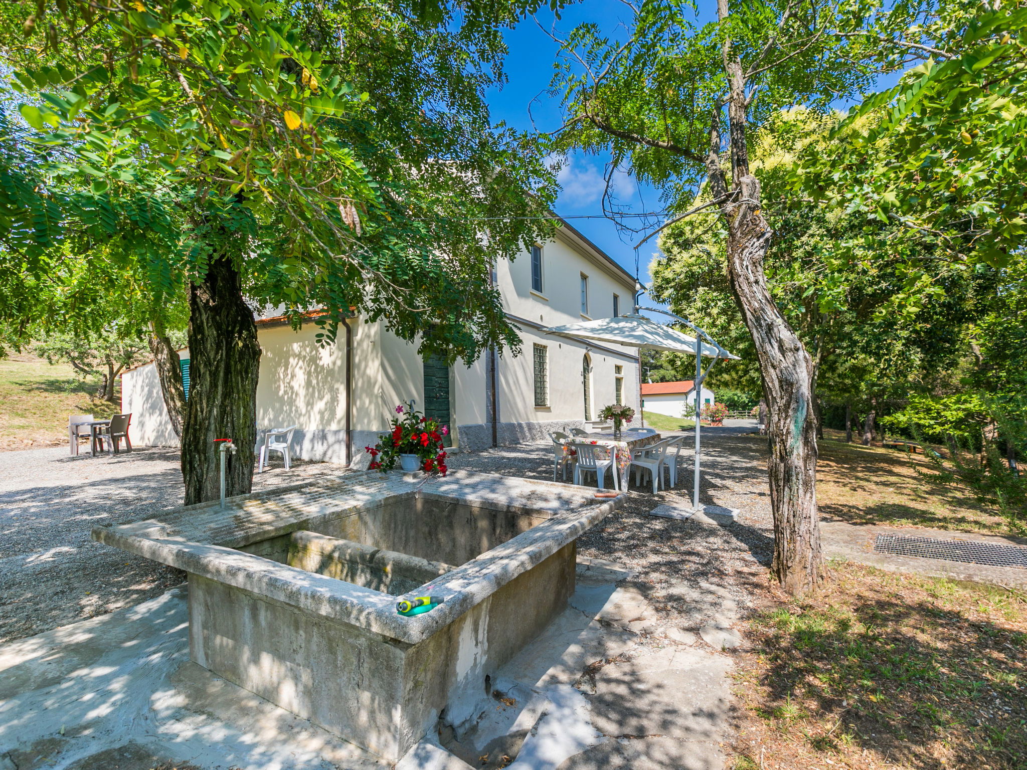 Podere La Madonnina: Das vollständig restaurierte Bauernhaus liegt 10 km vom Meer von Castiglioncello entfernt, in der grünen Hügellandschaft von Livorno, mitten im Wald. Das alleinstehende Haus besteht aus 2 Wohnungen im Erdgeschoss und eine im 1. Obergeschoss, nur von Aussen her miteinander verbunden. Die Wohnung im 1. Obergeschoss für max. 10 Pers. mieten (IT5330.875.1). Das Haus ist sehr ruhig und sonnig gelegen. Im grossen Privatgarten gibt es in Sonnenlage ein Schwimmbad, das ausschliesslich den Gästen vorbehalten ist. Ausstattung mit TV und Waschmaschine. Das Anwesen liegt 40 km von Pisa und 90 km von Florenz entfernt. Rund 100 m vom Haus IT5330.876.1. Landsitz "Podere La Madonnina". 10 km vom Meer. Zur Mitbenutzung: Garten, Schwimmbad (4 x 9 m, 155 - 155 cm tief, saisonale Verfügbarkeit: 18.Mai. - 28.Sep.). Tischtennis, Grill. Im Hause: Zentralheizung, Heizung vor Ort zu zahlen (15.Okt. - 15.Apr.). Haushaltshilfe täglich möglich (extra). Parkplatz auf dem Grundstück. Einkaufsgeschäft 3 km, Bushaltestelle 100 m, Bahnstation "Rosignano" 11 km, Sandstrand 10 km, Felsstrand 10 km. Tennis 5 km, Reitstall 5 km. Der Besitzer akzeptiert keine Jugendgruppen. Die Nachbarschaft ist sehr lärmempfindlich. Ruhe und gutes Benehmen wird erwartet.