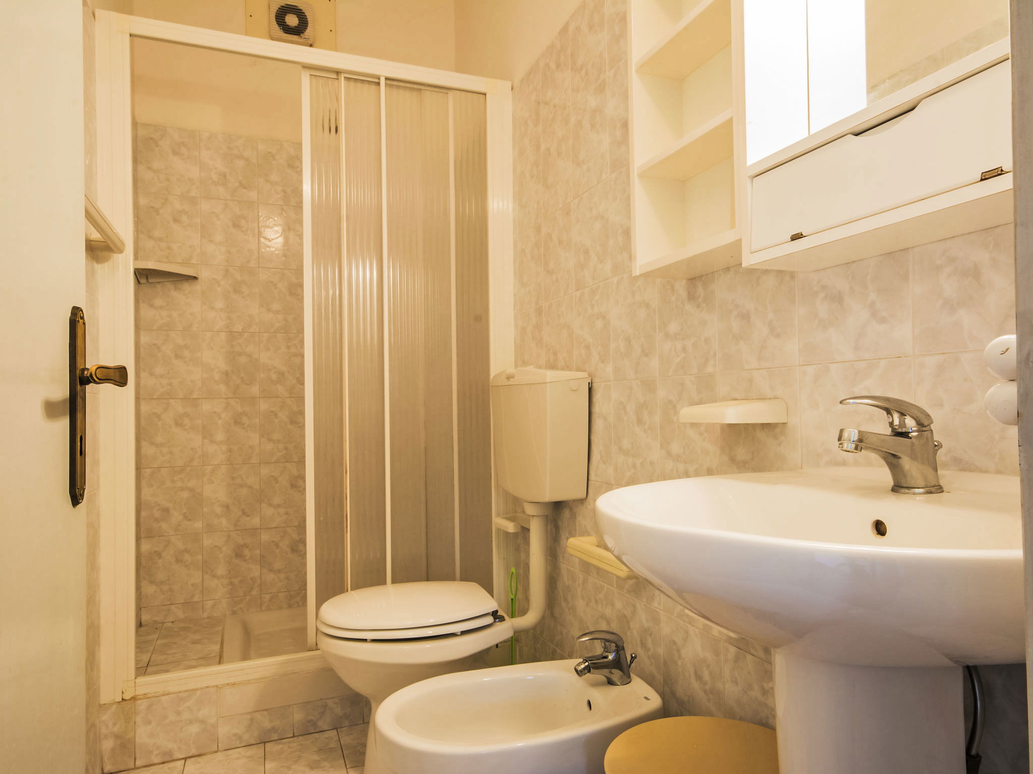 5-Zimmer-Wohnung 110 m2 im 1. Stock. Einfach eingerichtet: Wohn-/Esszimmer mit 2 Diwanbetten, offenem Kamin und Sat-TV. 1 Doppelzimmer mit 1 Doppelbett. 1 Zimmer mit 3 Betten. 1 Zimmer mit 1 x 2 Etagenbetten. 1 Doppelzimmer mit 1 Diwanbett. Kochnische (4 Kochplatten, Backofen, Geschirrspüler, Tiefkühler) mit Esstisch. 2 Duschen/Bidet/WC. Terrassenmöbel, Gartengrill. Zur Verfügung: Waschmaschine, Fliegengitter, Holz (extra). Parkplatz beim Haus. Bitte beachten: Maximal 1 Haustier/Hund erlaubt. Feuerlöscher. IT049017C2KDLFU9DL